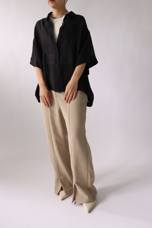 【ACUTA アクータ】ツイル袖シャーリングブラウス 袖がとても可愛くパンツに合わせるととてもいい感じです!