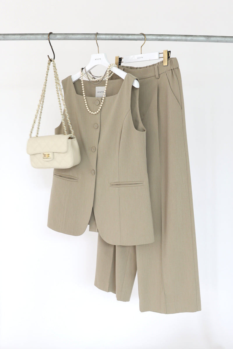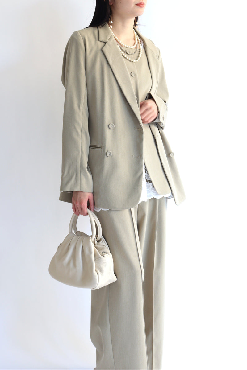 セットアップでも別々にも着ていただけるスリーピースでのコーディネート。