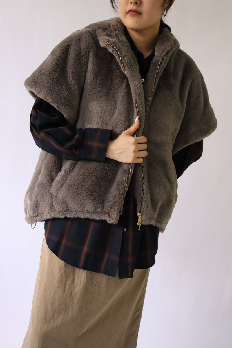 昨年好評を得たフェイクミンクの素材を使用し、コーデに取り入れやすフード付きのアイテムに仕上げました。