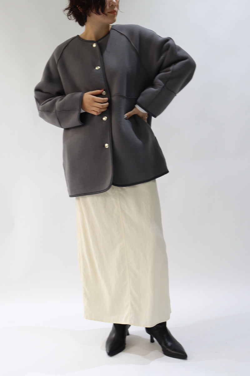 シンプルで合わせやすいデザインなので気軽に羽織れ、蓄熱中綿を内側に入れているので、ボリュームを抑えながら、より温かさ追求しました。