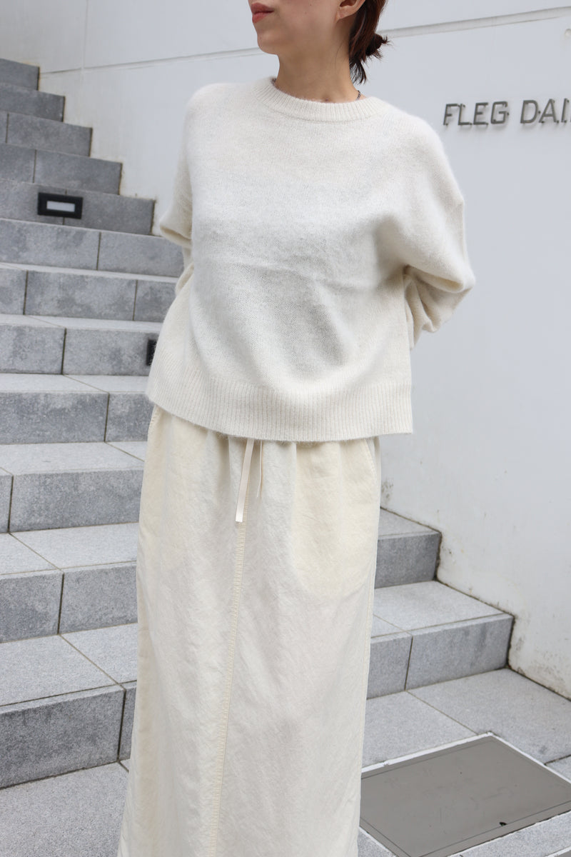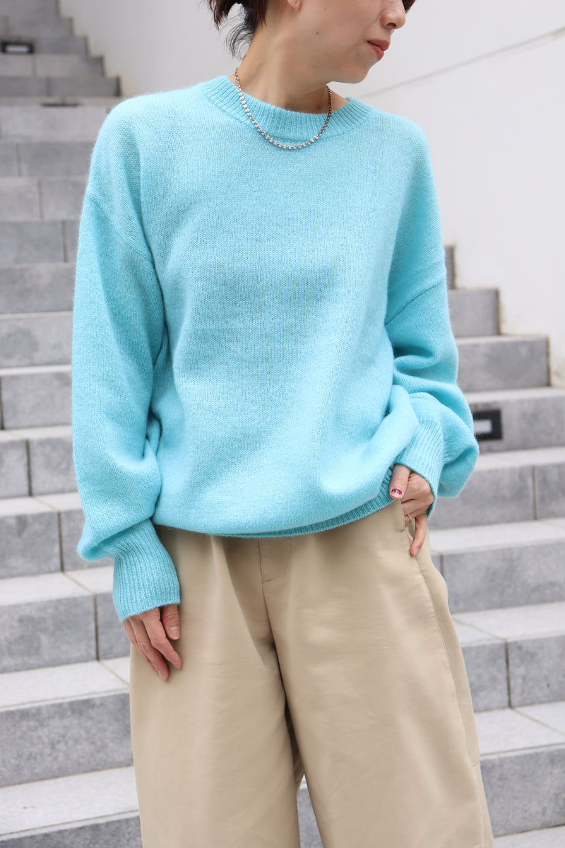 毛足の長いチャイニーズラクーンをブレンドした、軽さと保温性のあるニット。