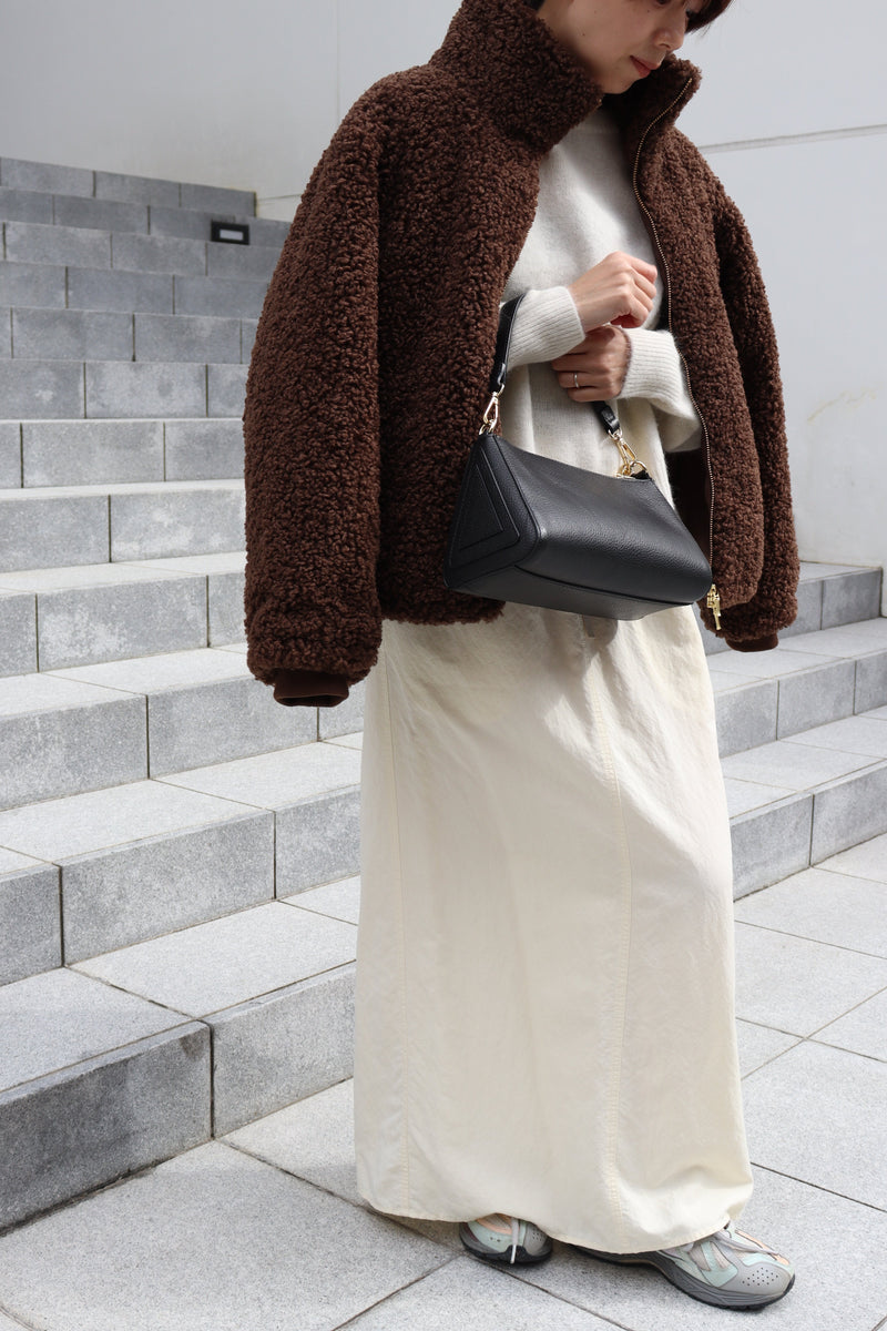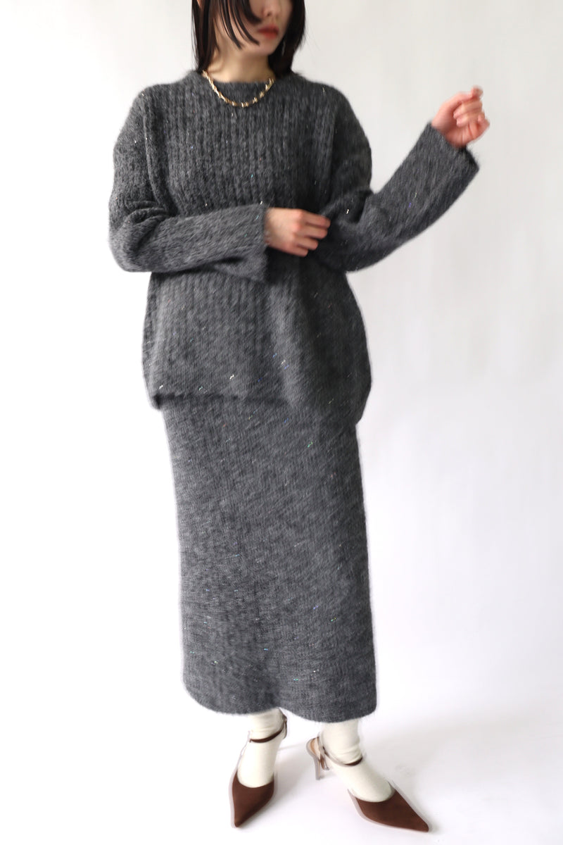繊細なラメとスパンコールが編み込まれていて、冬のイベントシーズンに向けての華やかなスタイルや、普段のお出掛けにも着ていただけます。小柄な方や華奢な方にもバランス良く着ていただける丈感に設定しており、単体使いでも使いやすいアイテムです。