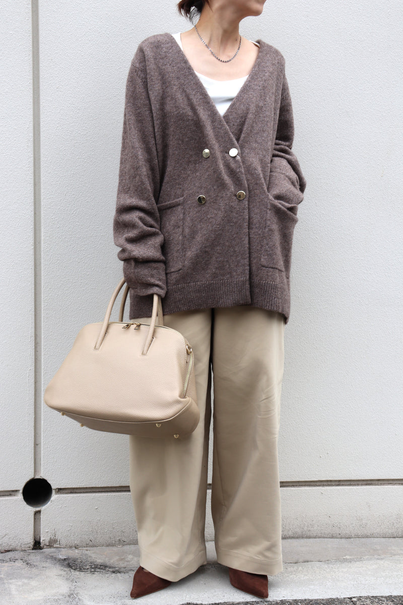 程よいオーバーサイズで、抜け感のあるVネックが大人っぽく女性らしい雰囲気に。肌当たりも心地よく、糸をミックスしていることで絶妙な色目に仕上がっています。