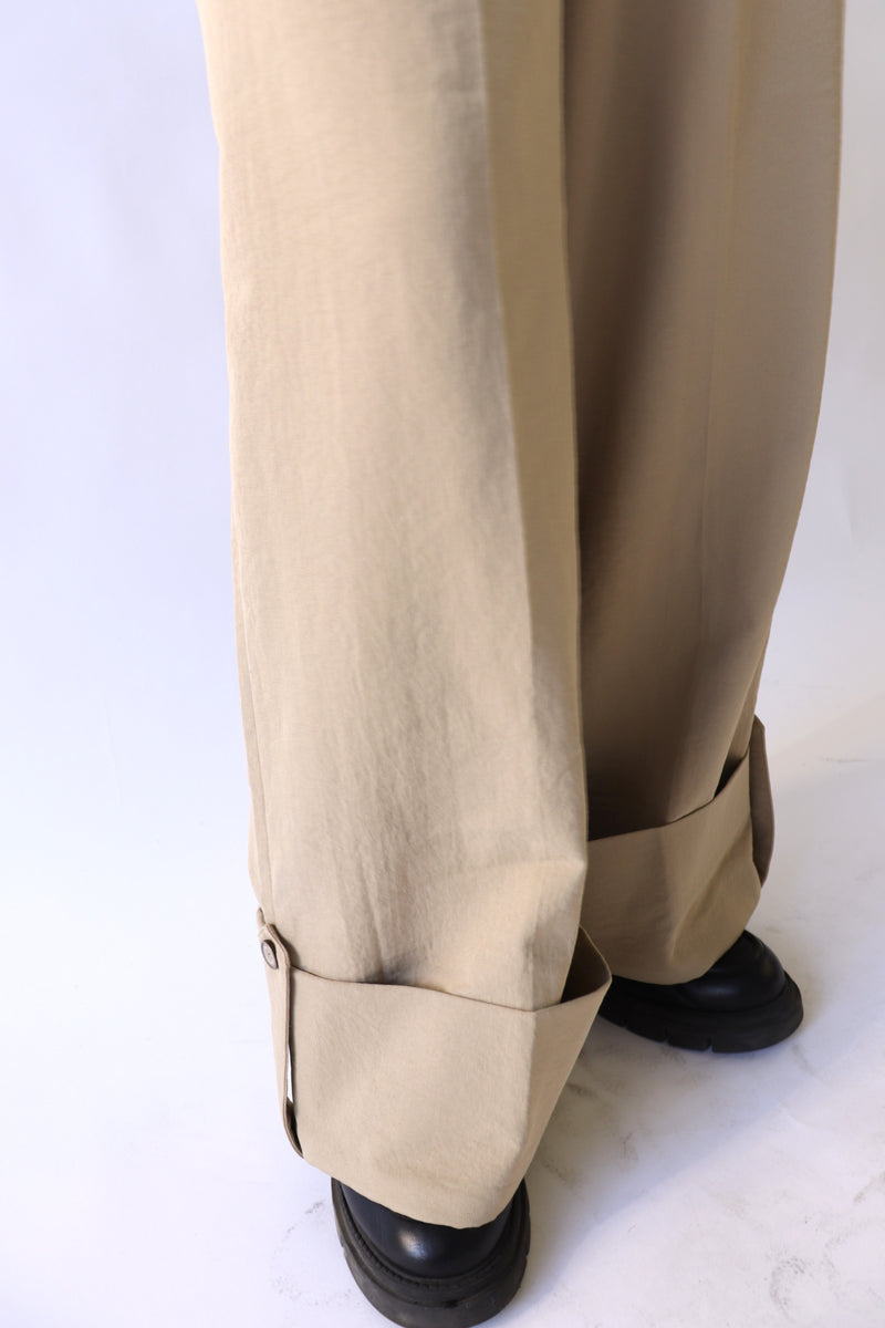 大きめの裾ロールアップがポイントのワイドパンツ。