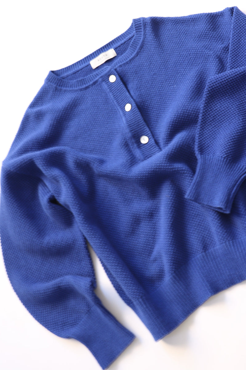 ゆったりしたサイズ感のヘンリーネックのニットプルオーバー。