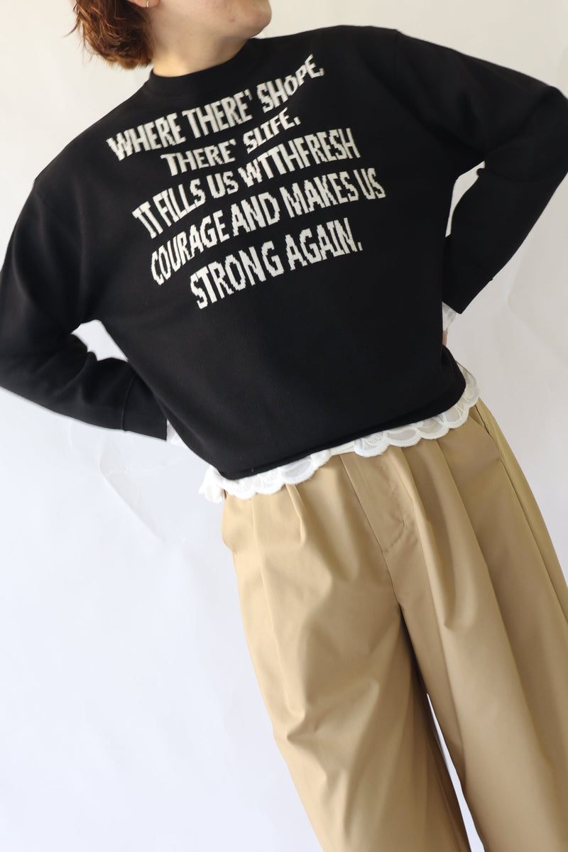 太いテープヤーンと綿混のリリーヤーンをミックスした糸を使用したニットプルオーバー。軽やかな質感ですが、シャツやカットソーを重ねれば早い時期から着ていただけます。