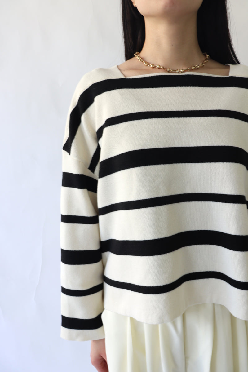 大きめのボーダーが今季らしいボックスシルエットのニット。