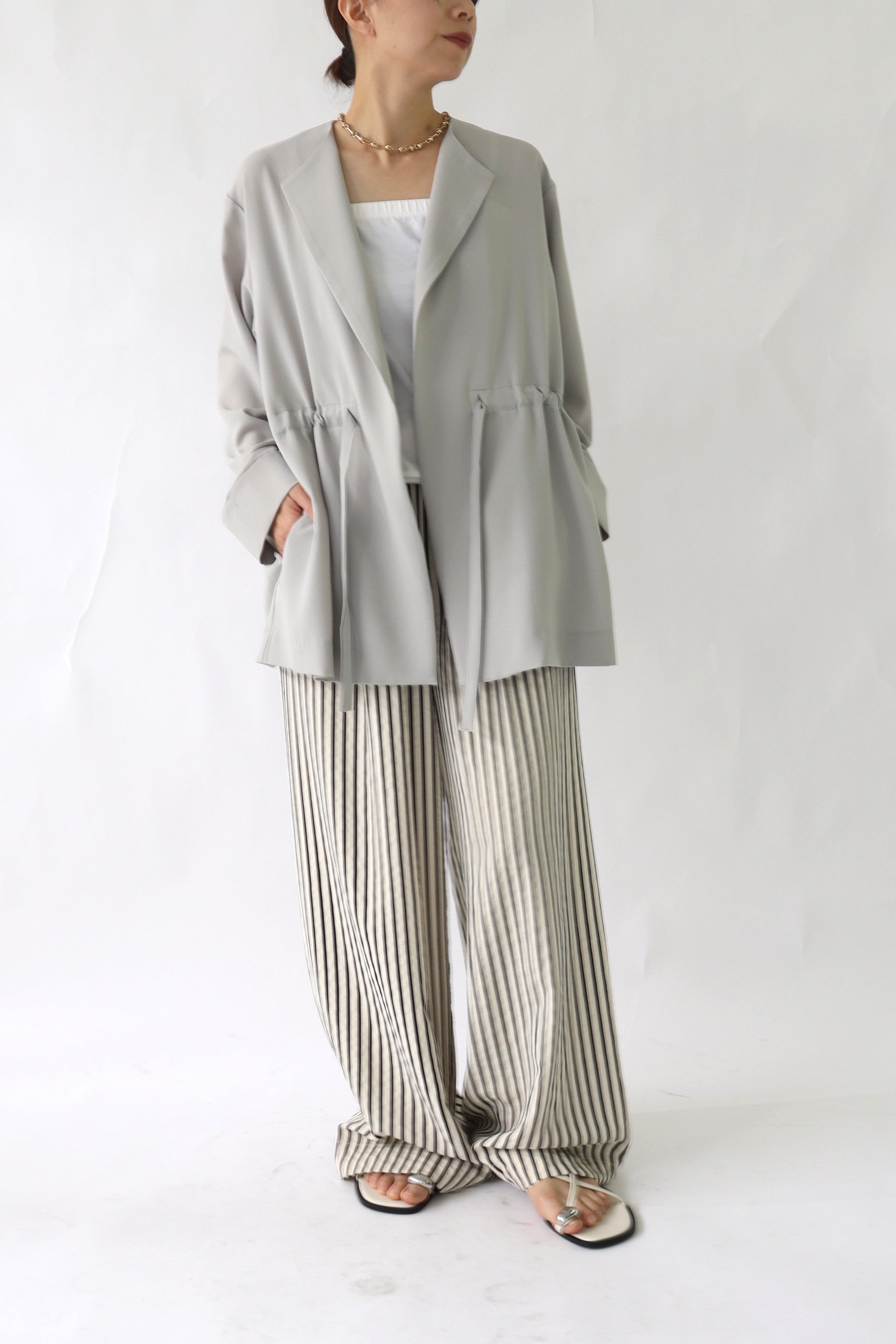 ウエストに共地のリボンが入っており、軽く絞っていただくと表情が変わり、こなれた雰囲気に着ていただけます。