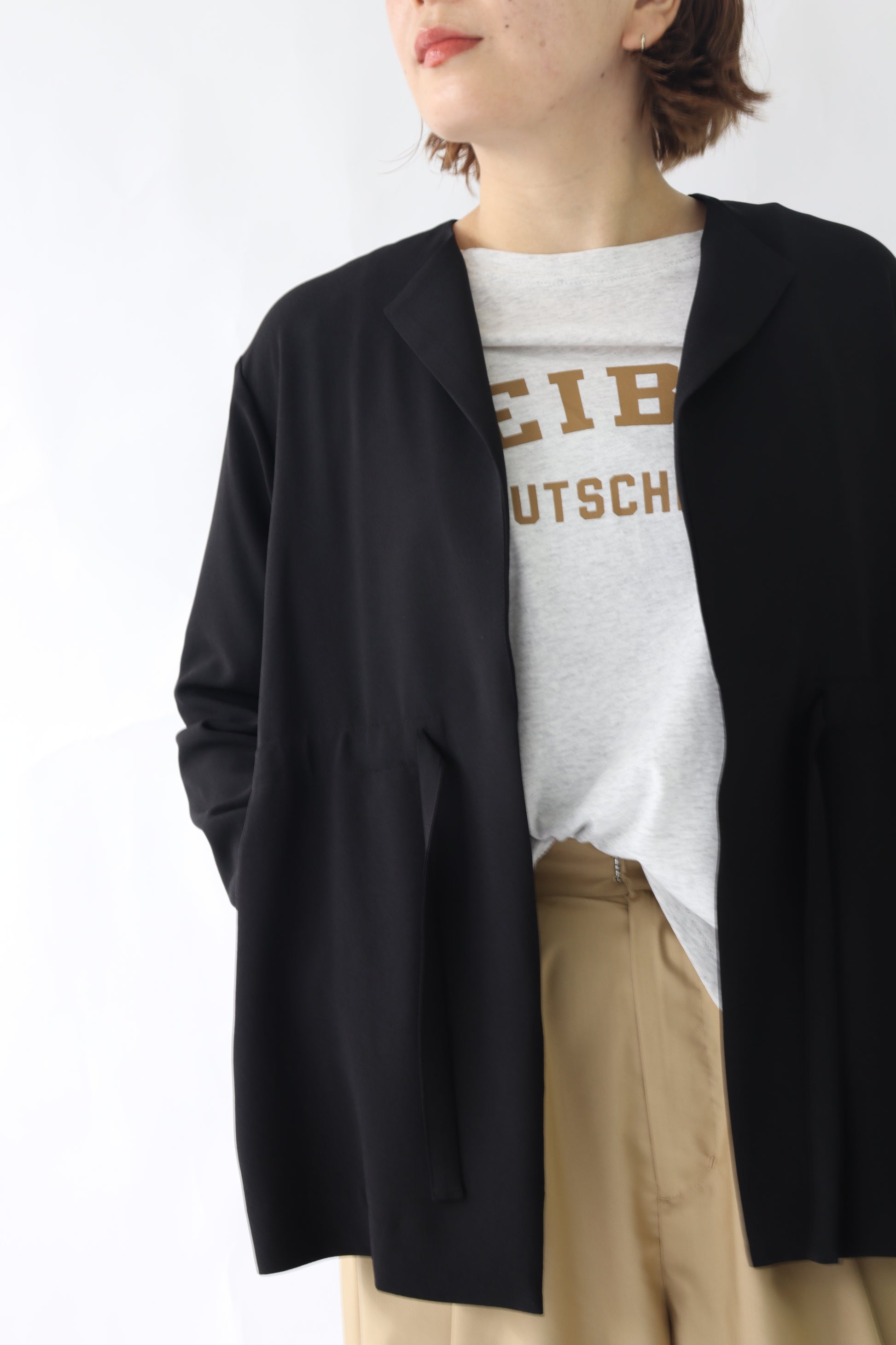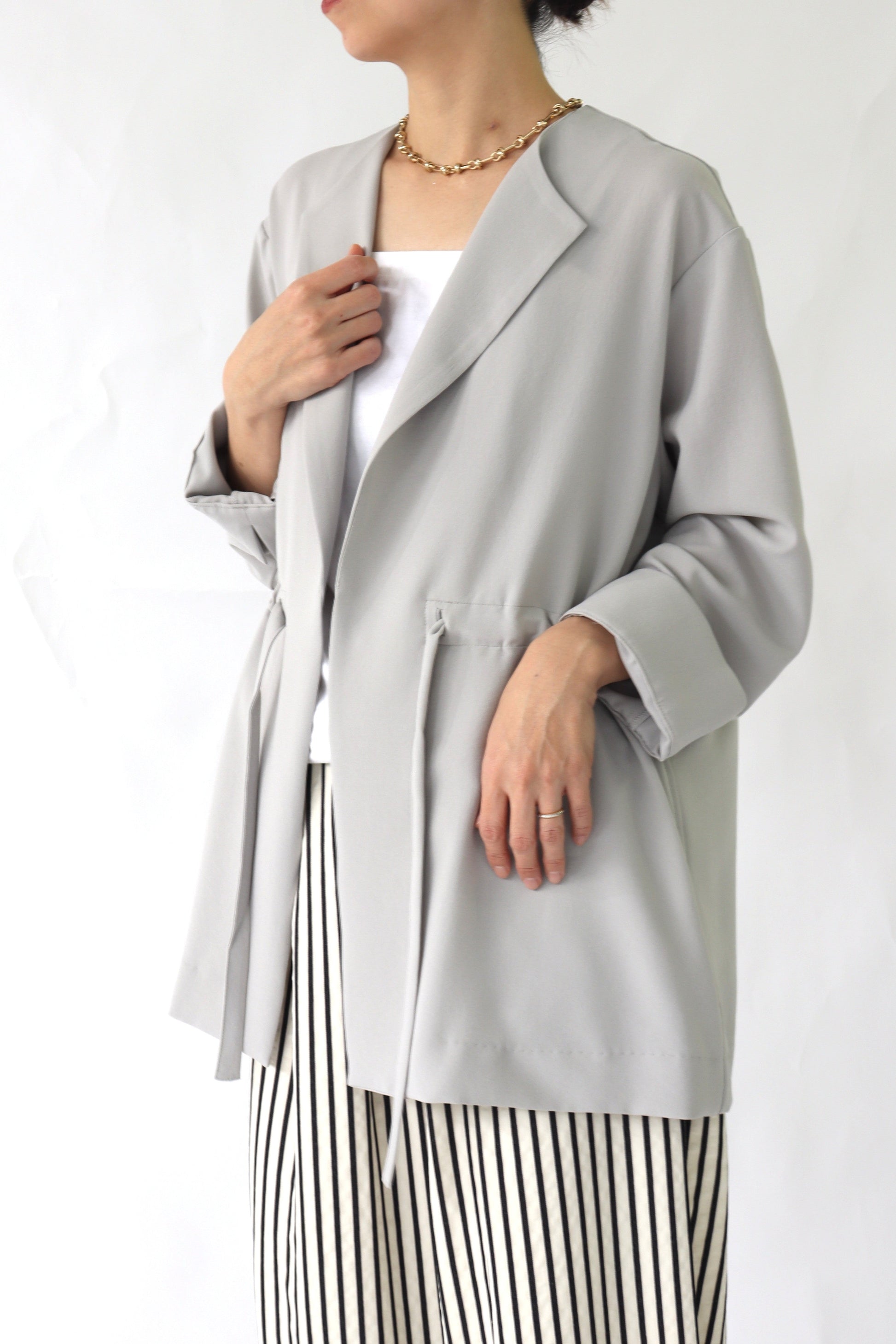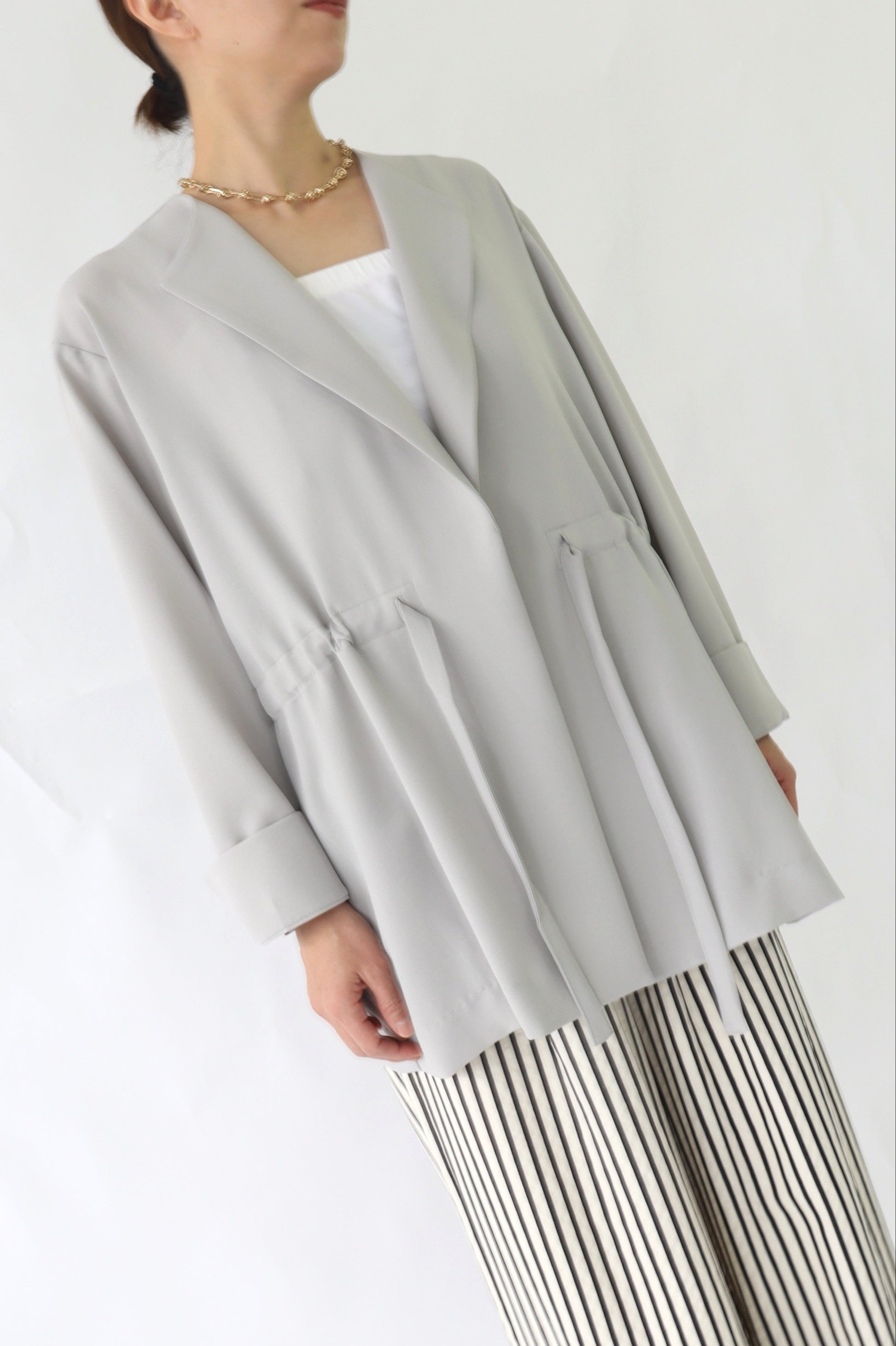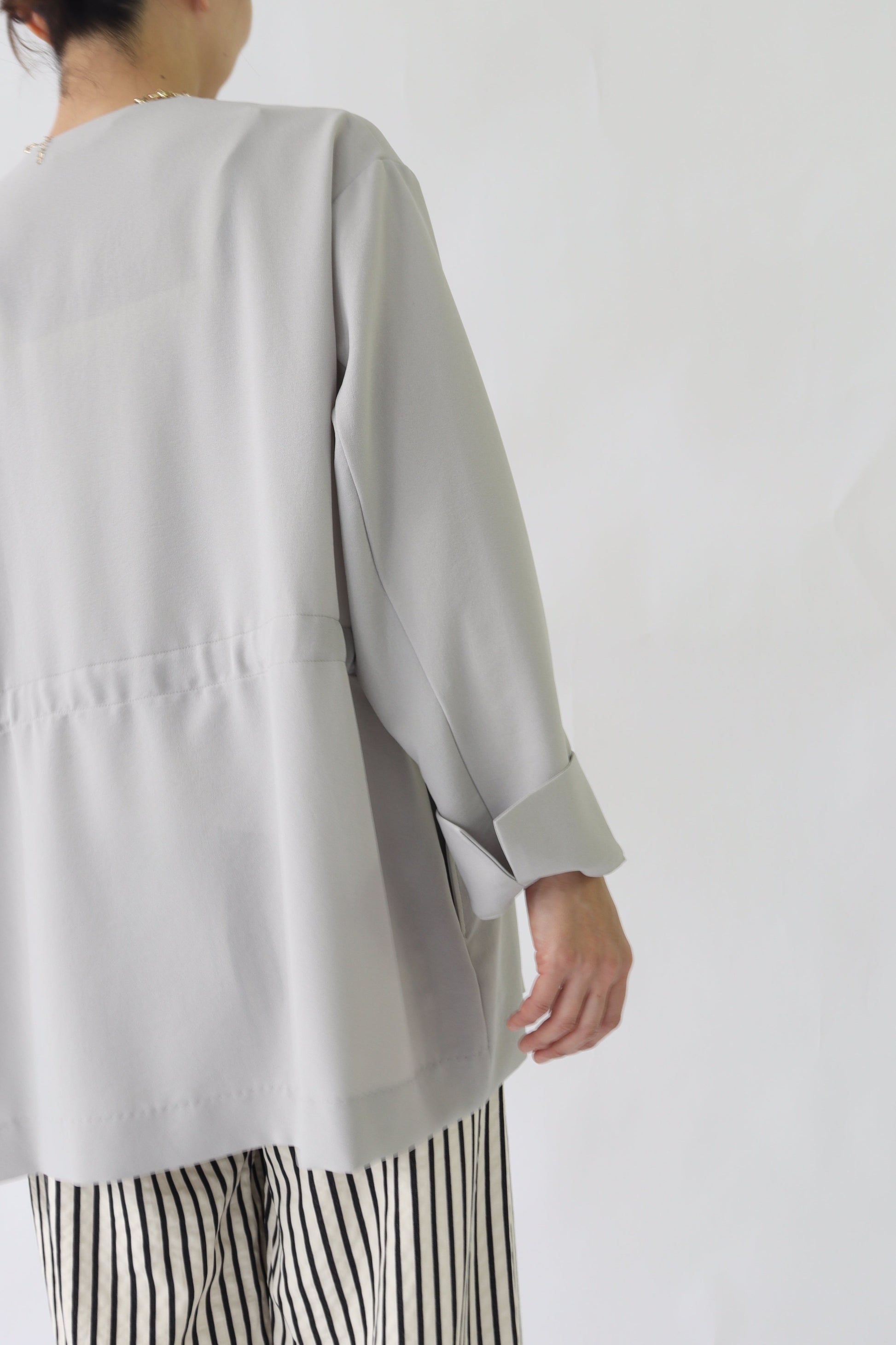 微ストレッチ感のある軽量の2WAYジョーゼットを使用しており、着心地が良いのはもちろん、しわになりにくい素材なので通勤着から日常着にも最適。鞄にしのばせて冷房除けなどにも使っていただけるので、長い間活躍するアイテムです。