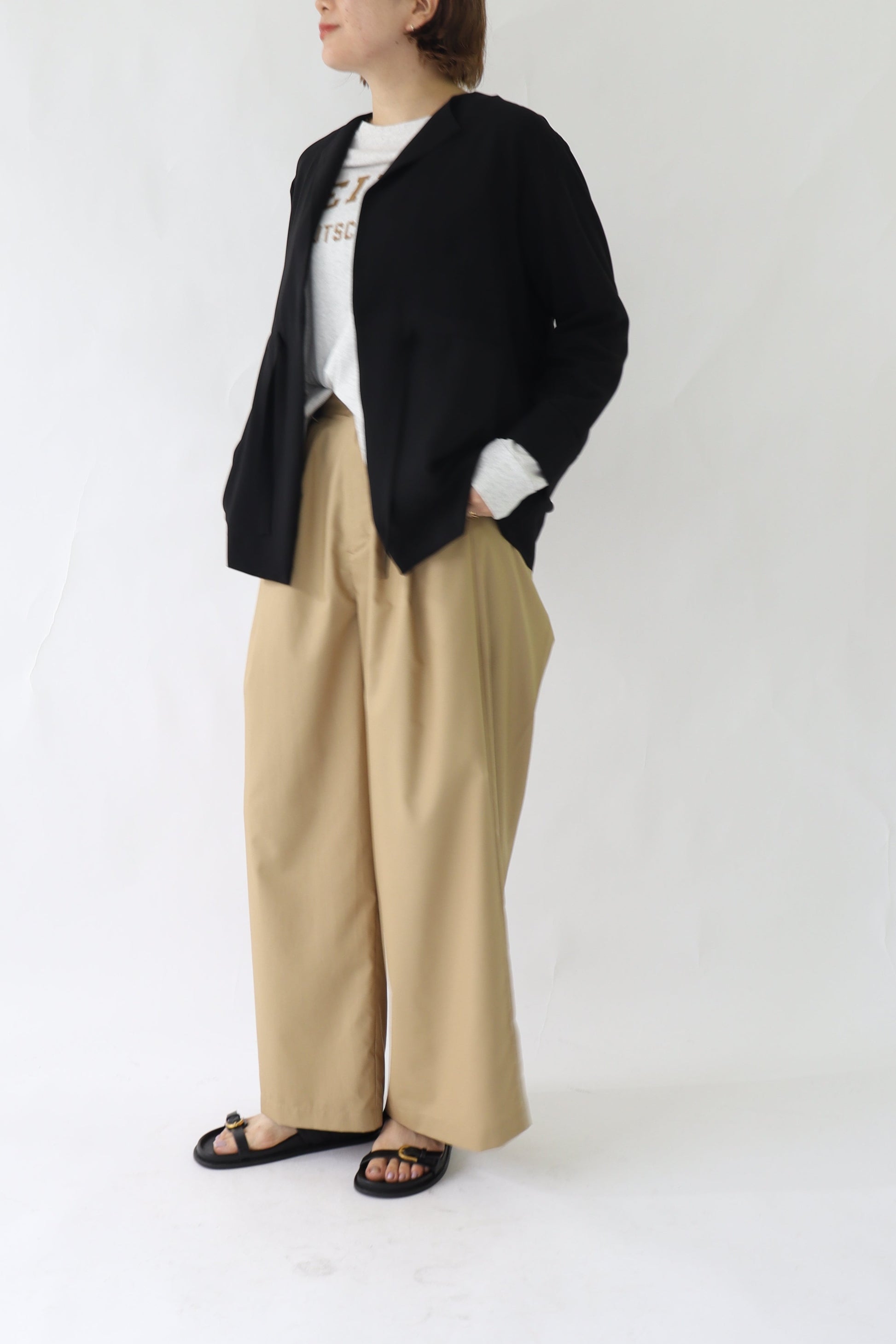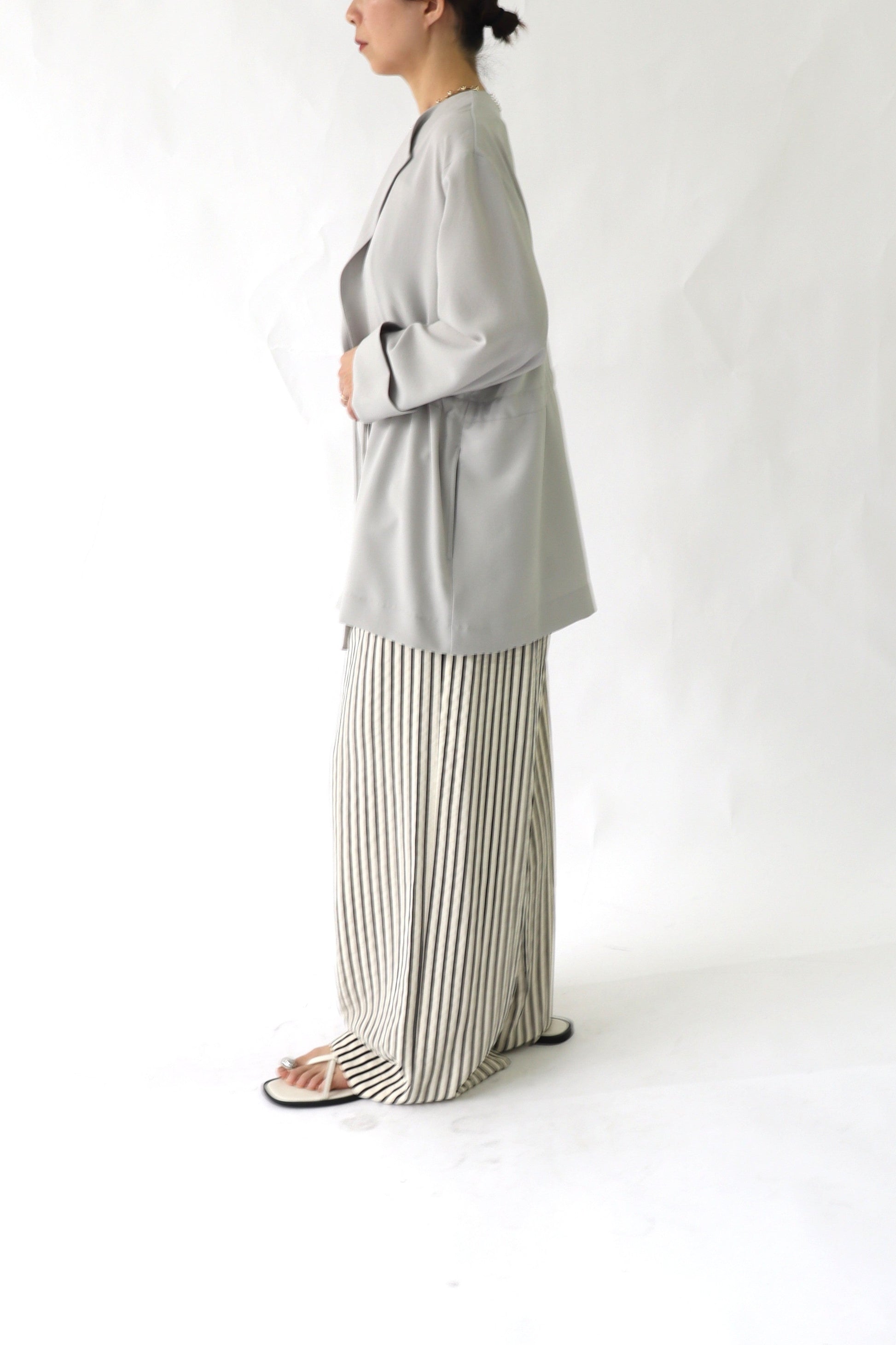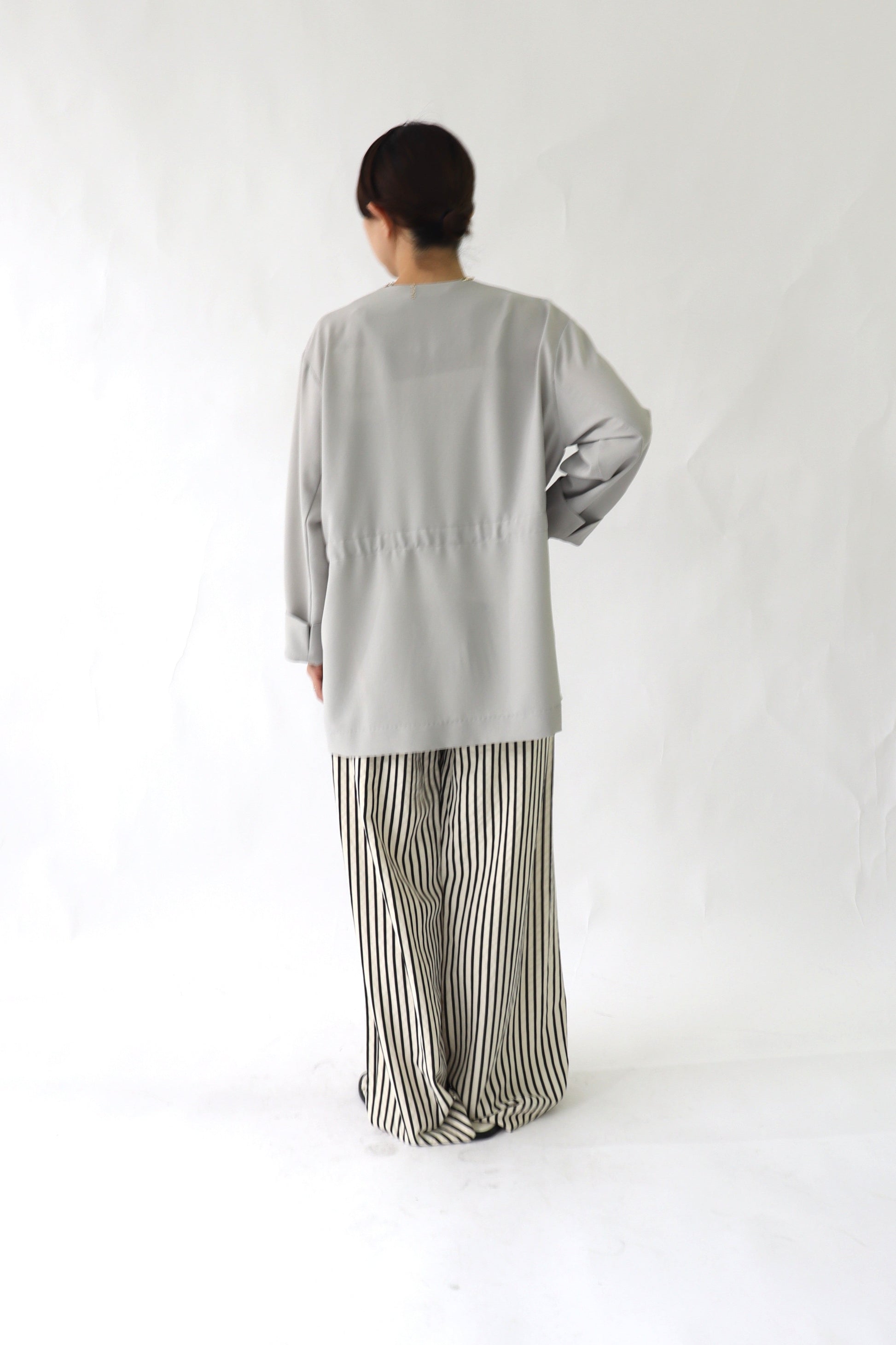 微ストレッチ感のある軽量の2WAYジョーゼットを使用しており、着心地が良いのはもちろん、しわになりにくい素材なので通勤着から日常着にも最適。鞄にしのばせて冷房除けなどにも使っていただけるので、長い間活躍するアイテムです。