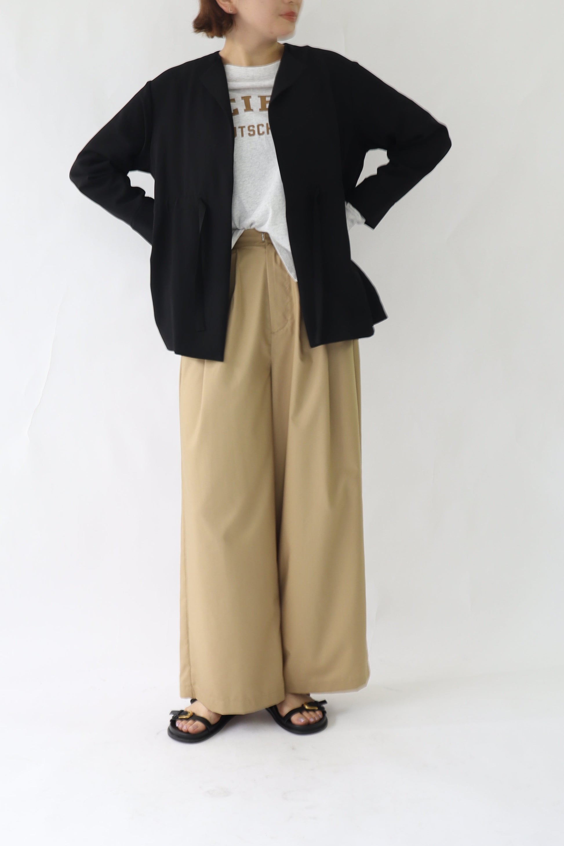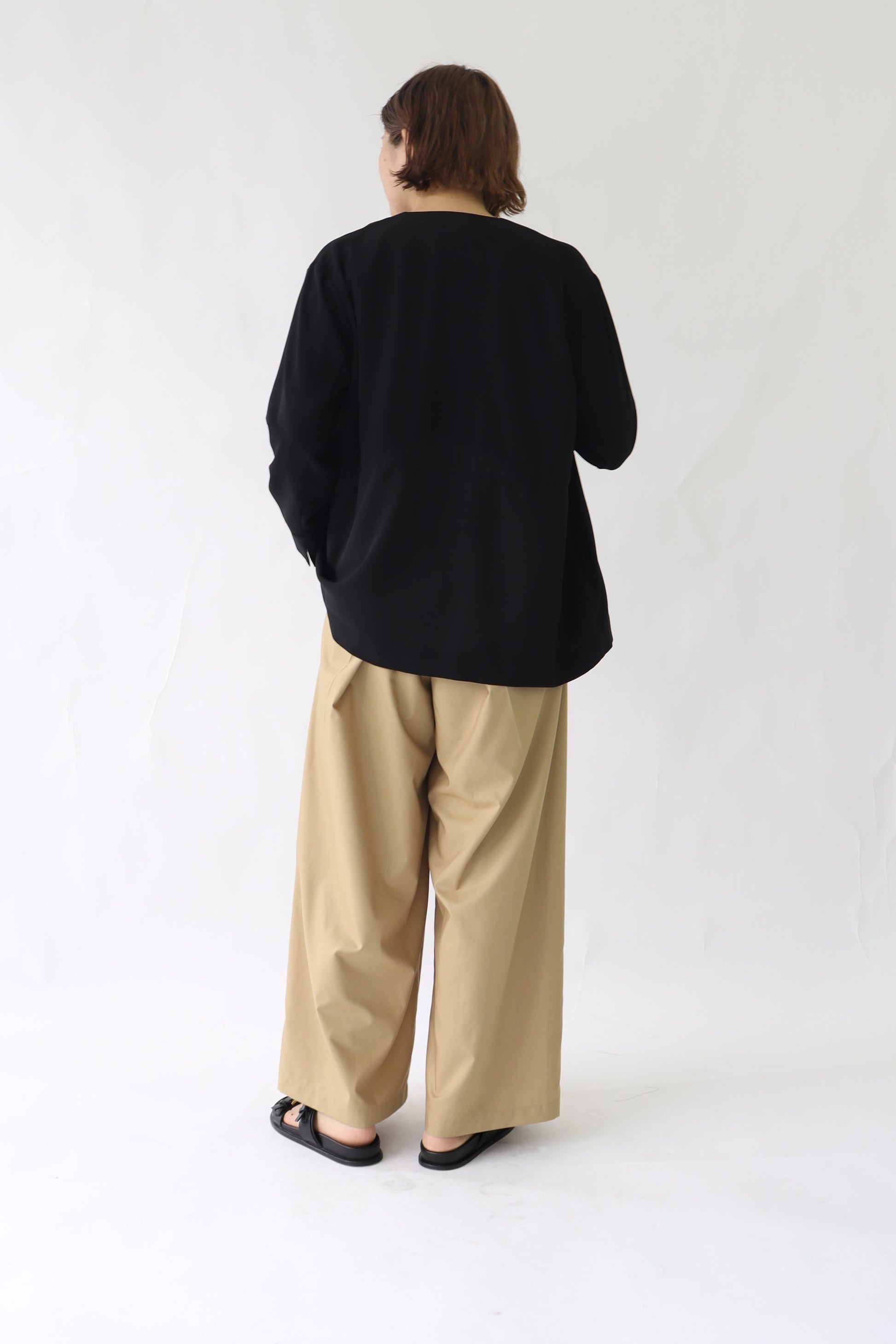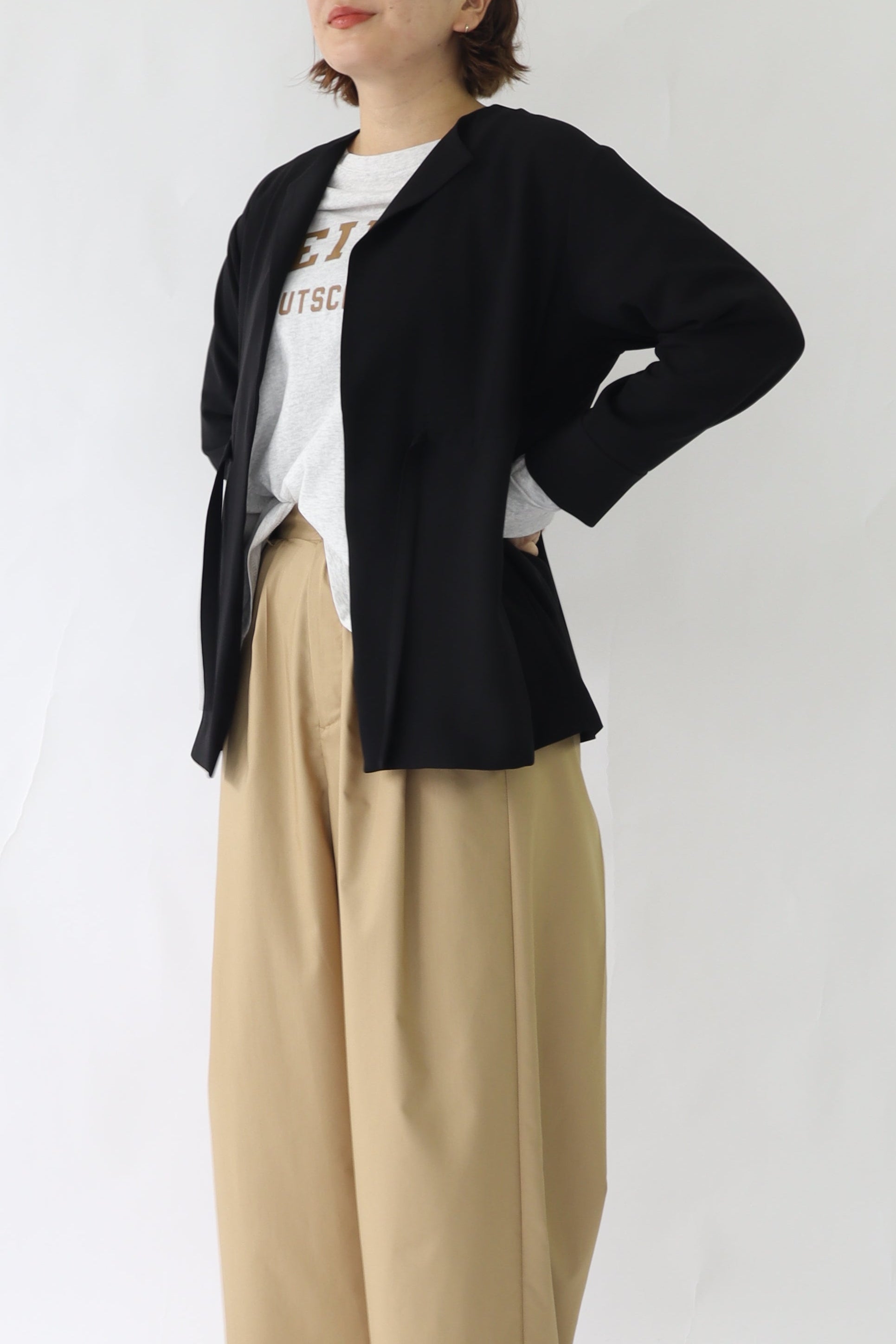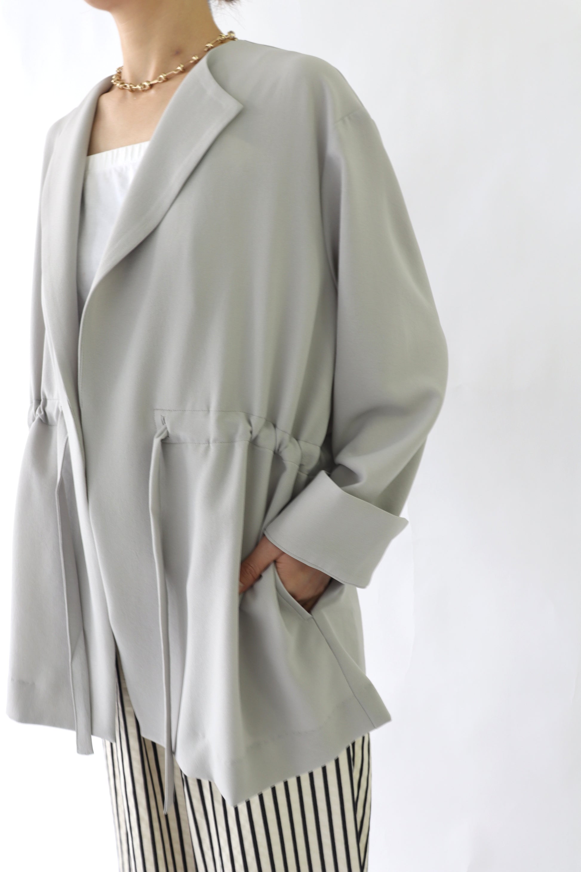 微ストレッチ感のある軽量の2WAYジョーゼットを使用しており、着心地が良いのはもちろん、しわになりにくい素材なので通勤着から日常着にも最適。鞄にしのばせて冷房除けなどにも使っていただけるので、長い間活躍するアイテムです。