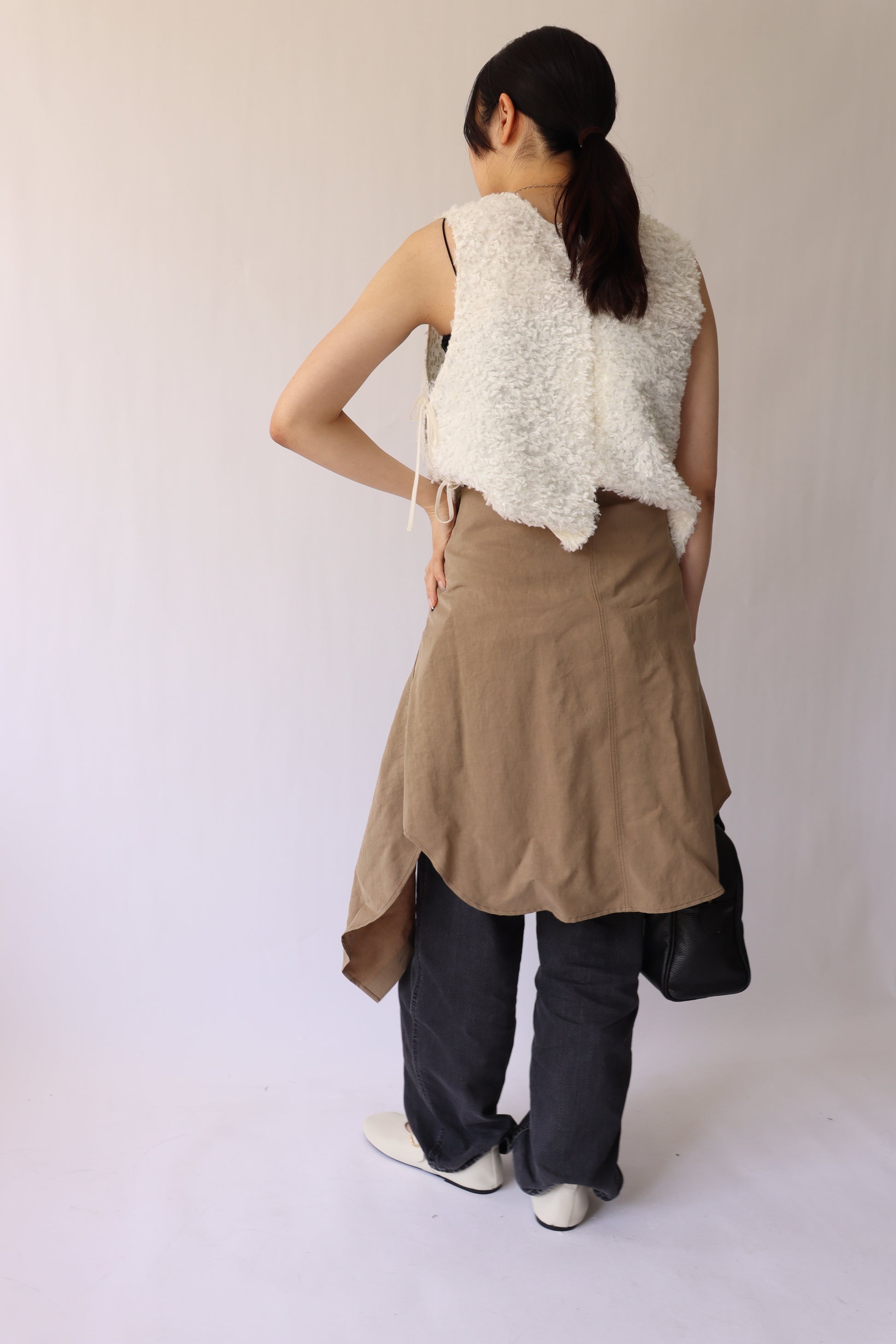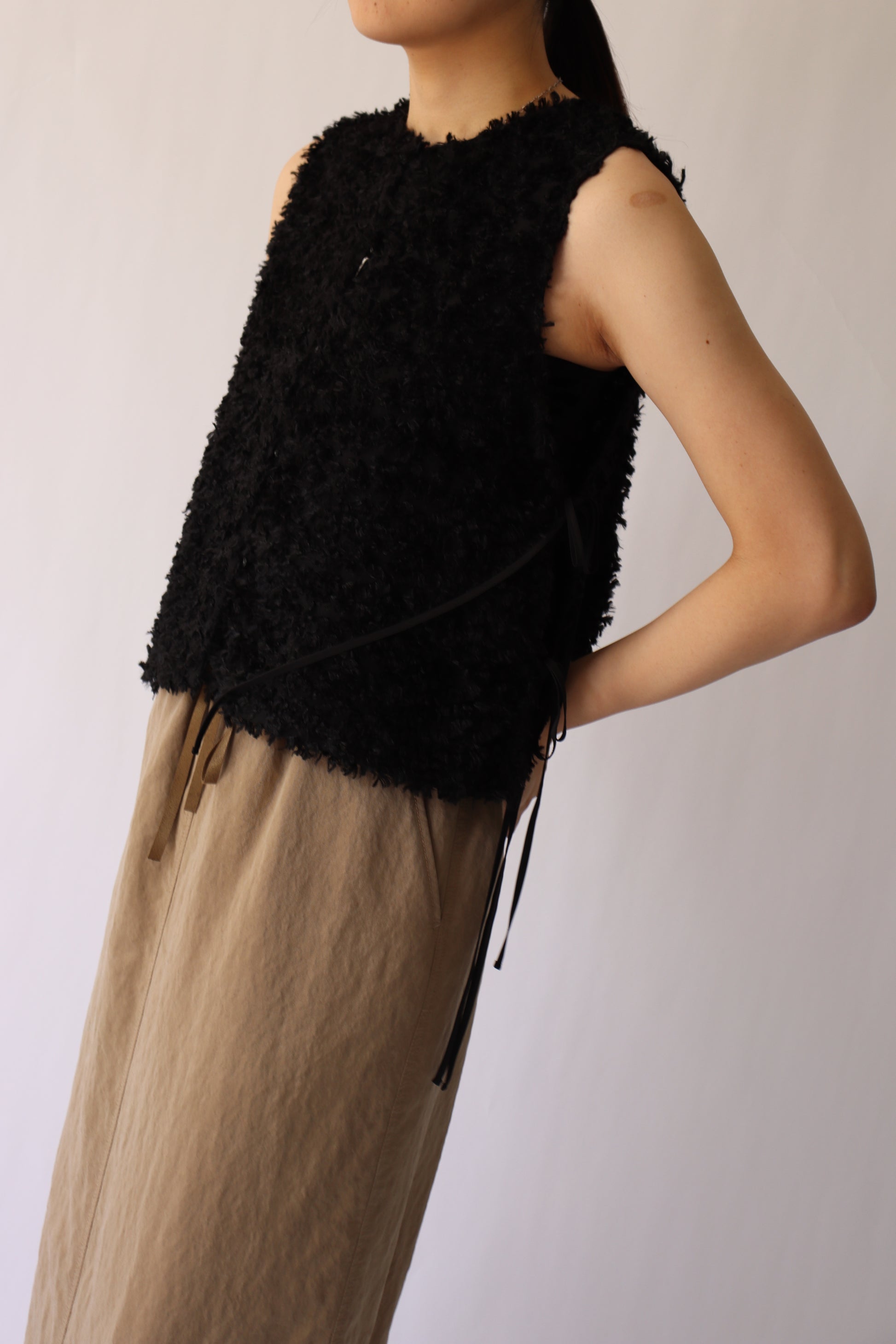 脇はあえてリボンで留めるだけの仕様で抜け感のあるレイヤードを楽しめます。サテンのワンピースなどに重ねて、オケージョンスタイルも〇 ジャケットやカーディガンのインに合わせてラフに着こなすのもおすすめ。