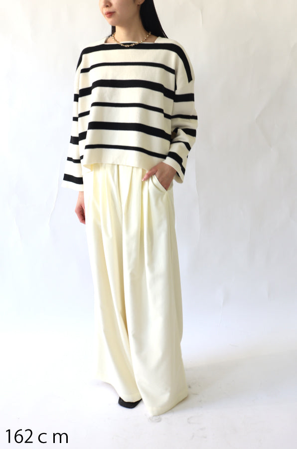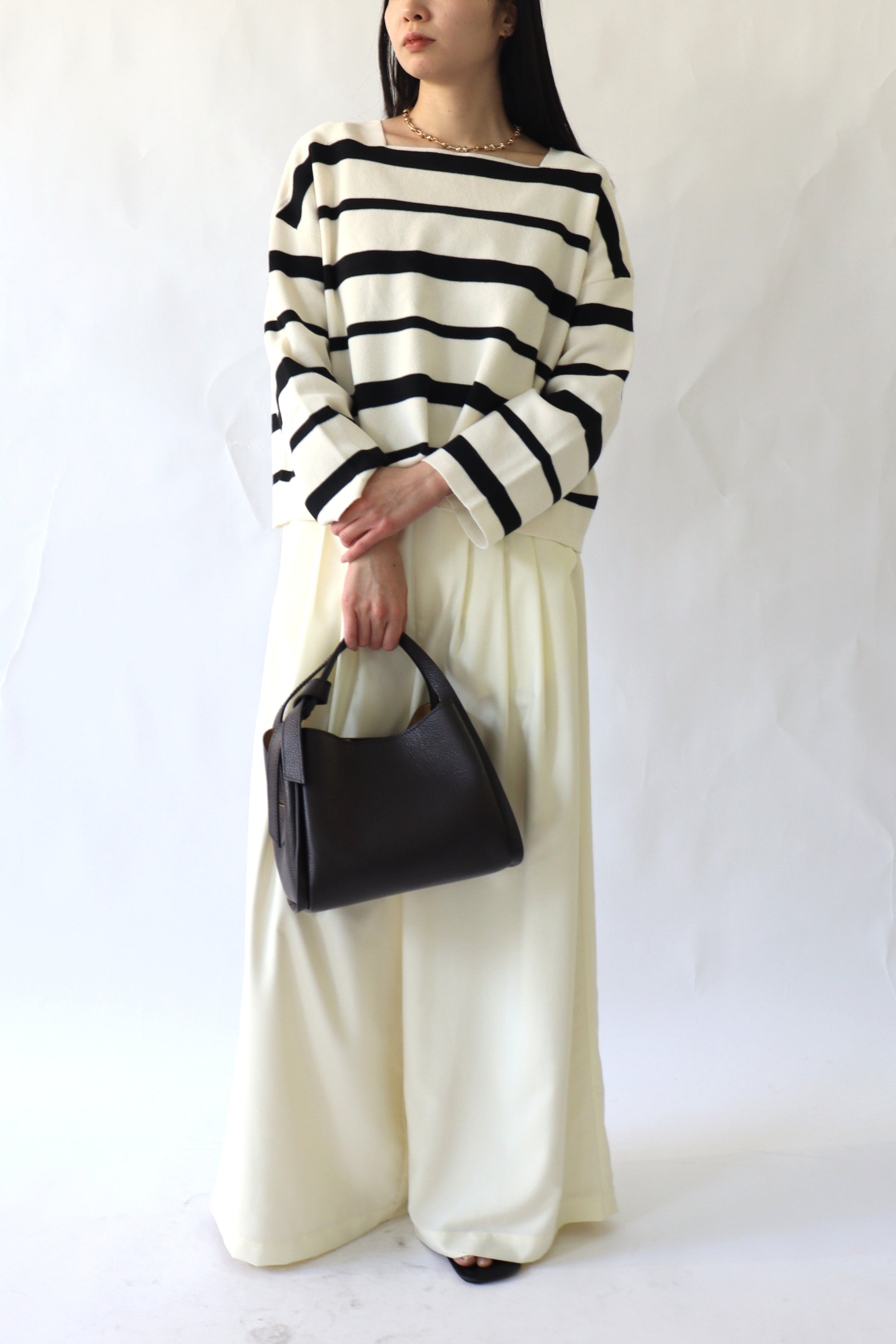 大きめのボーダーが今季らしいボックスシルエットのニット。ボーダーがマルチピッチなので印象的で大人っぽいアイテムです。
