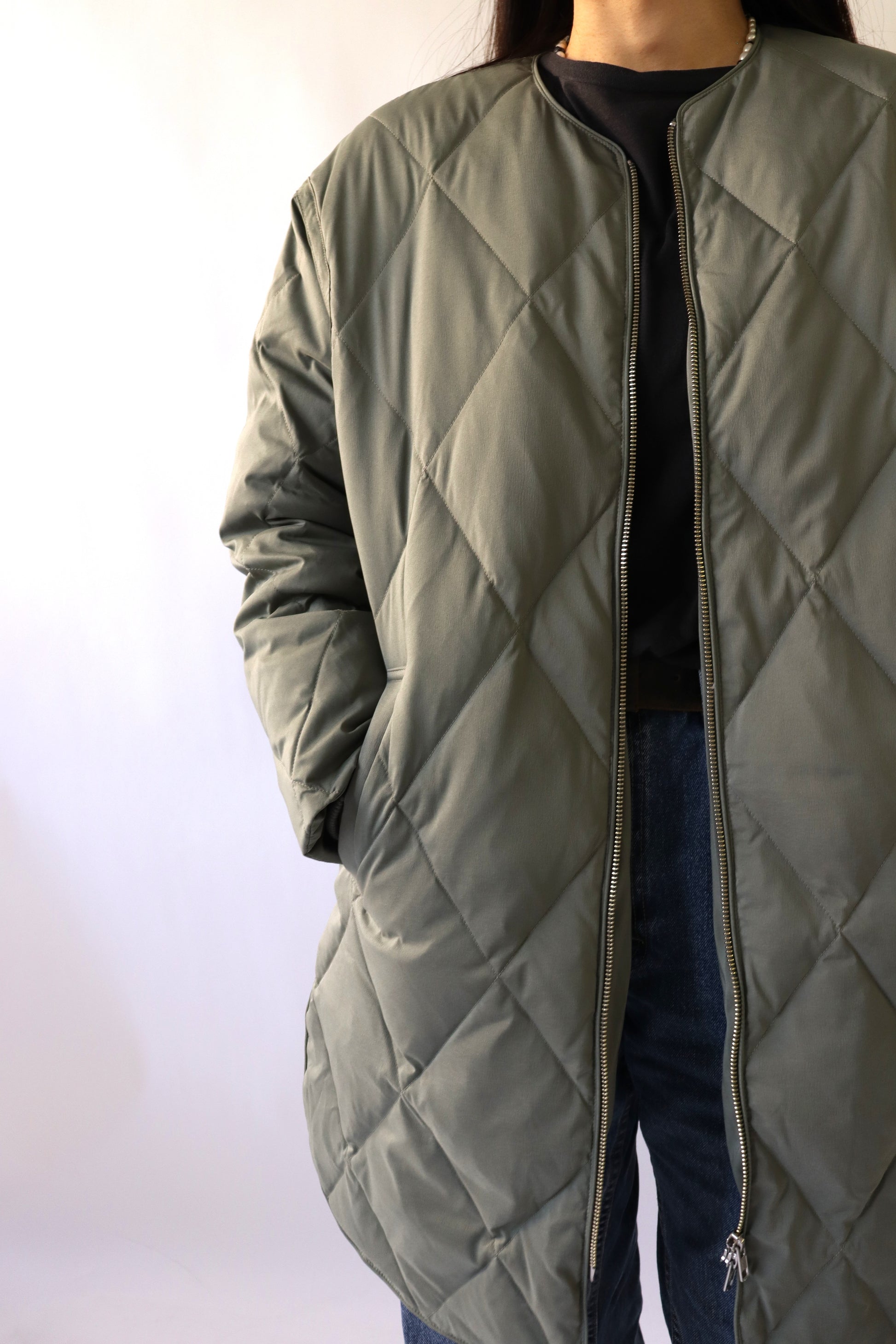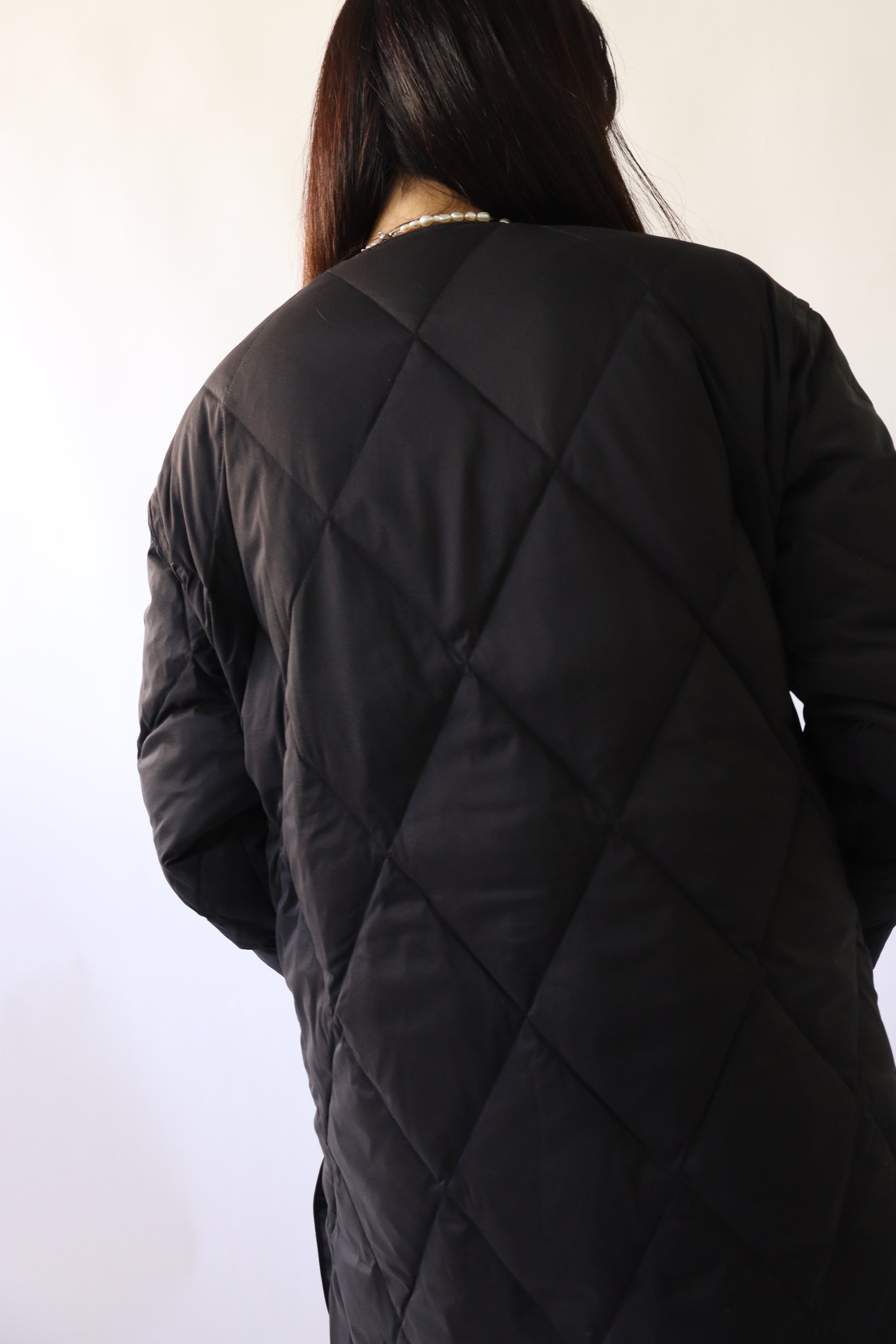 毎年人気のダイヤ柄キルティングダウン。今年は、着心地を意識したストレッチタフタの素材に変えて登場。