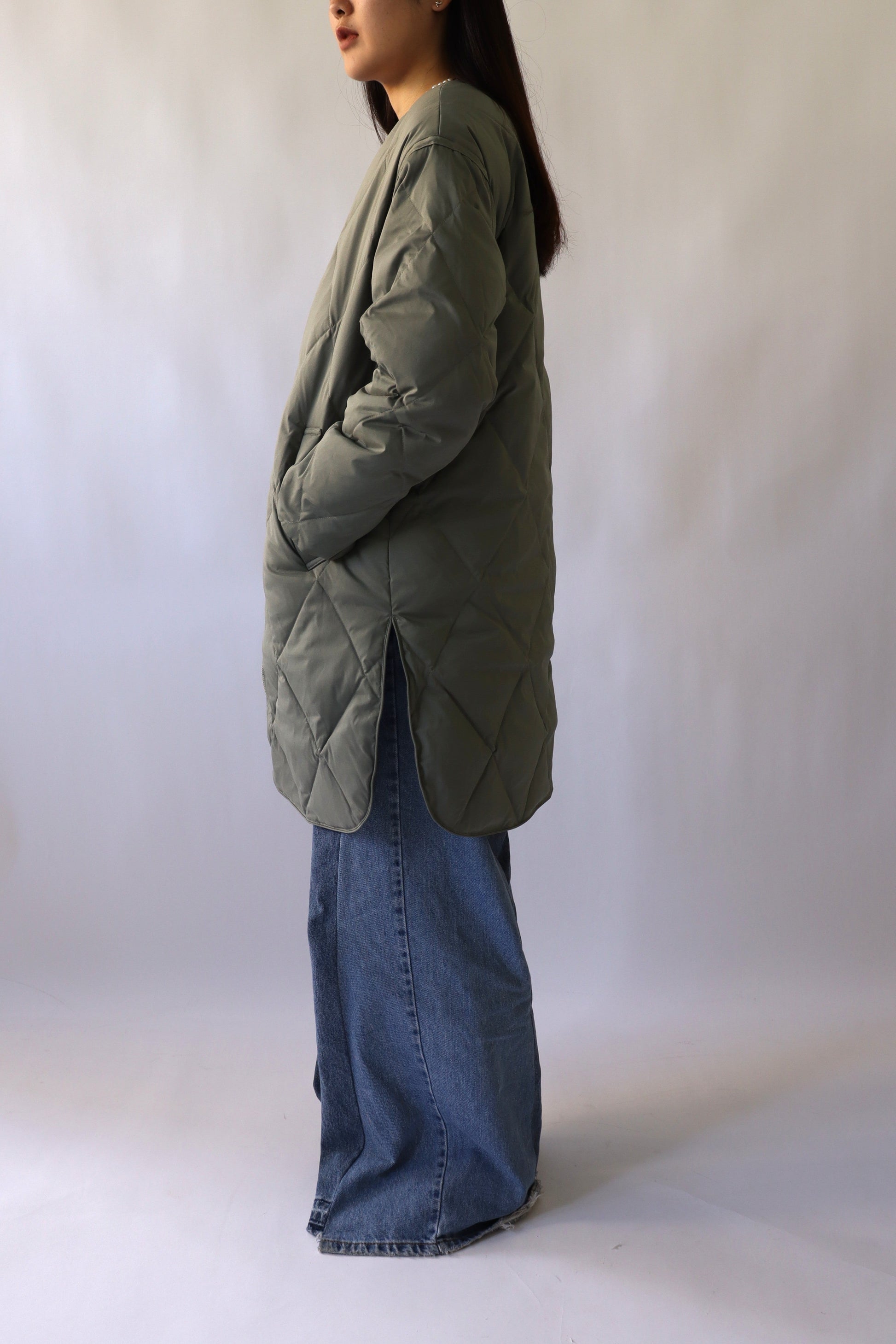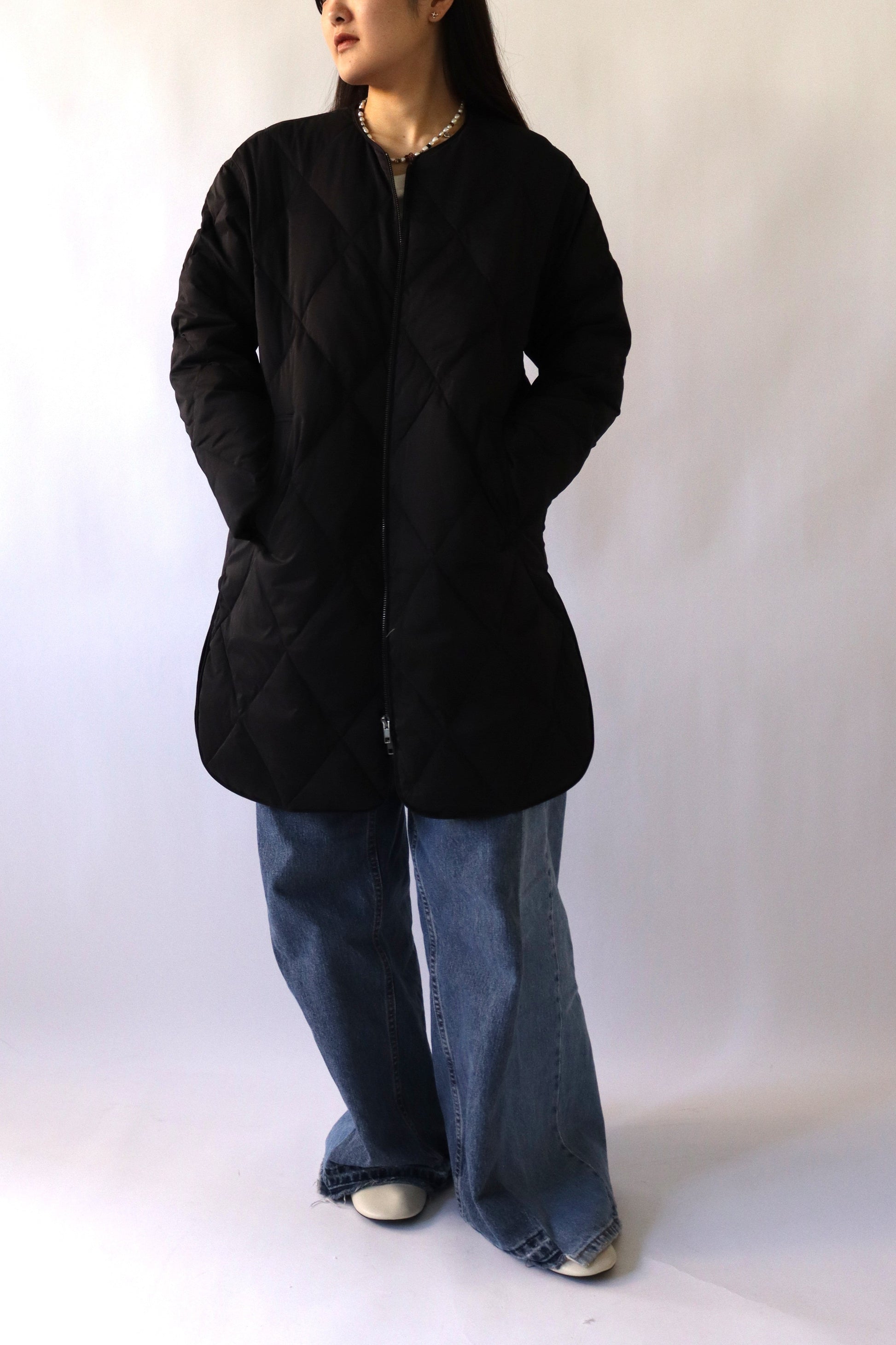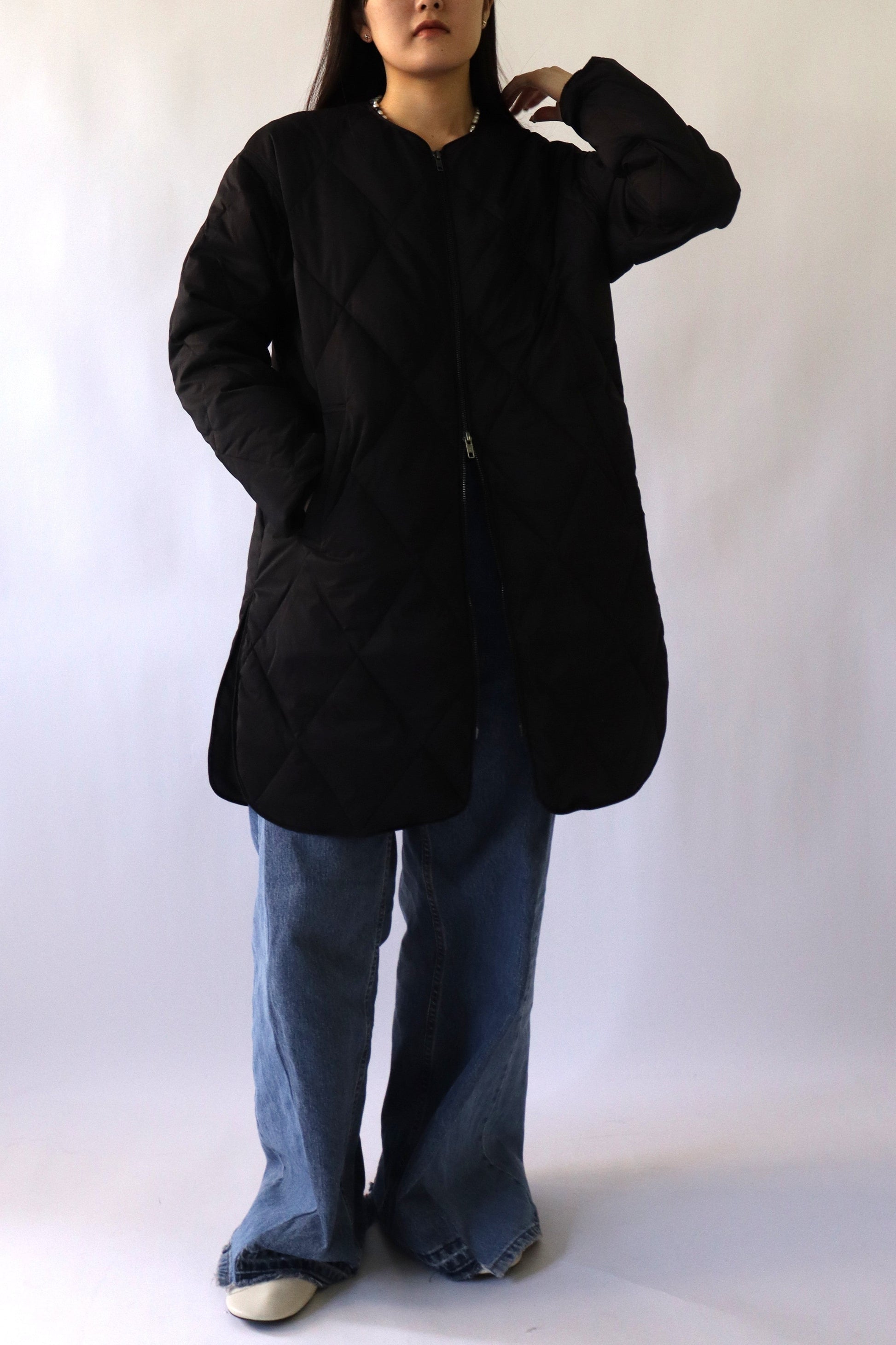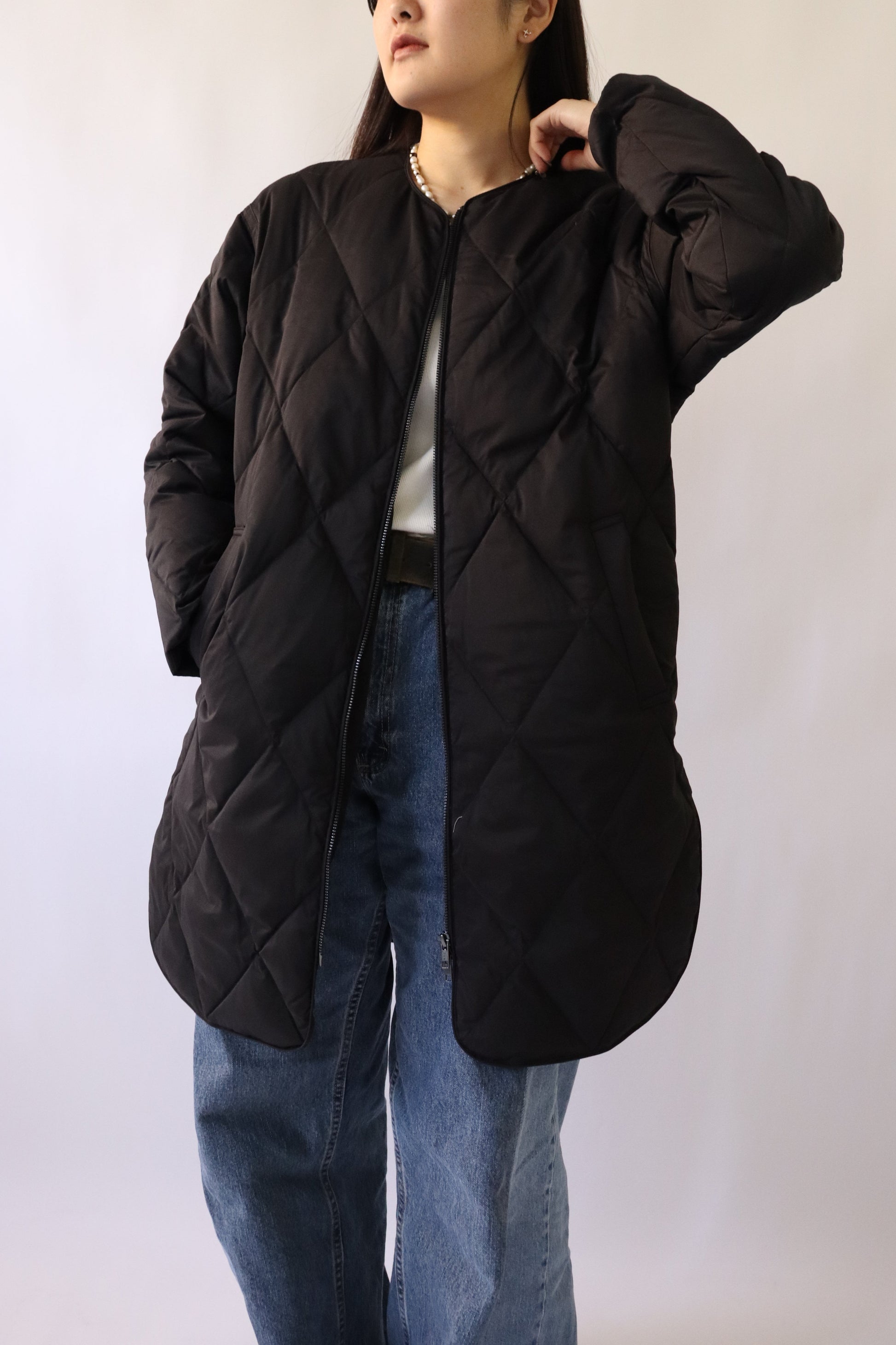 中綿は贅沢にダウン80%、フェザー20%を使用し、ボリュームを抑えた分量に調整したことで、着膨れ感を気にせず着ていただくことができます。また、お尻がすっぽり隠れるロング丈でありながら、総重量が700g以下と軽量で着心地も◎