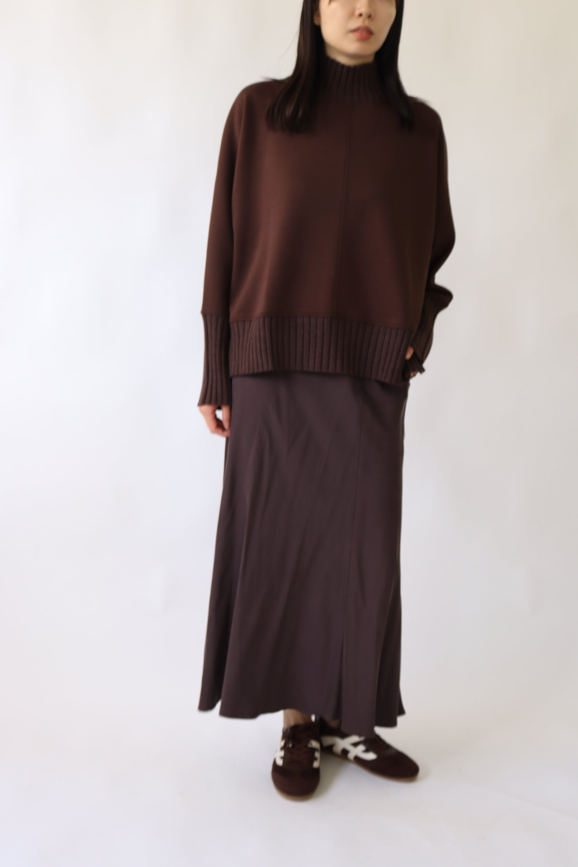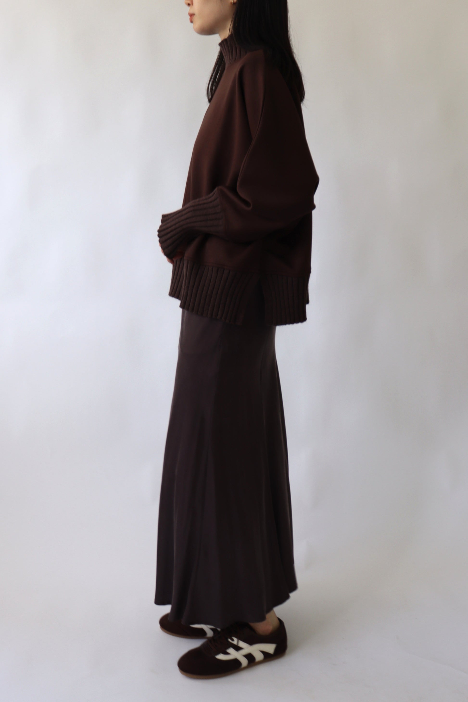 ウール混のワイドリブを衿、袖口、裾にあしらい、身頃には切り替え入れたりと、シンプルながらにこなれ感のあるプルオーバーに仕上げました。ワイドフォルムでゆったりと合わせられるラフな雰囲気がデイリーシーンにぴったりの人気アイテムです。