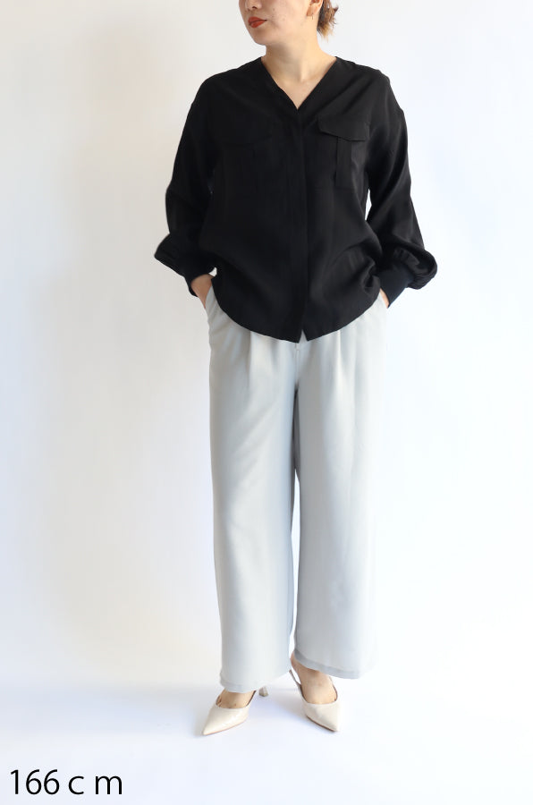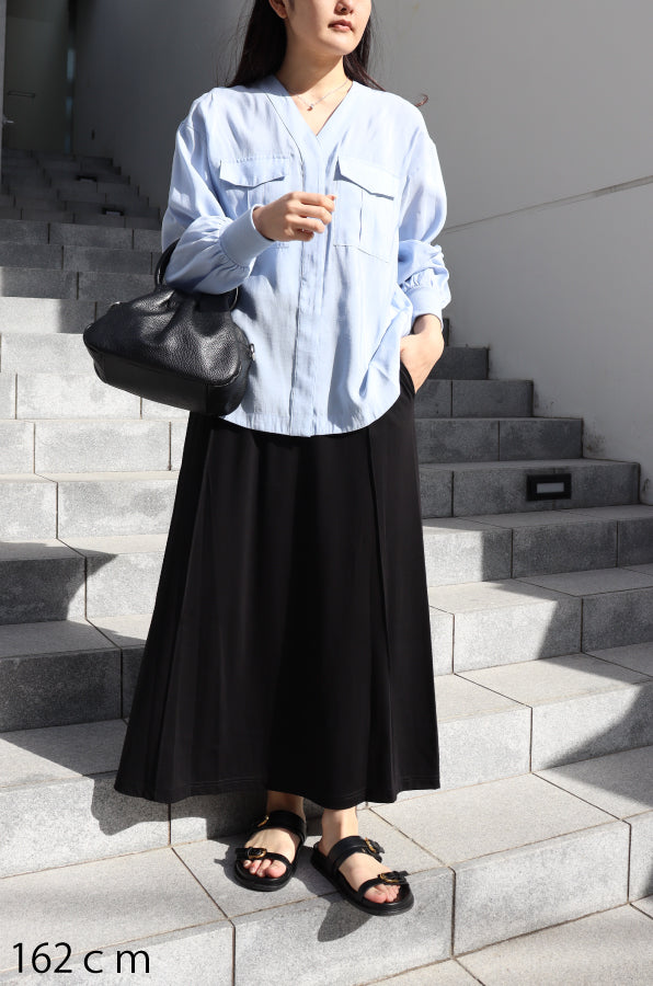 綺麗見えの素材を使用しているのでカジュアルになり過ぎない所も嬉しく、衿元の抜け感が女性らしい商品です。