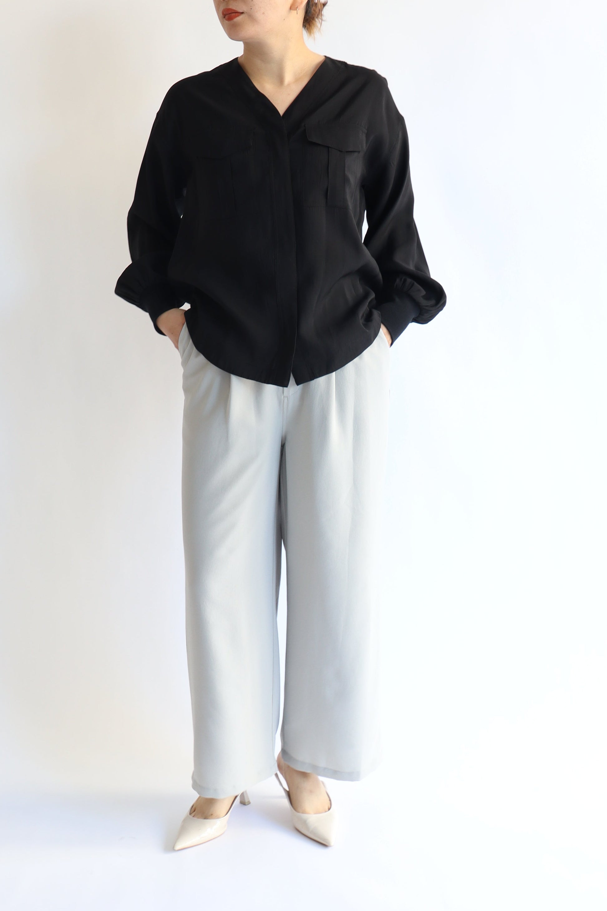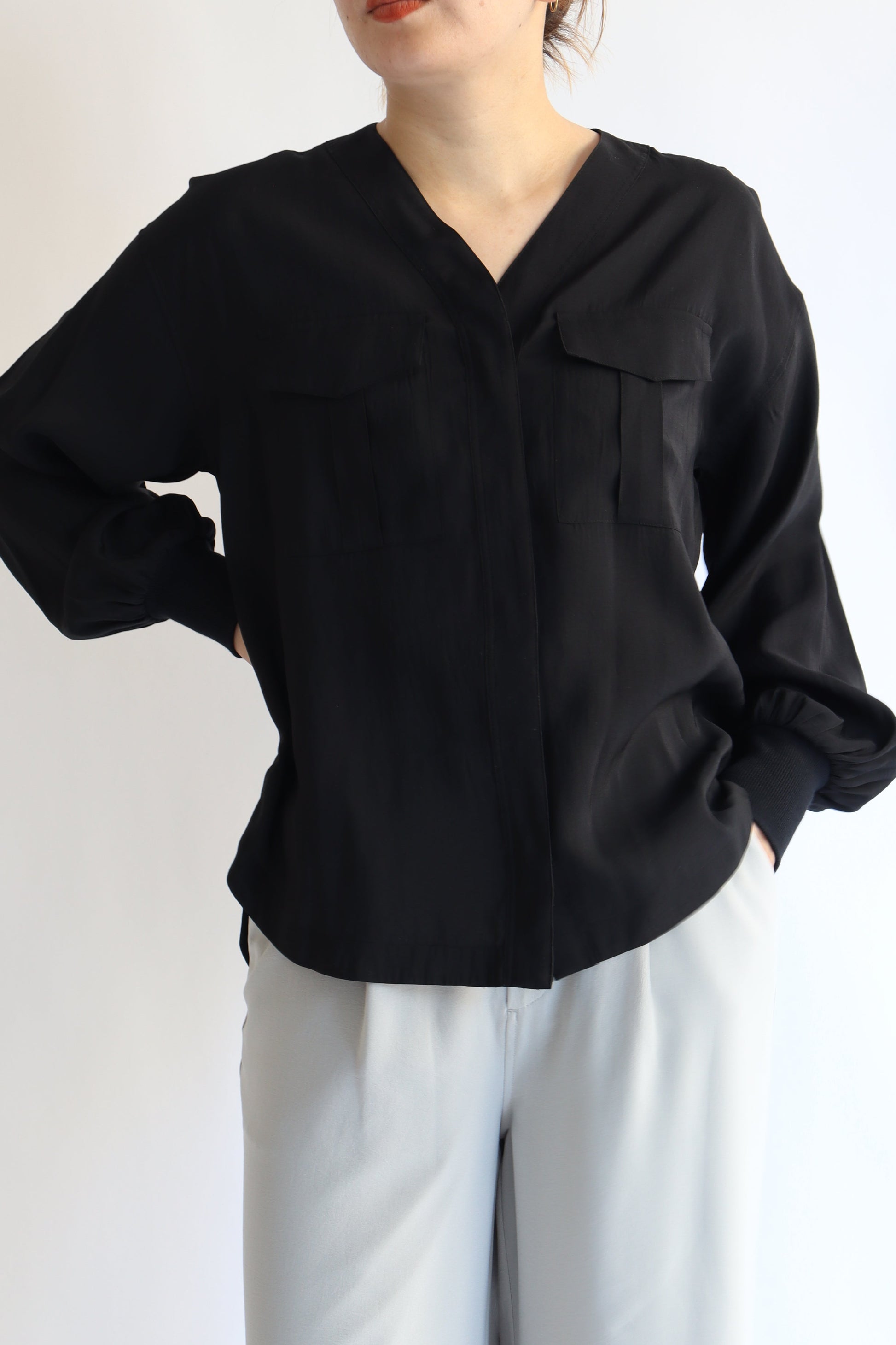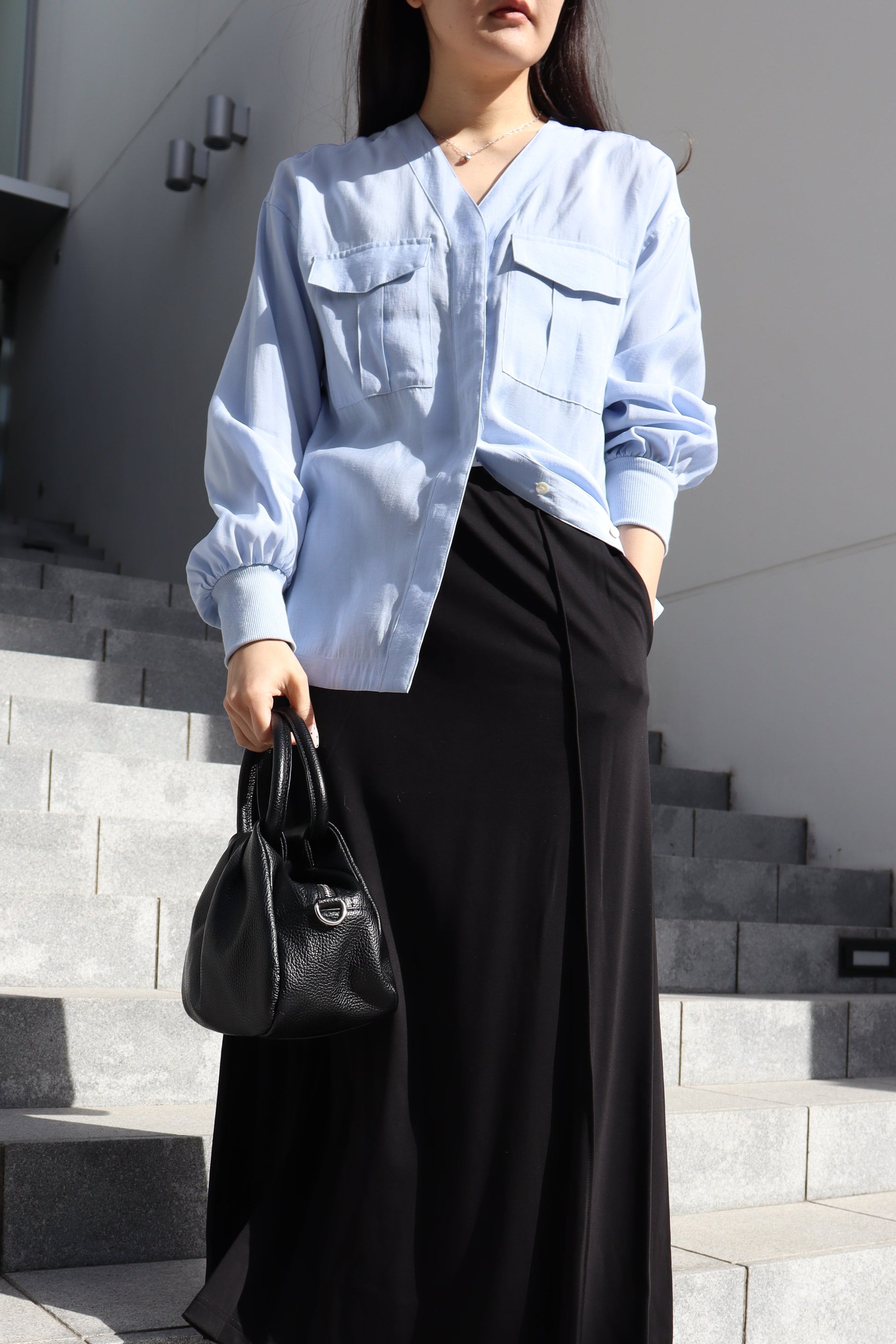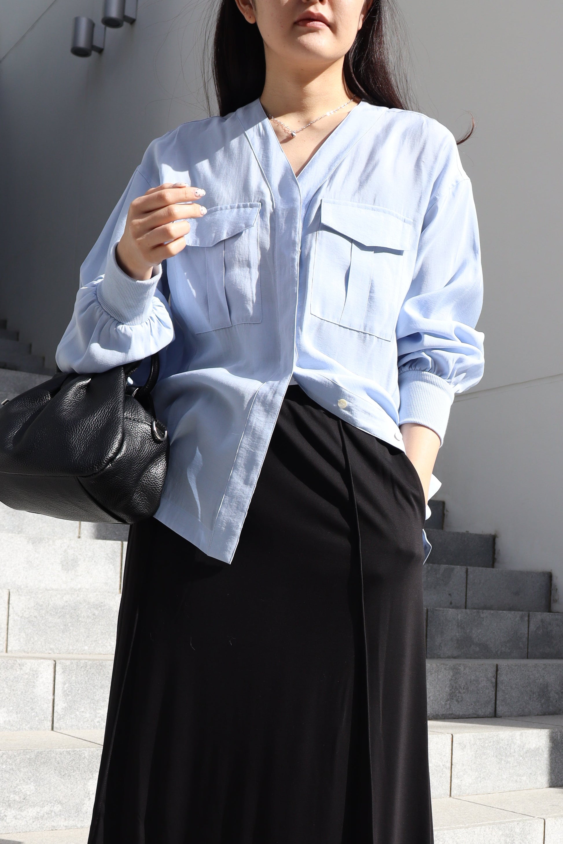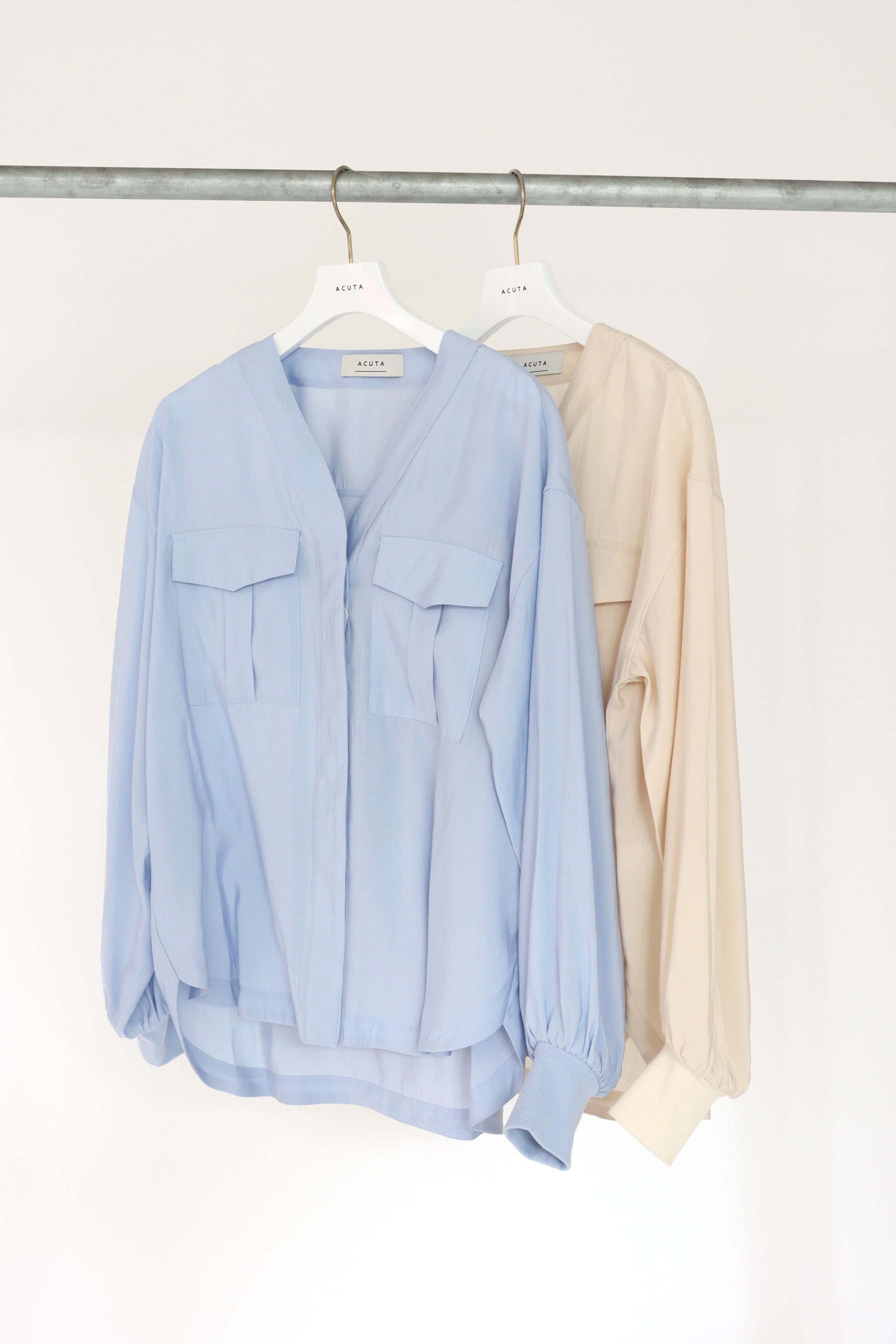 【ACUTA】 ノーカラーブルゾン風シャツ