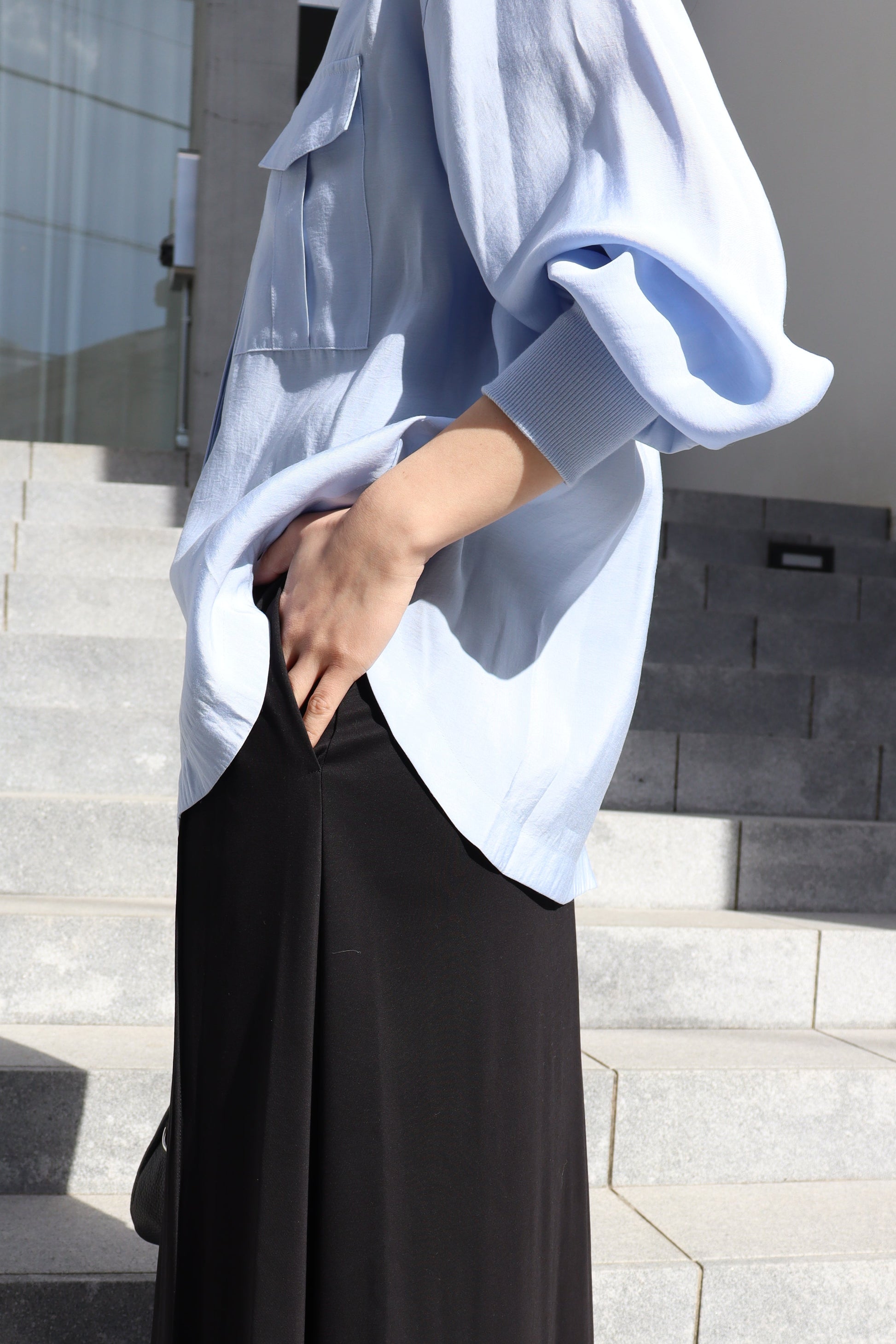 フラップ付きポケットと袖のリブがポイントになっており、パンツにもスカートにも合わせやすい丈感に設定していることでブルゾンライクに羽織っていただけ、使い勝手抜群です◎