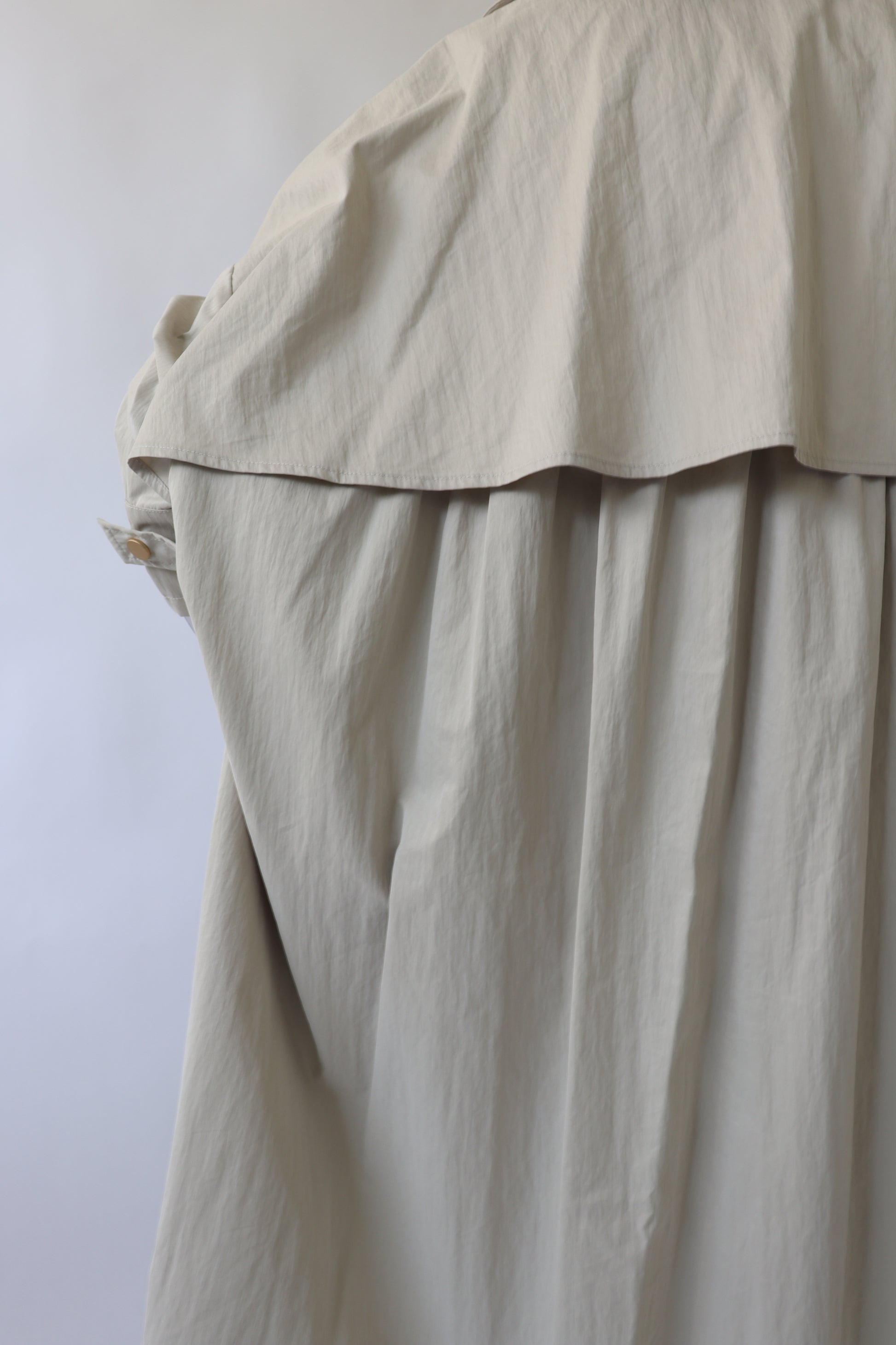 美しく存在感のあるバックスタイルのフレアヨークや繊細なボタン使いが女性らしく、リラックスしたテントシルエットなので、カジュアルにも通勤スタイルにも着ていただけます。