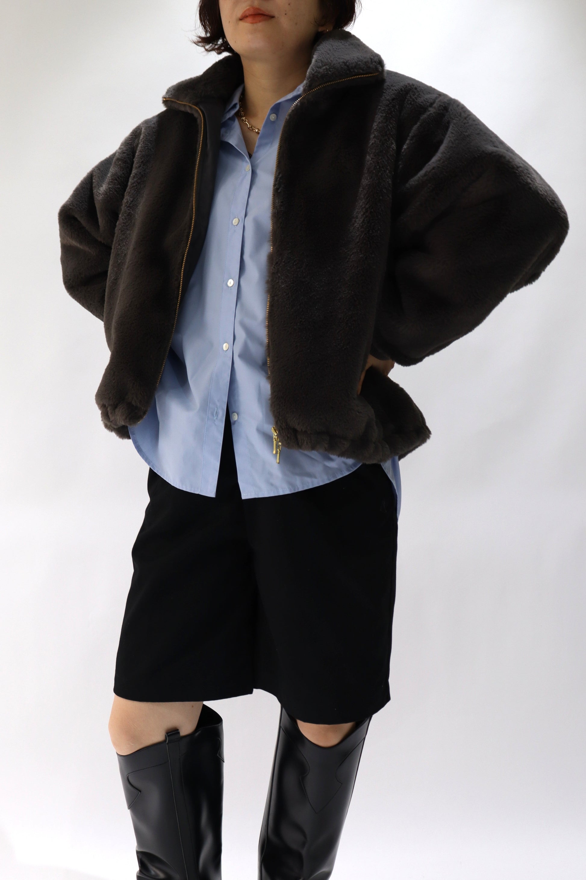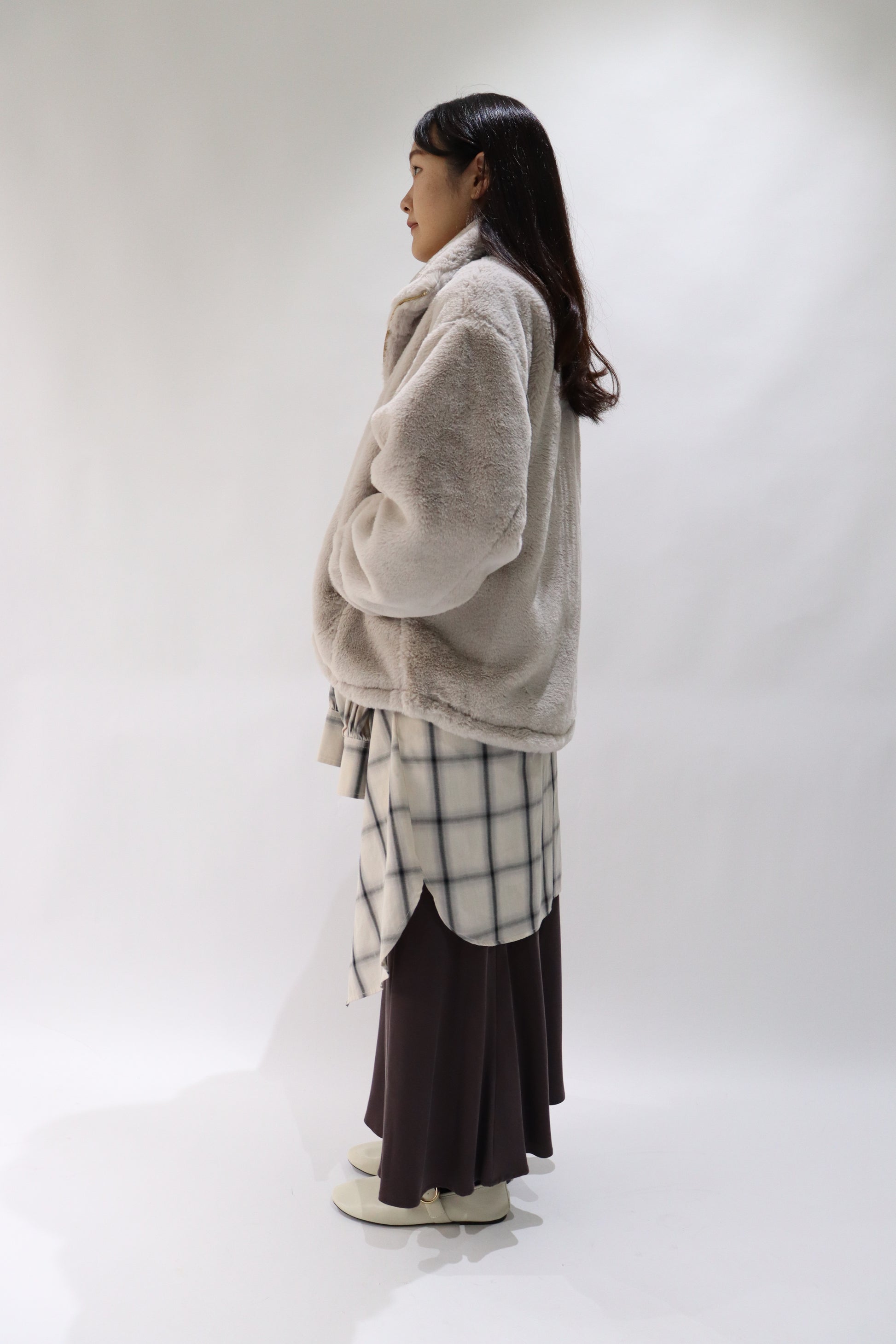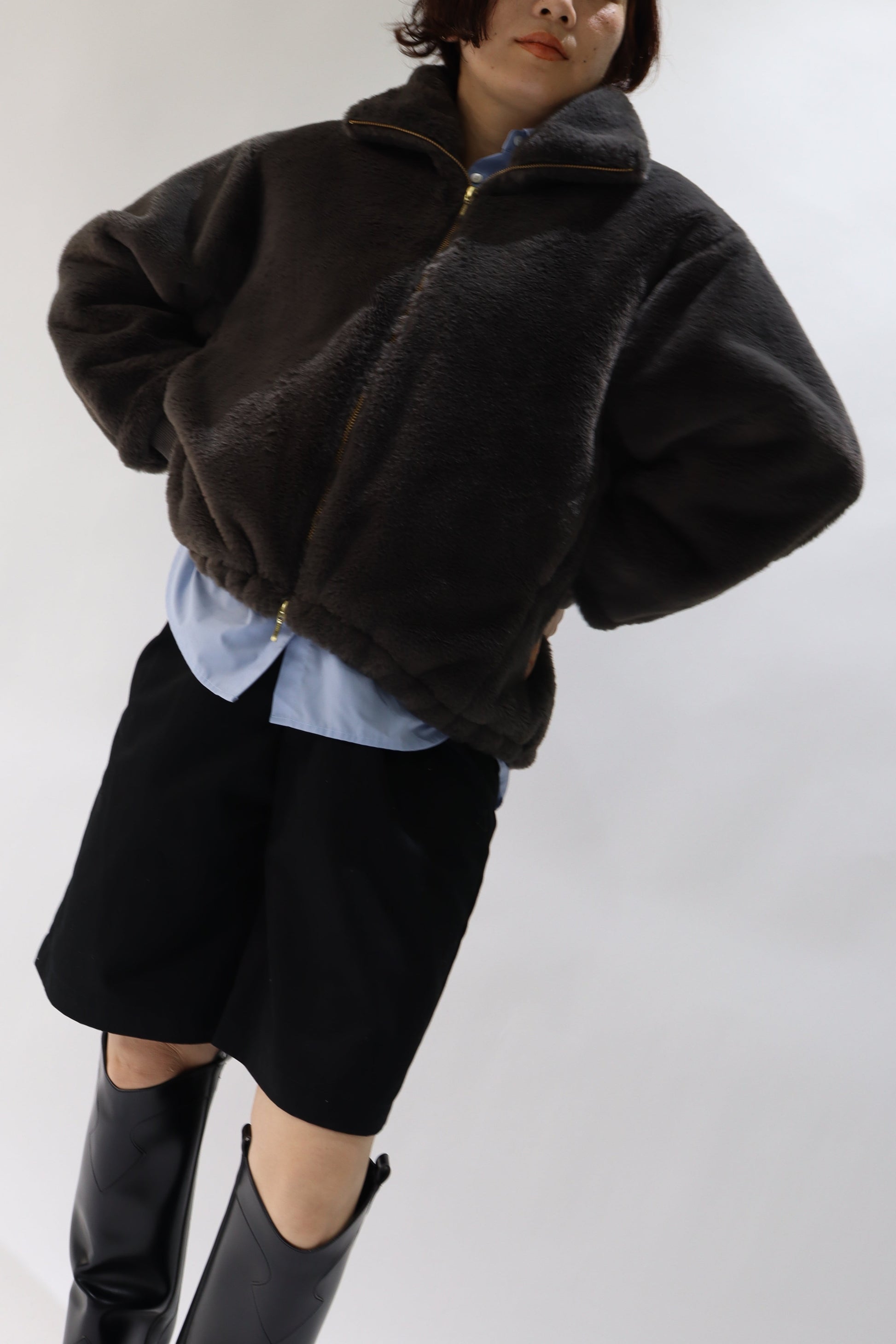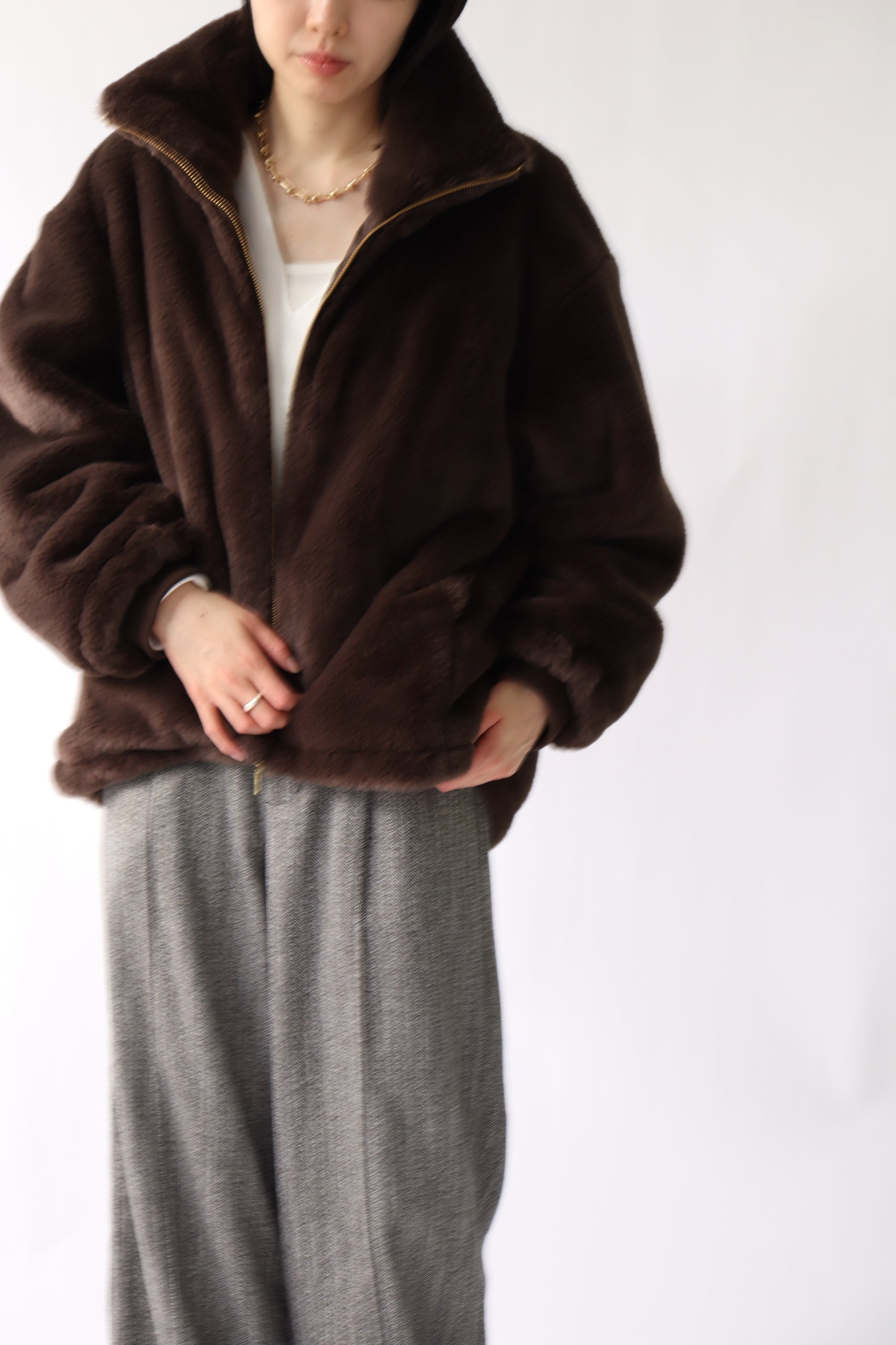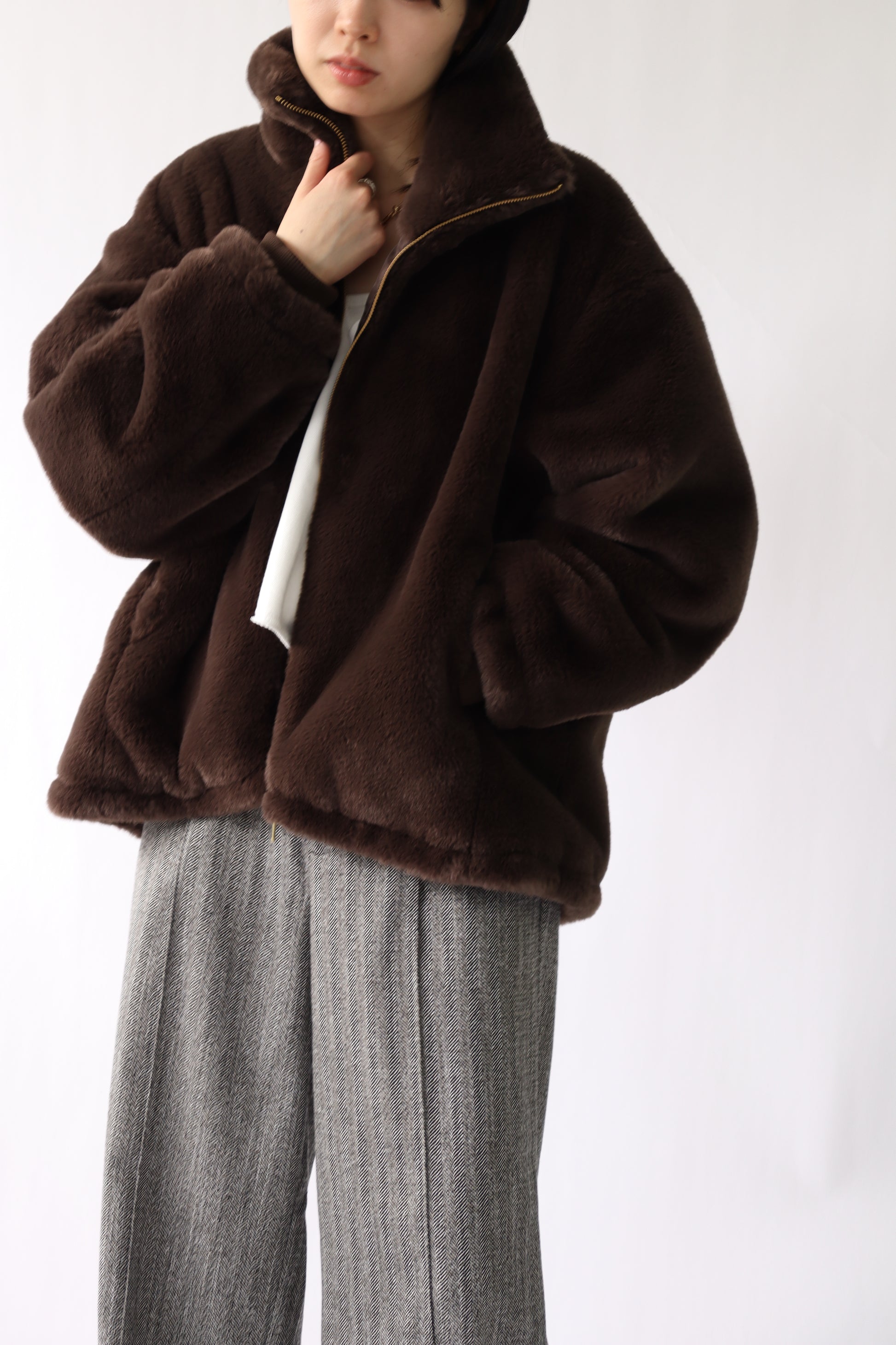 昨年好評を得たフェイクミンクを使用したブルゾンが登場。柔らかい毛並と美しく落ち着きのある光沢感が人気の秘密。インナーを選ばす着ていただけるゆとりのあるサイズ感ですが、裾紐でシルエットを調整できるので、着膨れし過ぎず暖かさも実現。繊細なファスナーチャームが高級感と女性らしさを演出してくれます。