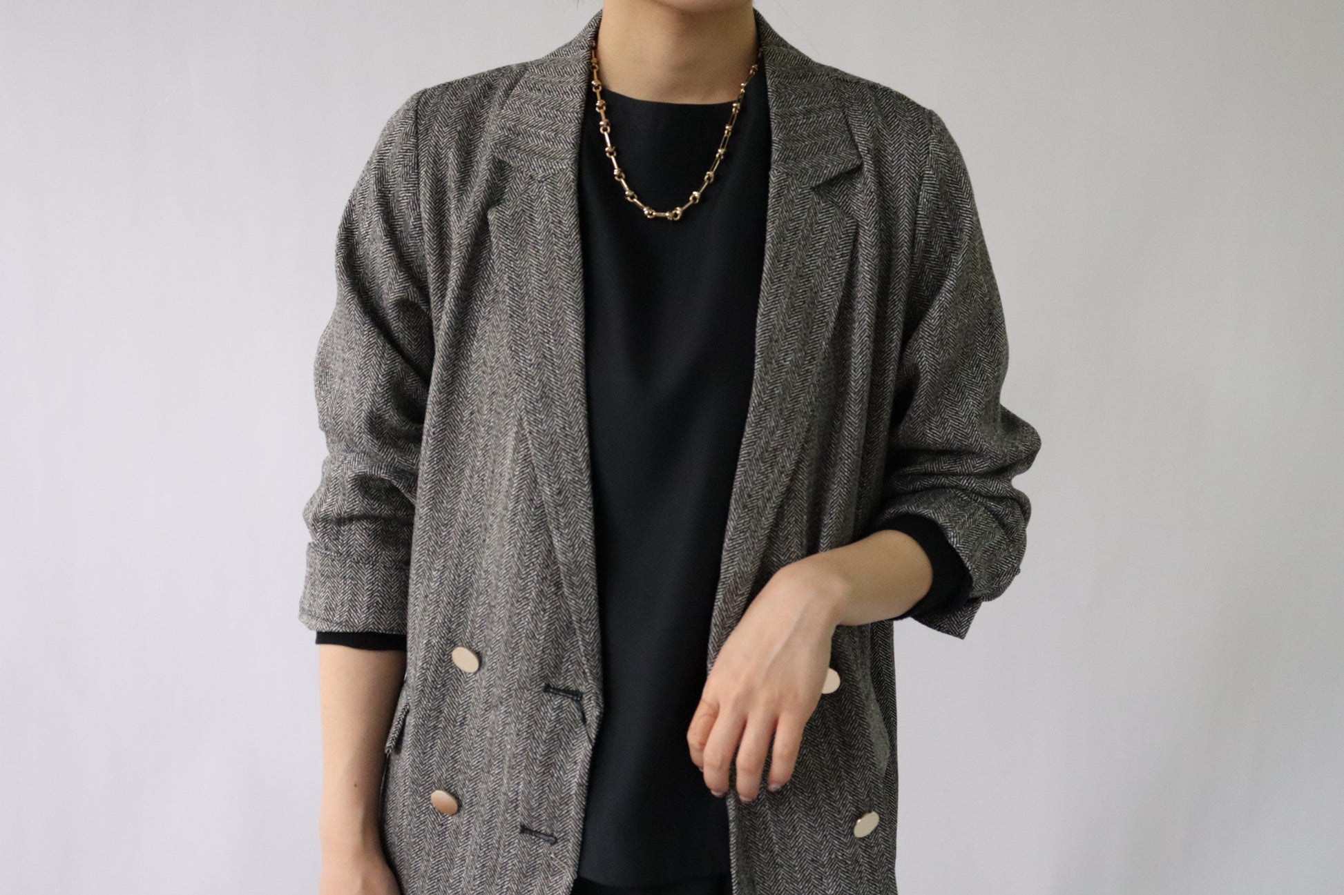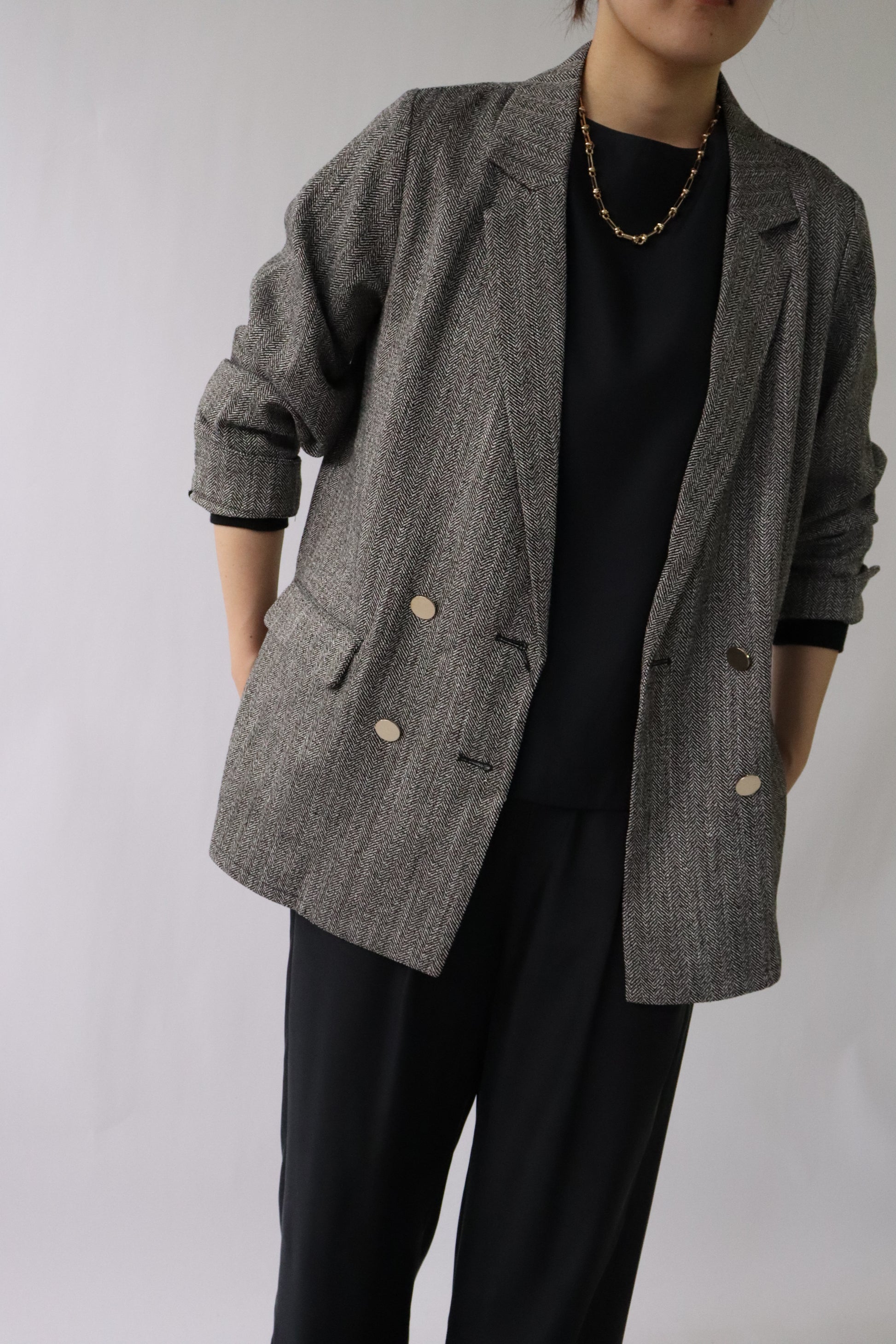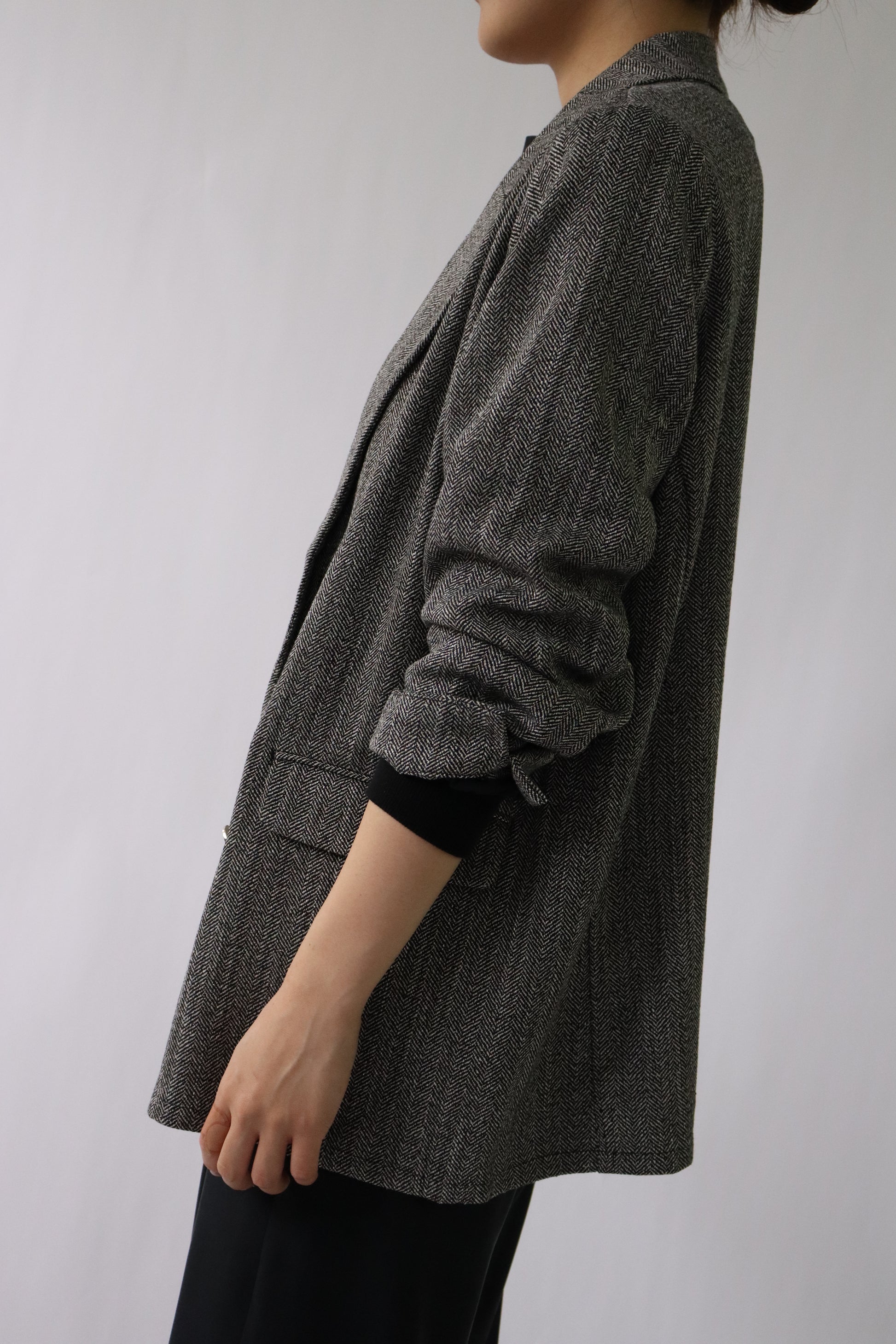 ヘリンボーン素材を使用した、ラフなテーラードジャケット。