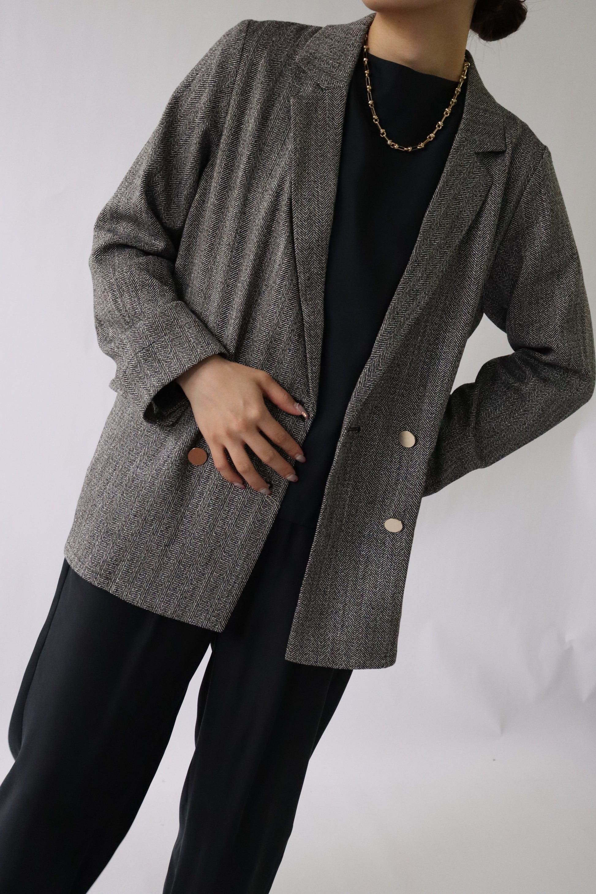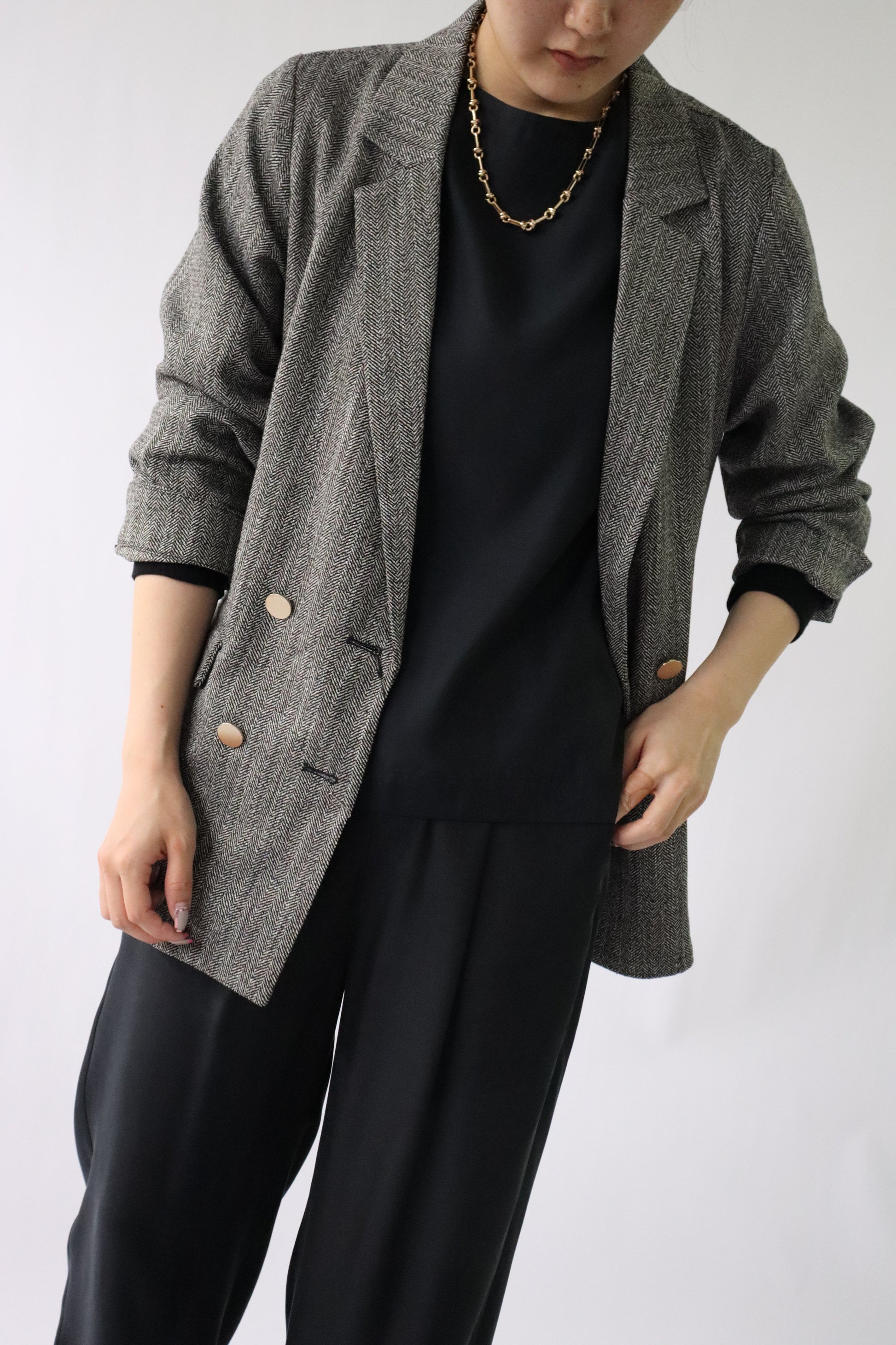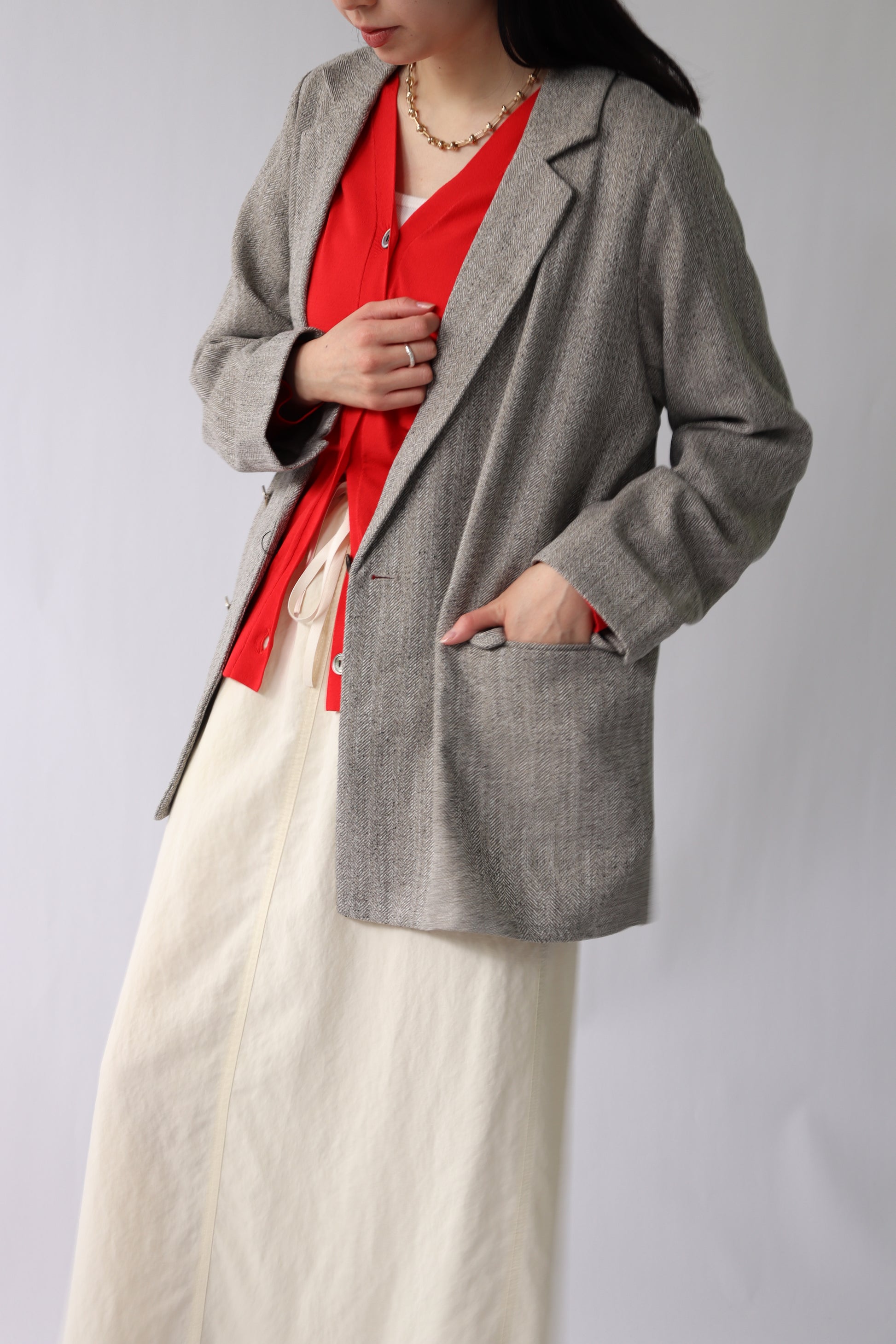ヘリンボーン素材を使用した、ラフなテーラードジャケット。