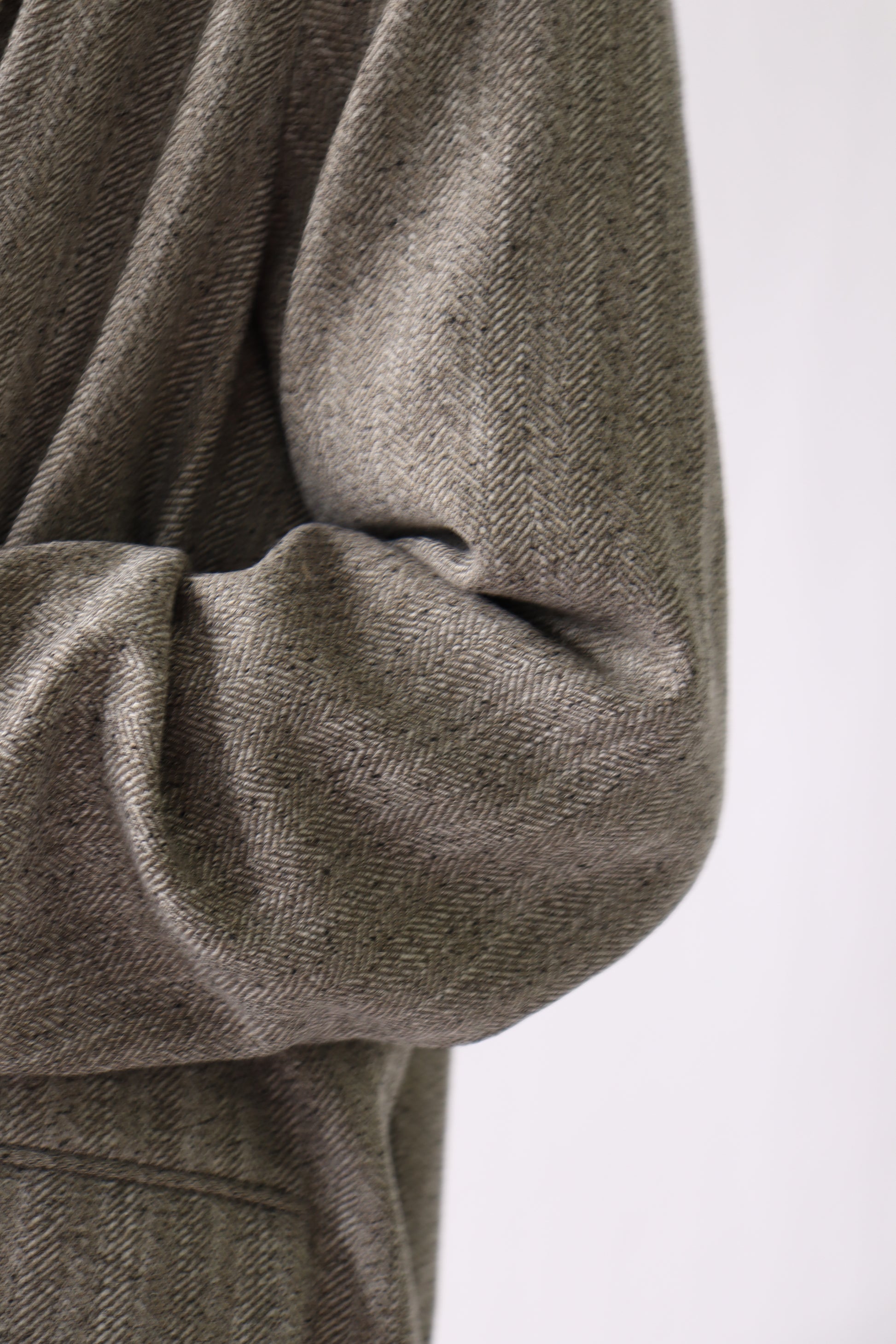 ゆったりとしたサイズ感で中にミドルゲージのニットなども着れるので、晩夏から冬までシーズン通して長く着用いただけます。