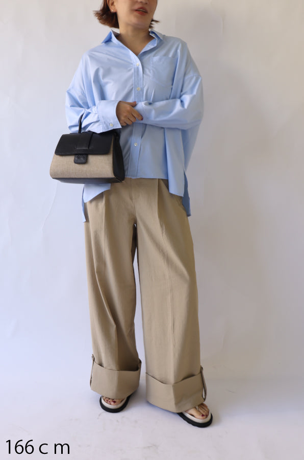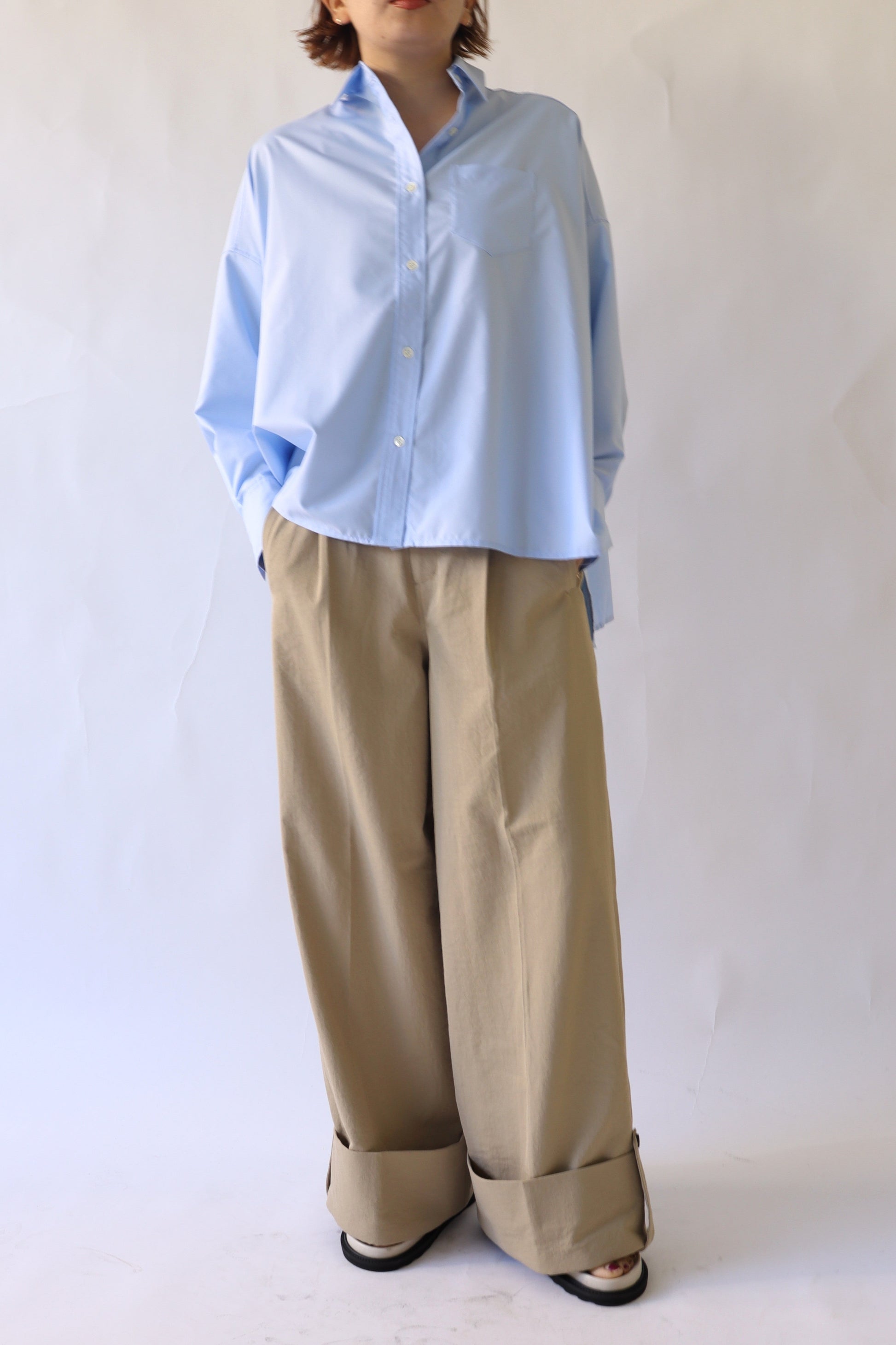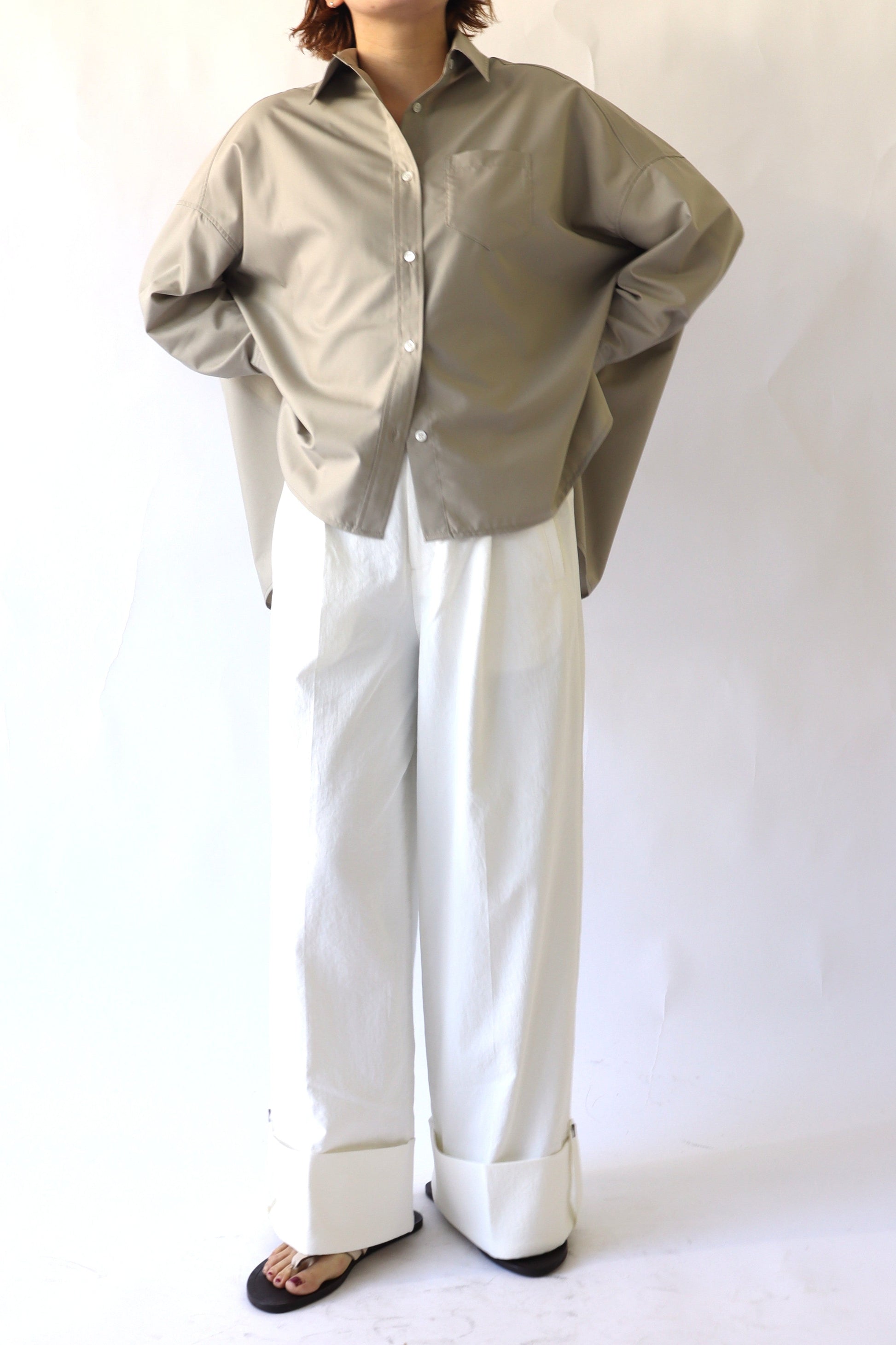 素材は程よい落ち感と綺麗めな表面感が女性らしく、肌あたりが柔らかで適度に肌離れもするので暑い季節まで着ていただけます。