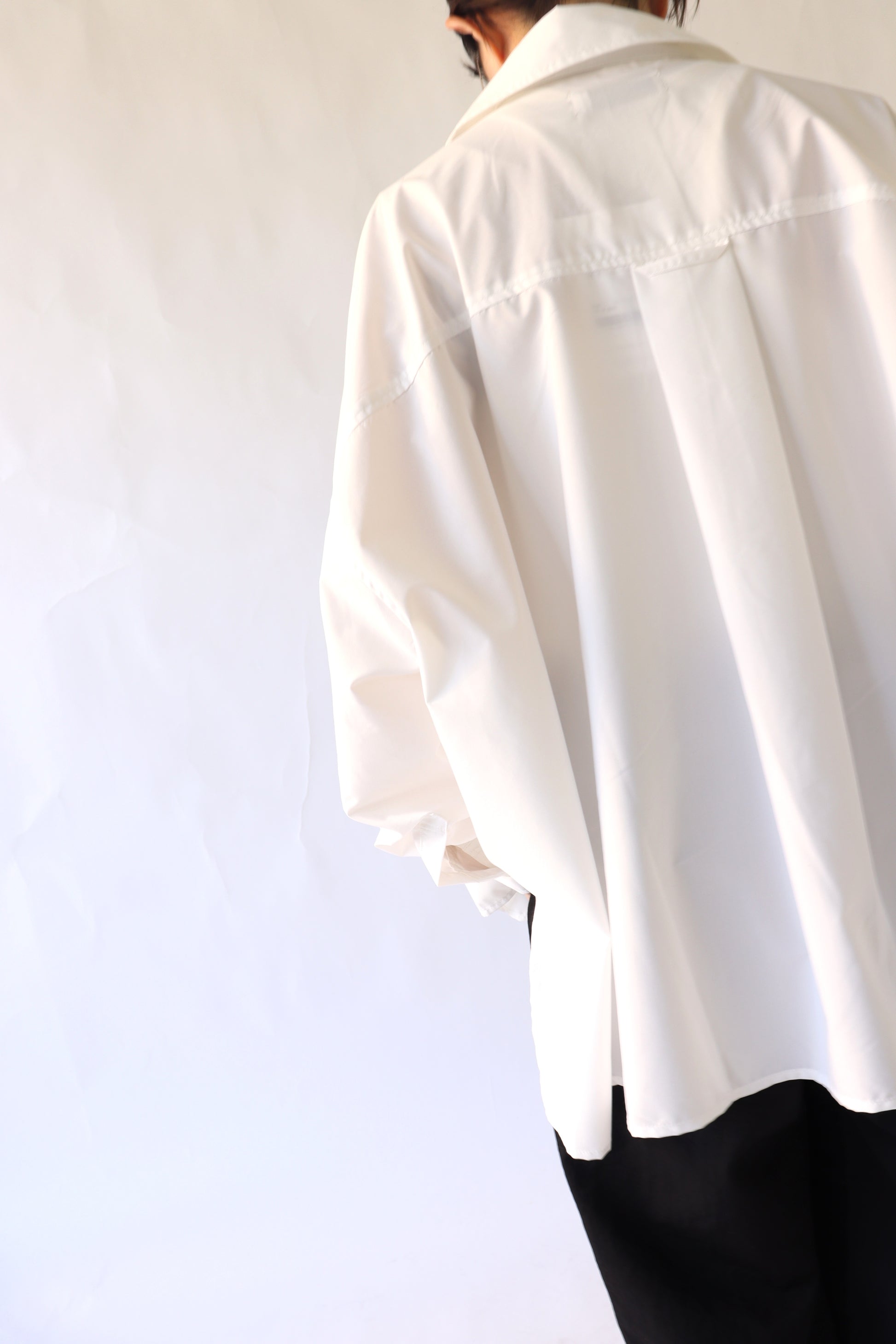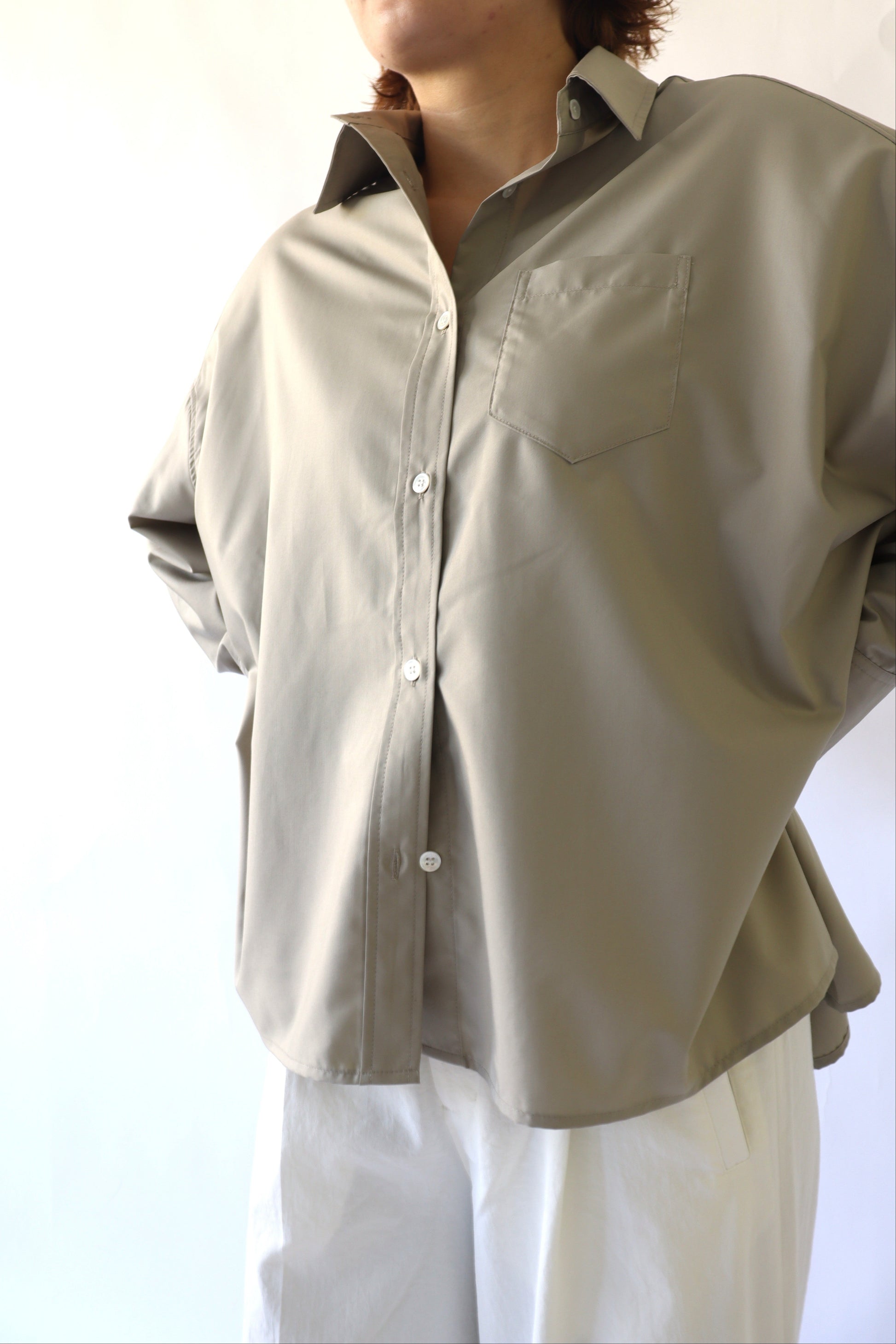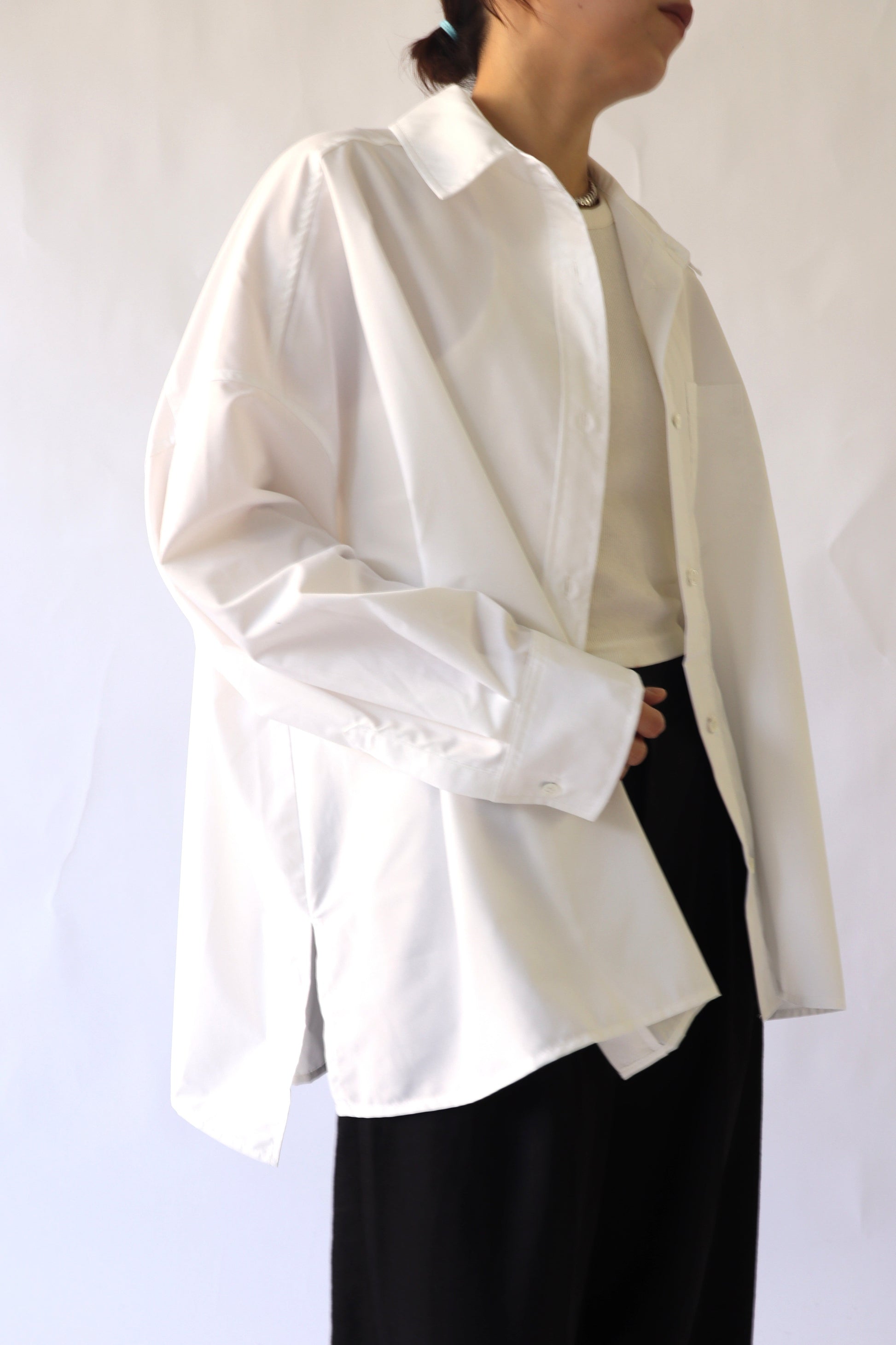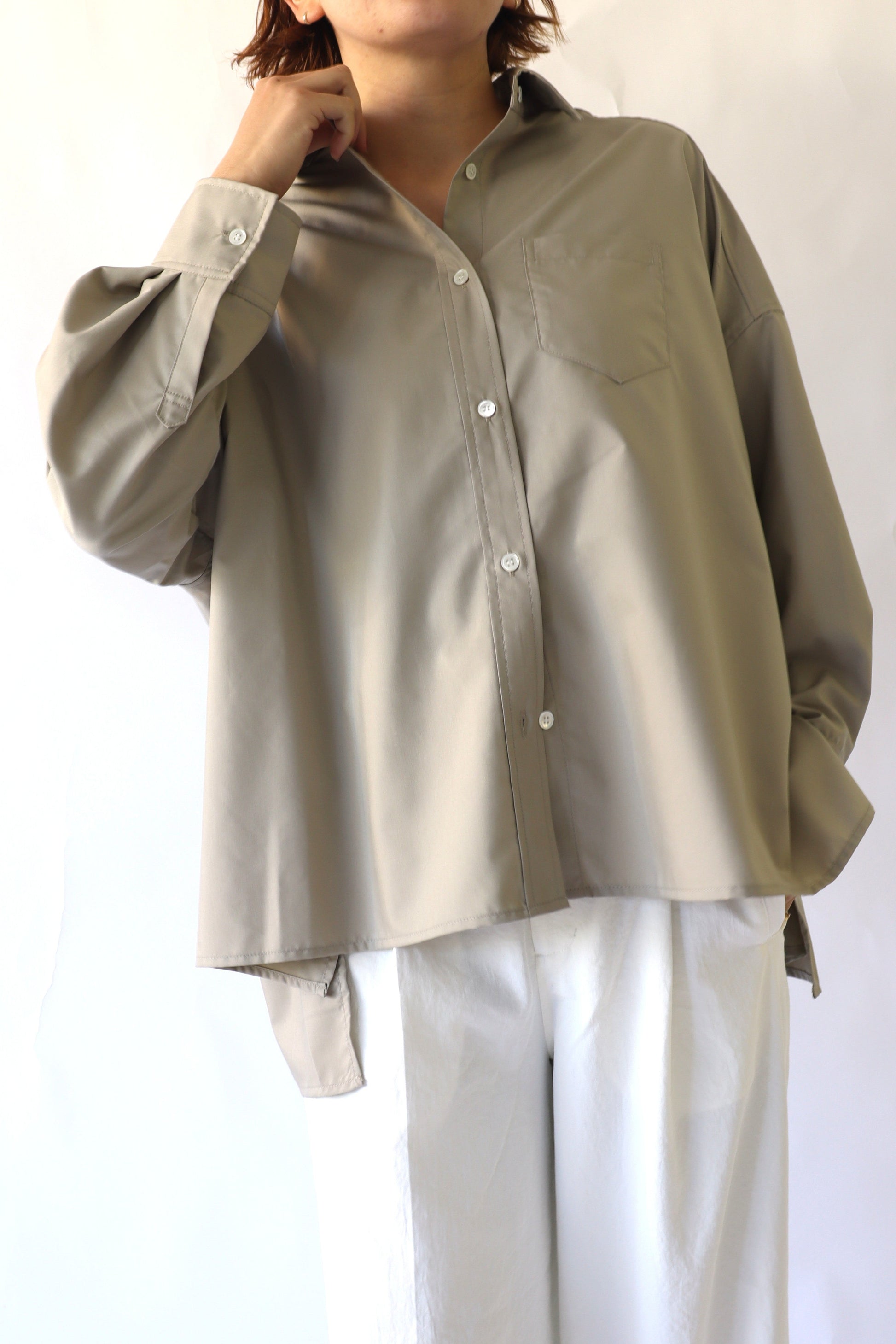 たっぷりの分量感が可愛いオーバーサイズのポンチョ風シャツ。立体感のあるシルエットで、羽織りとしても1枚でも着映えします。前後差のある着丈で、スカートにもパンツにも合わせやすいアイテムです。