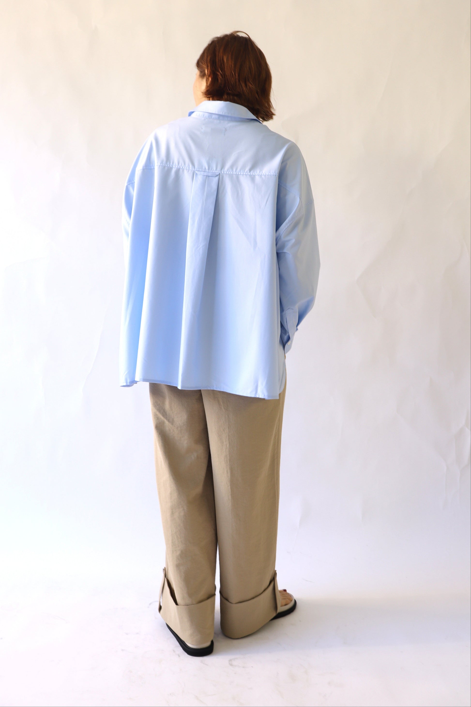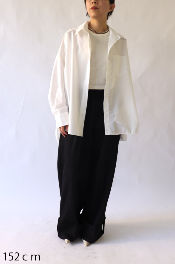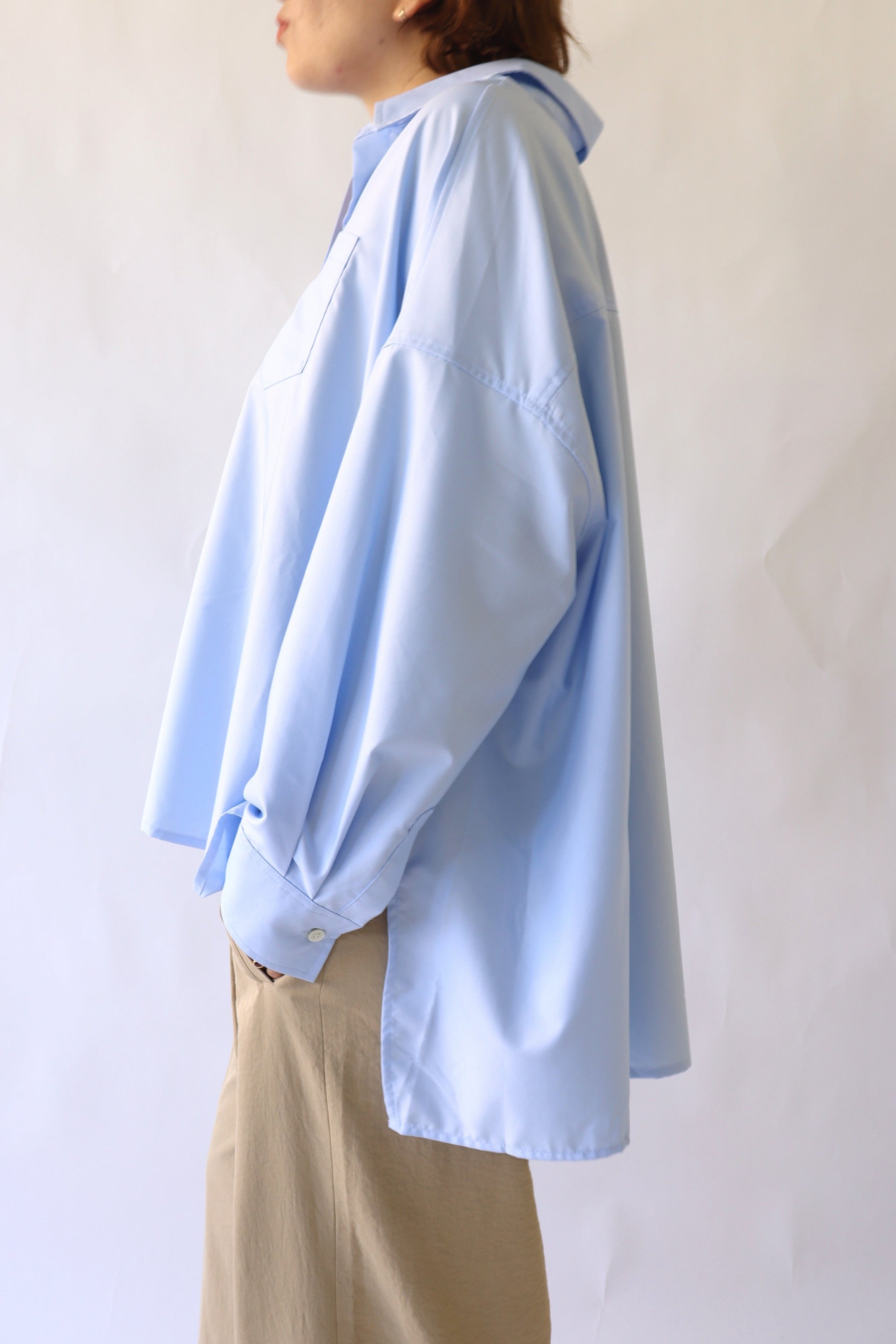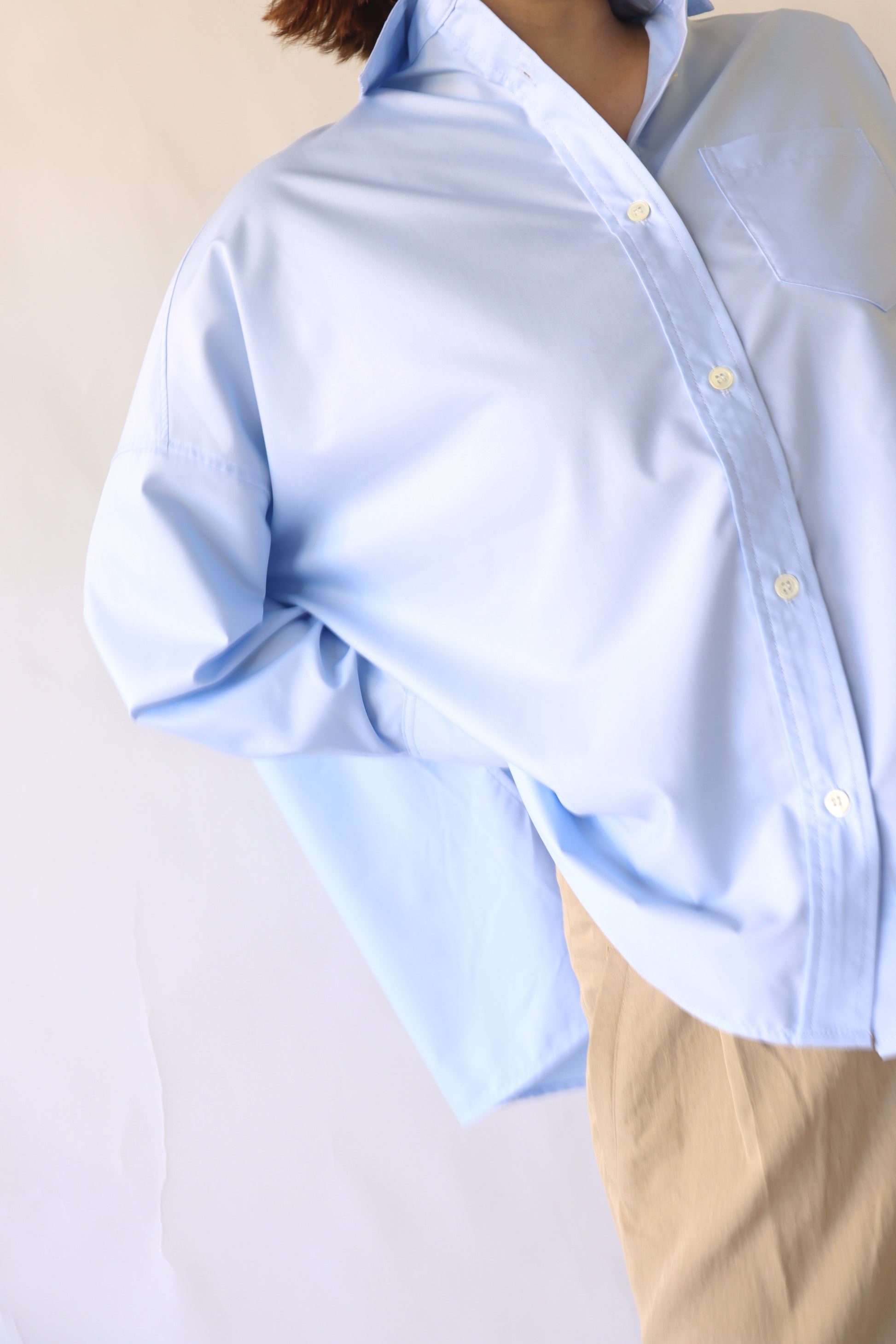 たっぷりの分量感が可愛いオーバーサイズのポンチョ風シャツ。立体感のあるシルエットで、羽織りとしても1枚でも着映えします。前後差のある着丈で、スカートにもパンツにも合わせやすいアイテムです。