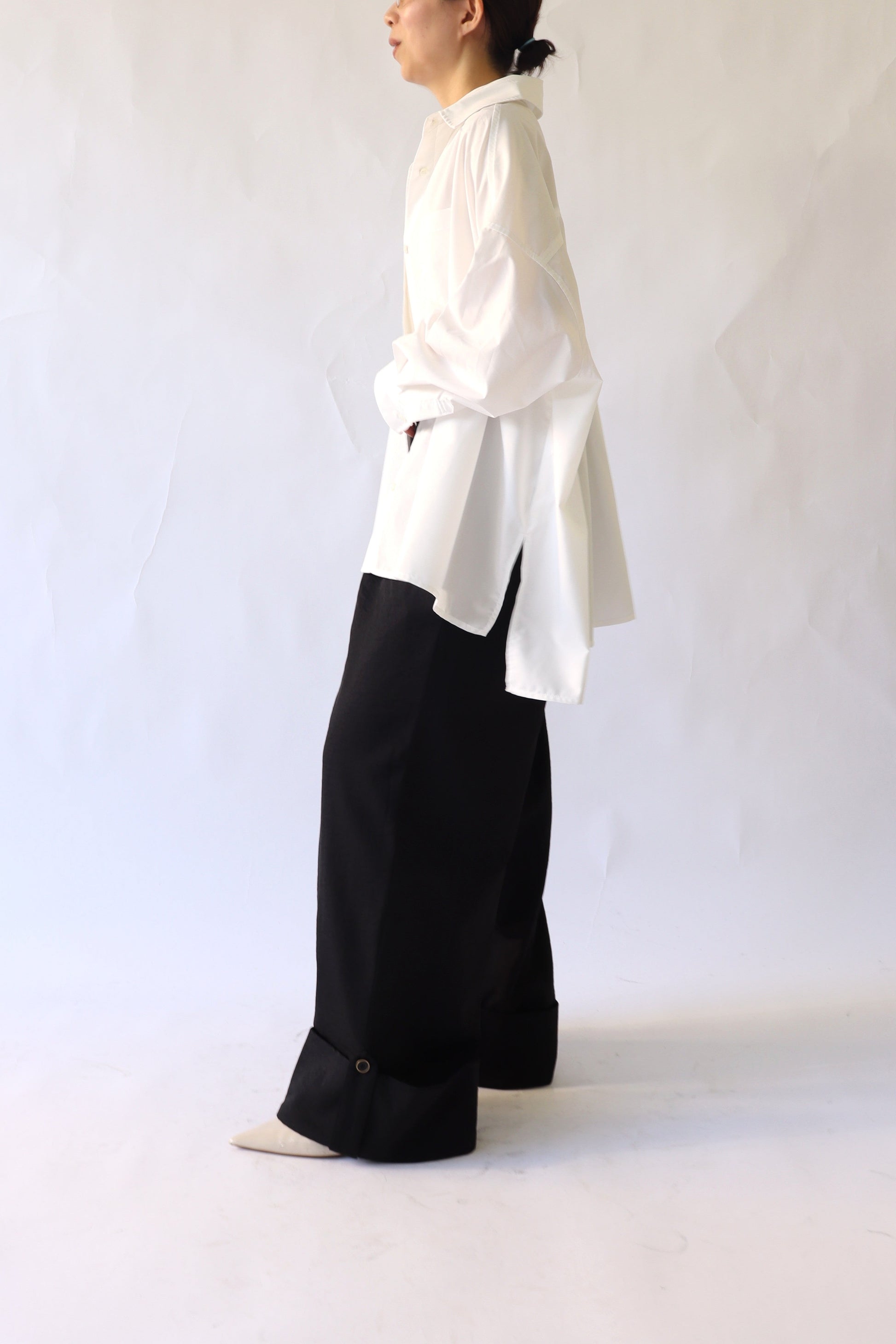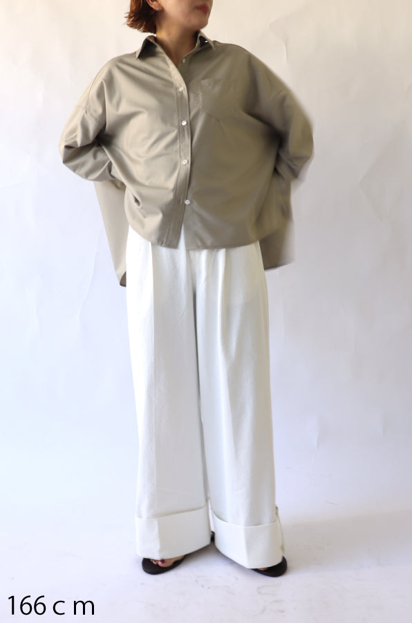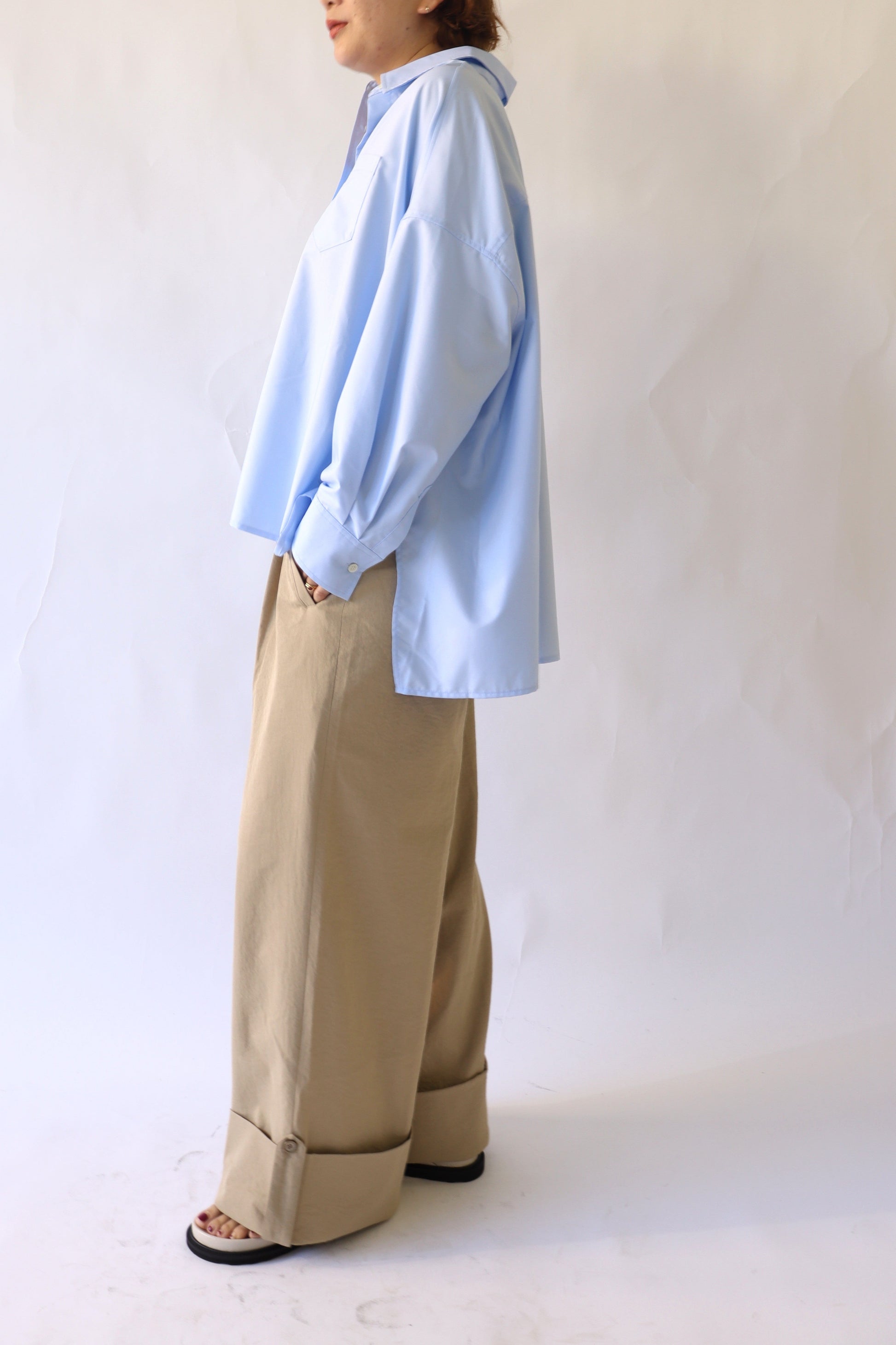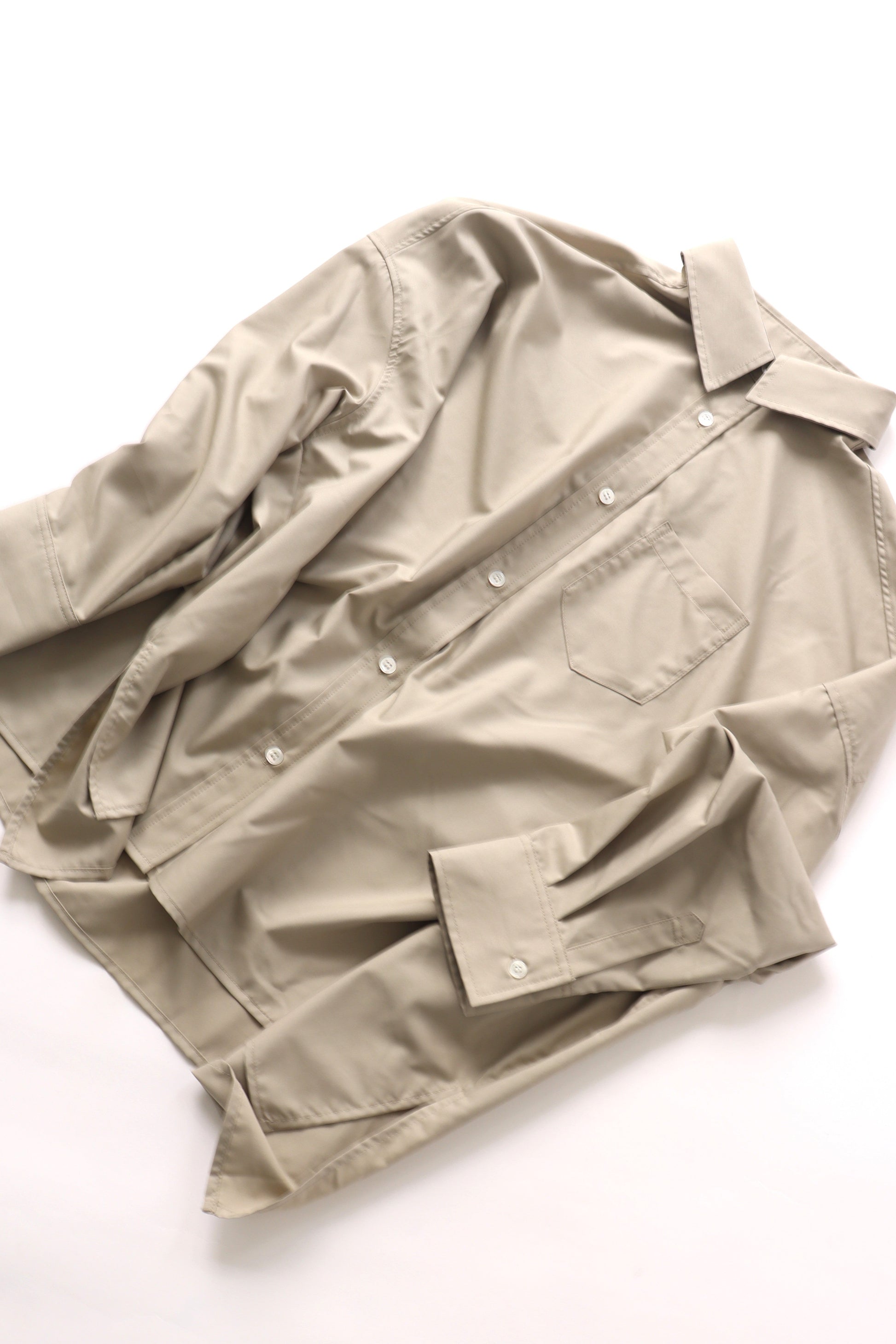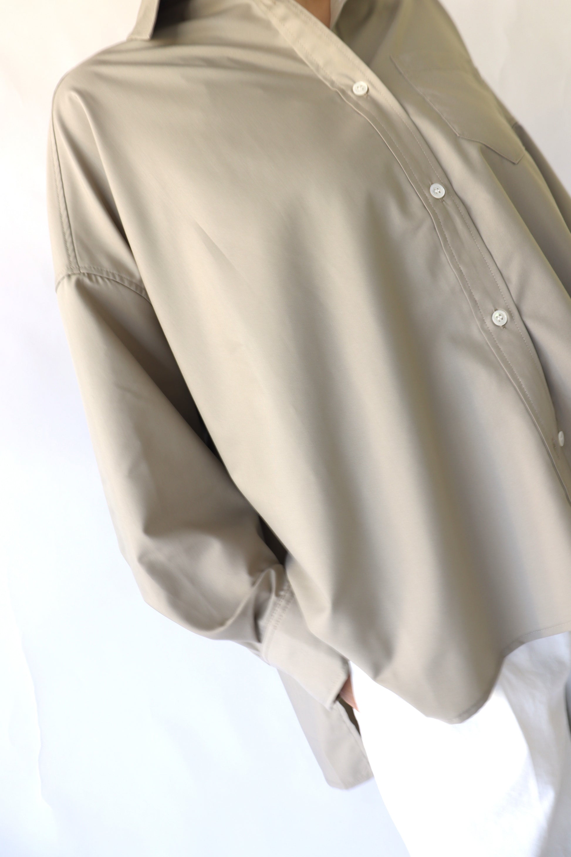 たっぷりの分量感が可愛いオーバーサイズのポンチョ風シャツ。立体感のあるシルエットで、羽織りとしても1枚でも着映えします。前後差のある着丈で、スカートにもパンツにも合わせやすいアイテムです。