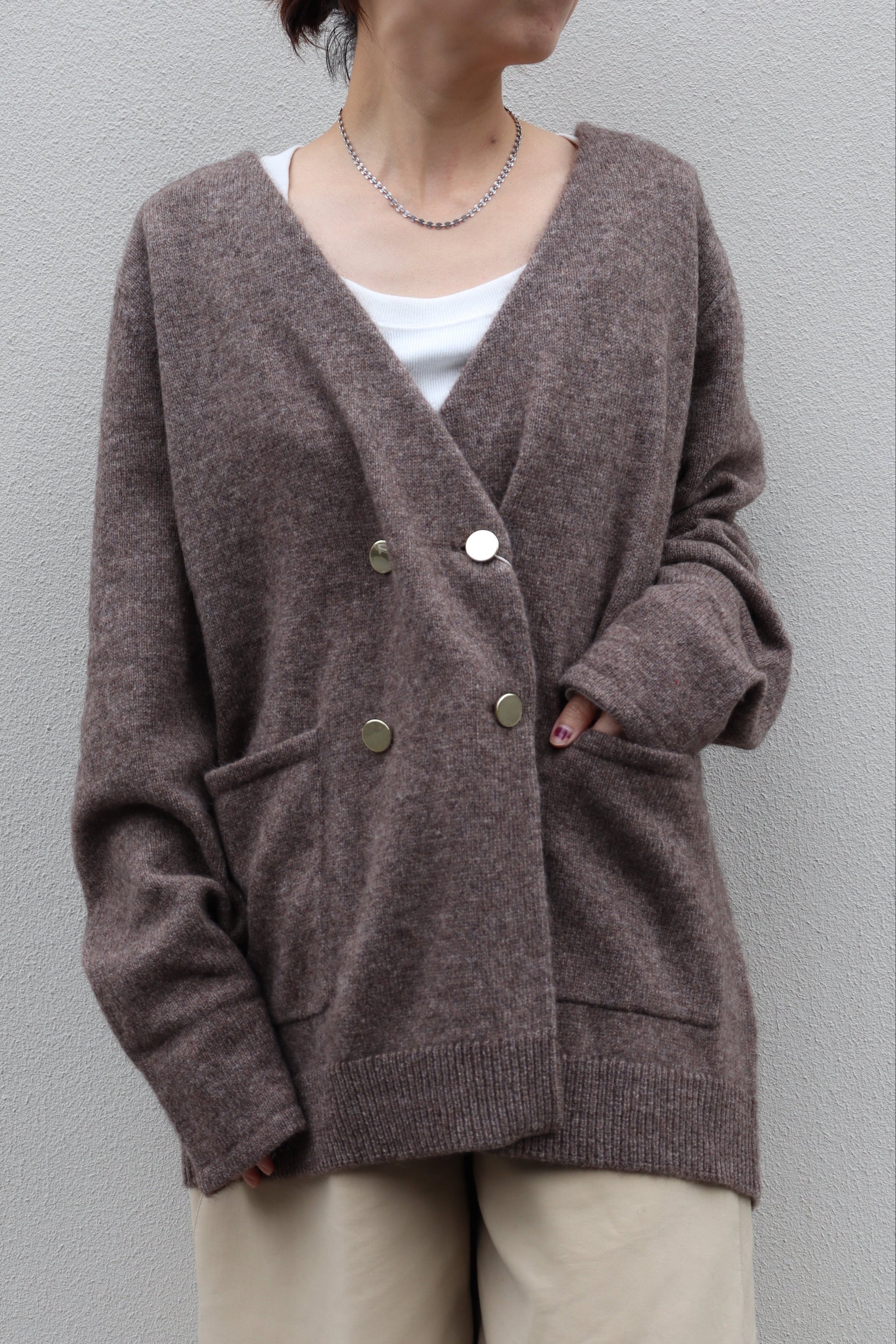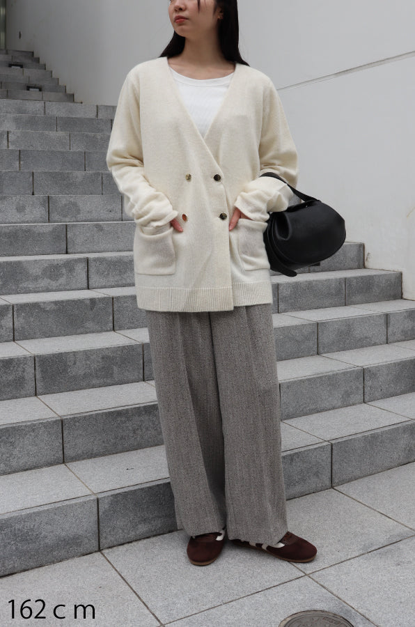 保温性、軽さ、柔らかさに優れたヤクをブレンドしたニットジャケットが登場。ジャケットのきちんと感もありつつ、カーディガンとしても着ていただけるデザインで、大人っぽさと女性らしさを兼ね備えたアイテムです。腰回りが隠れる丈なので、様々な骨格タイプの方に着ていただけます。