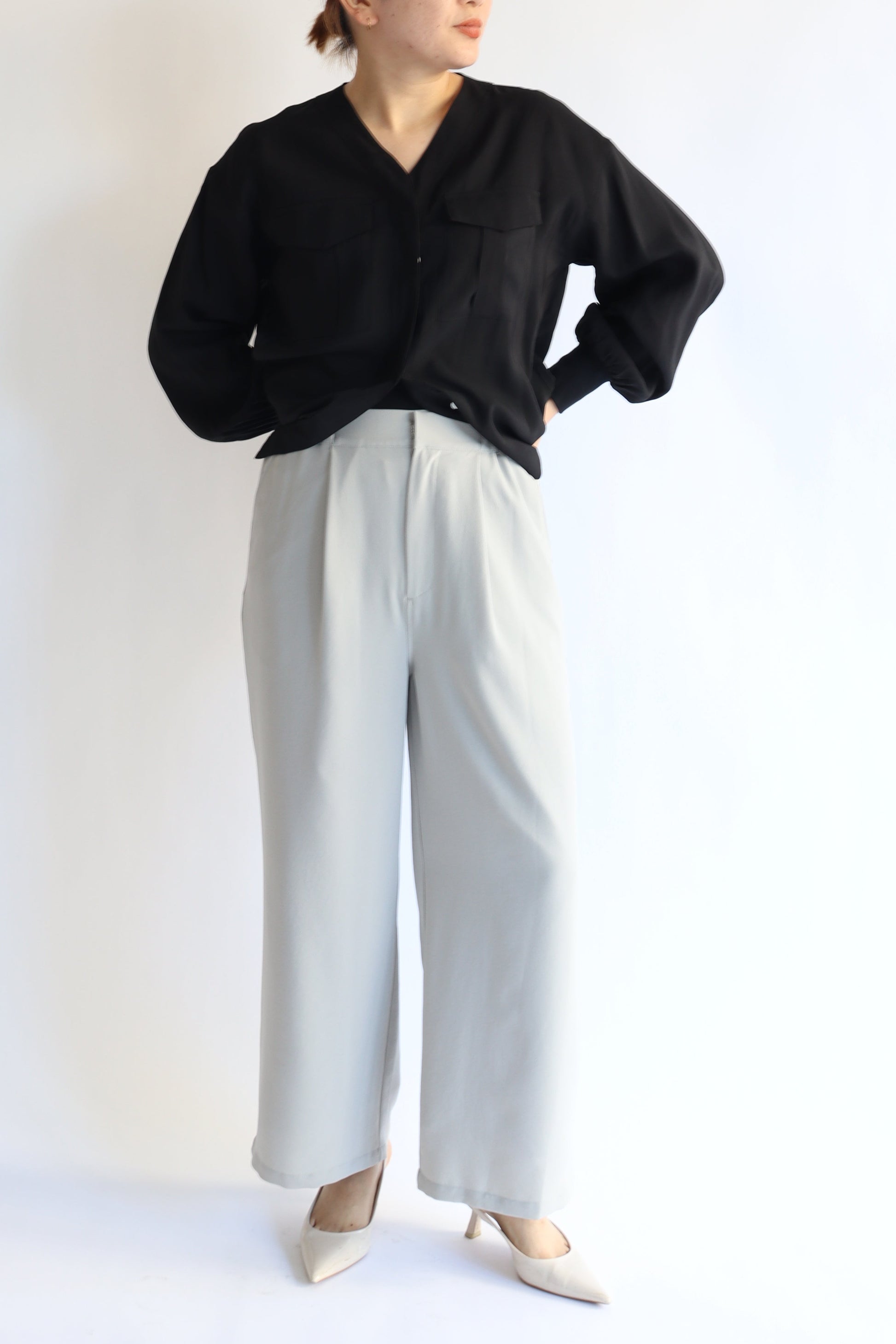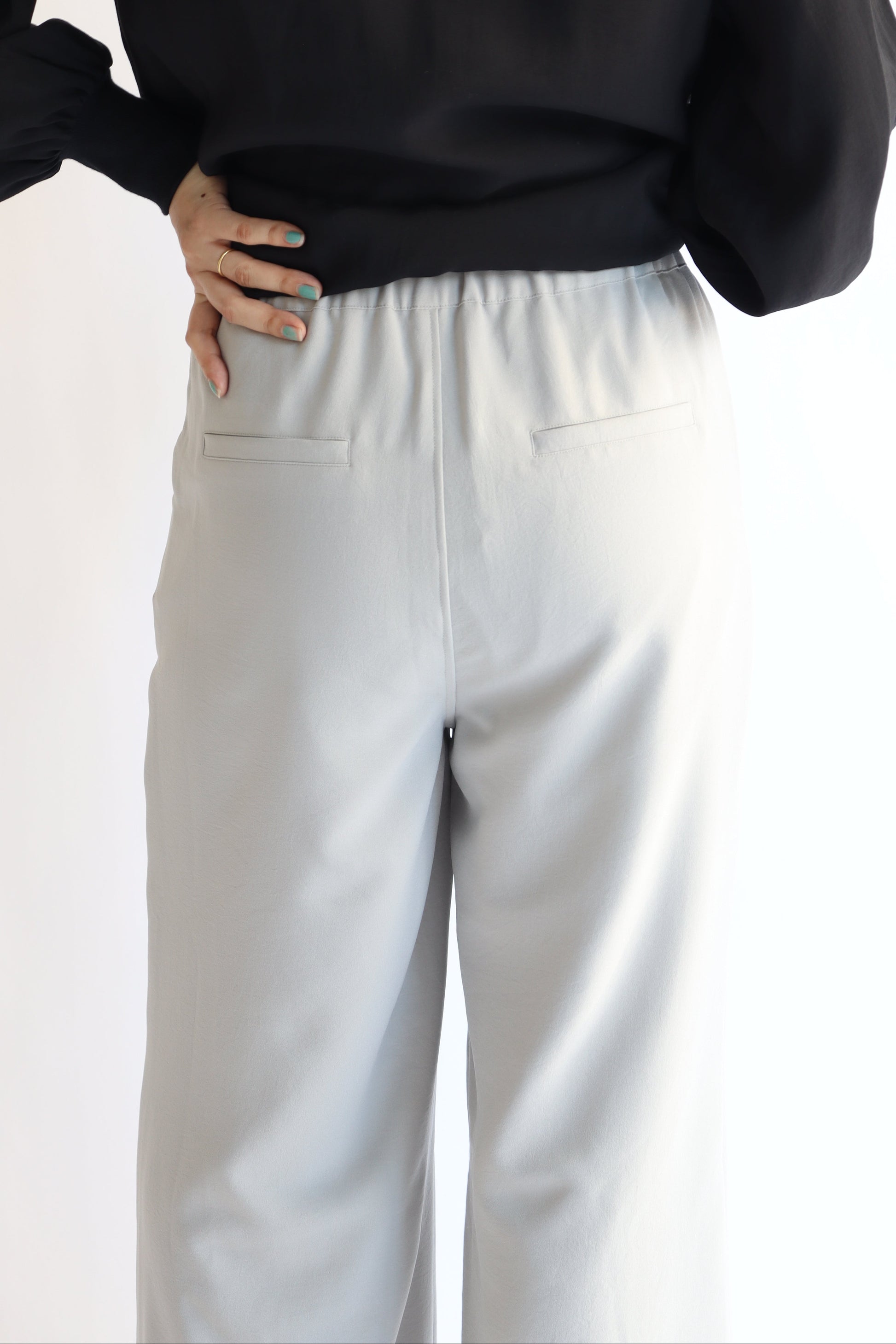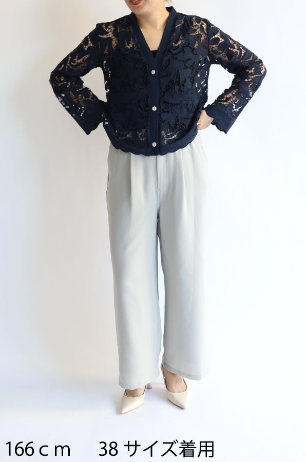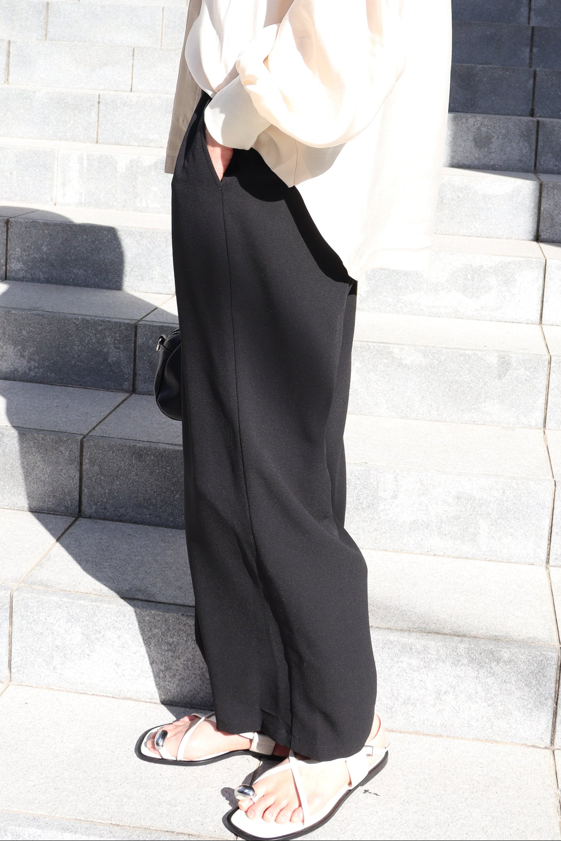 タックによる程よい分量感と、ウエストのゴムギャザーの範囲が広めなので着心地は楽チン。でもフロントがファスナーあき仕様なので、イージーになり過ぎずきちんと感も出せるのが嬉しいアイテムです。