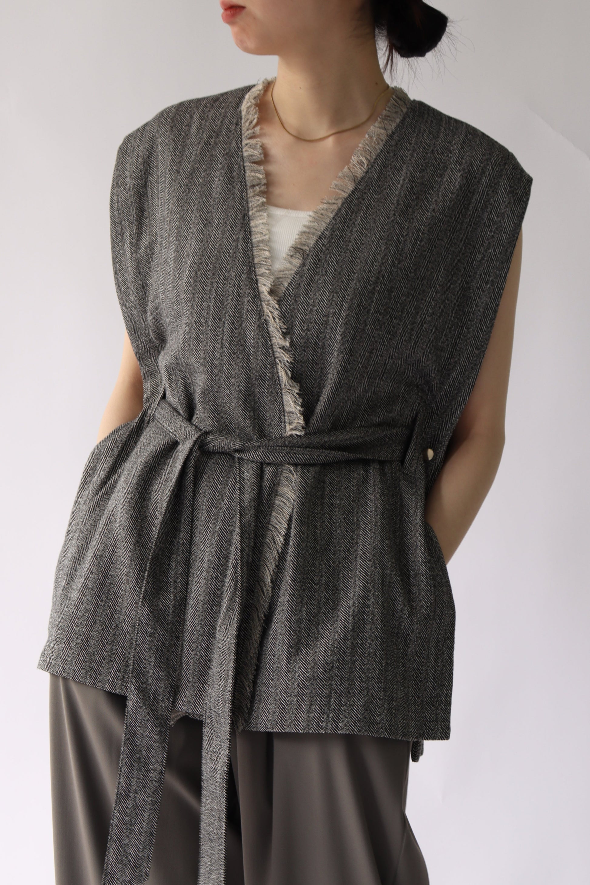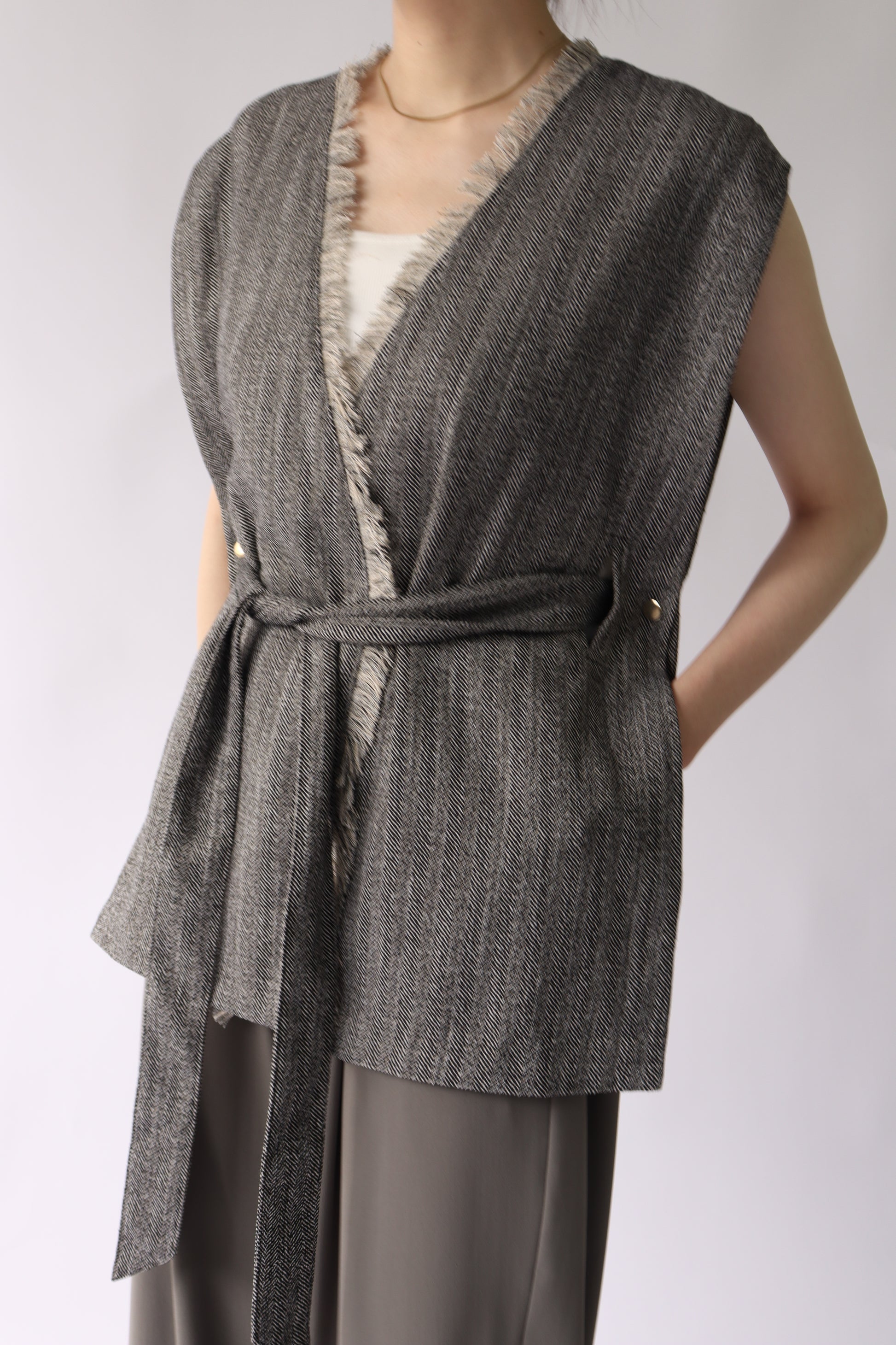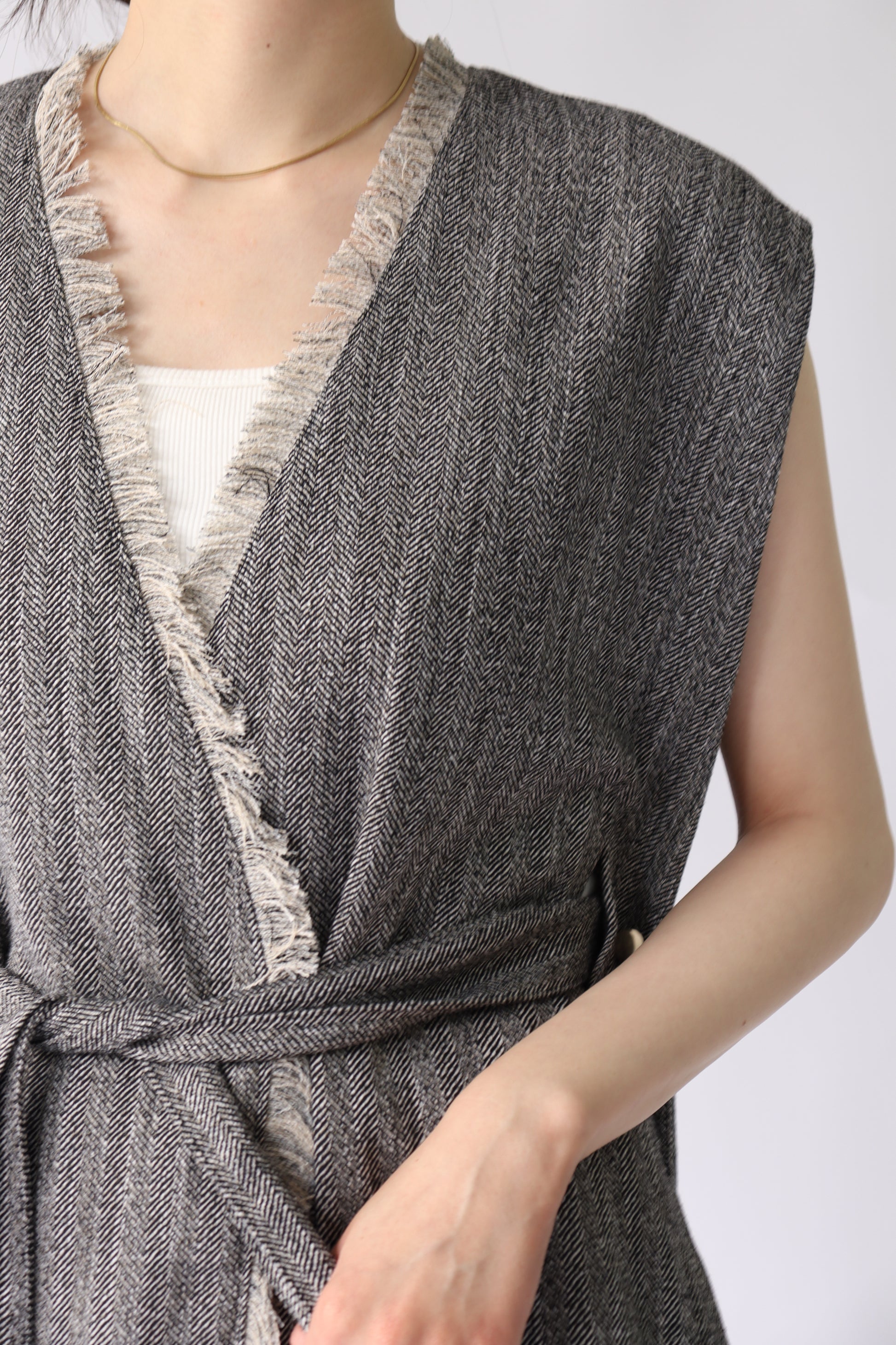 フロントはボタンなどは付けず前端のフリンジが際立つデザイン。