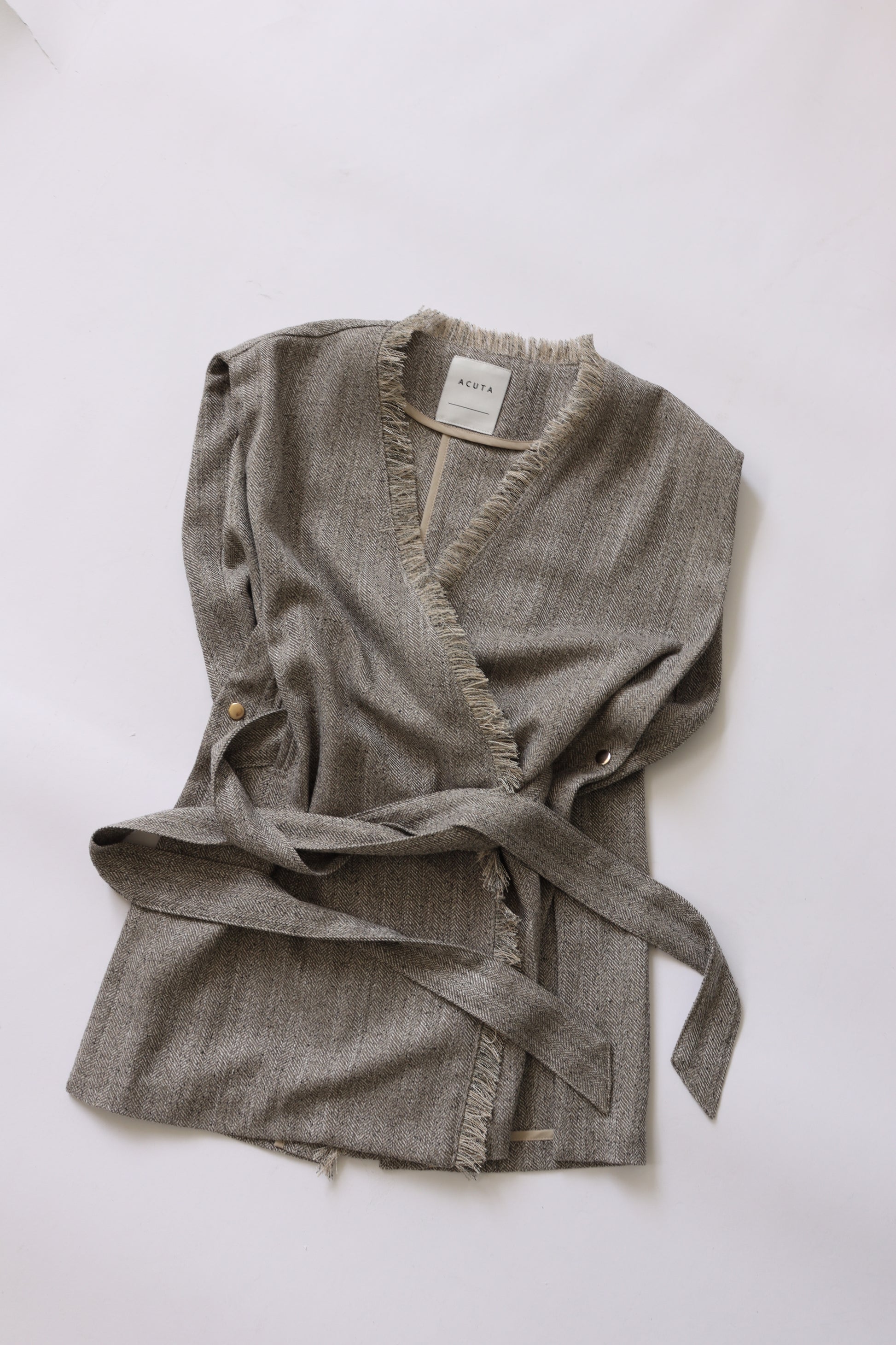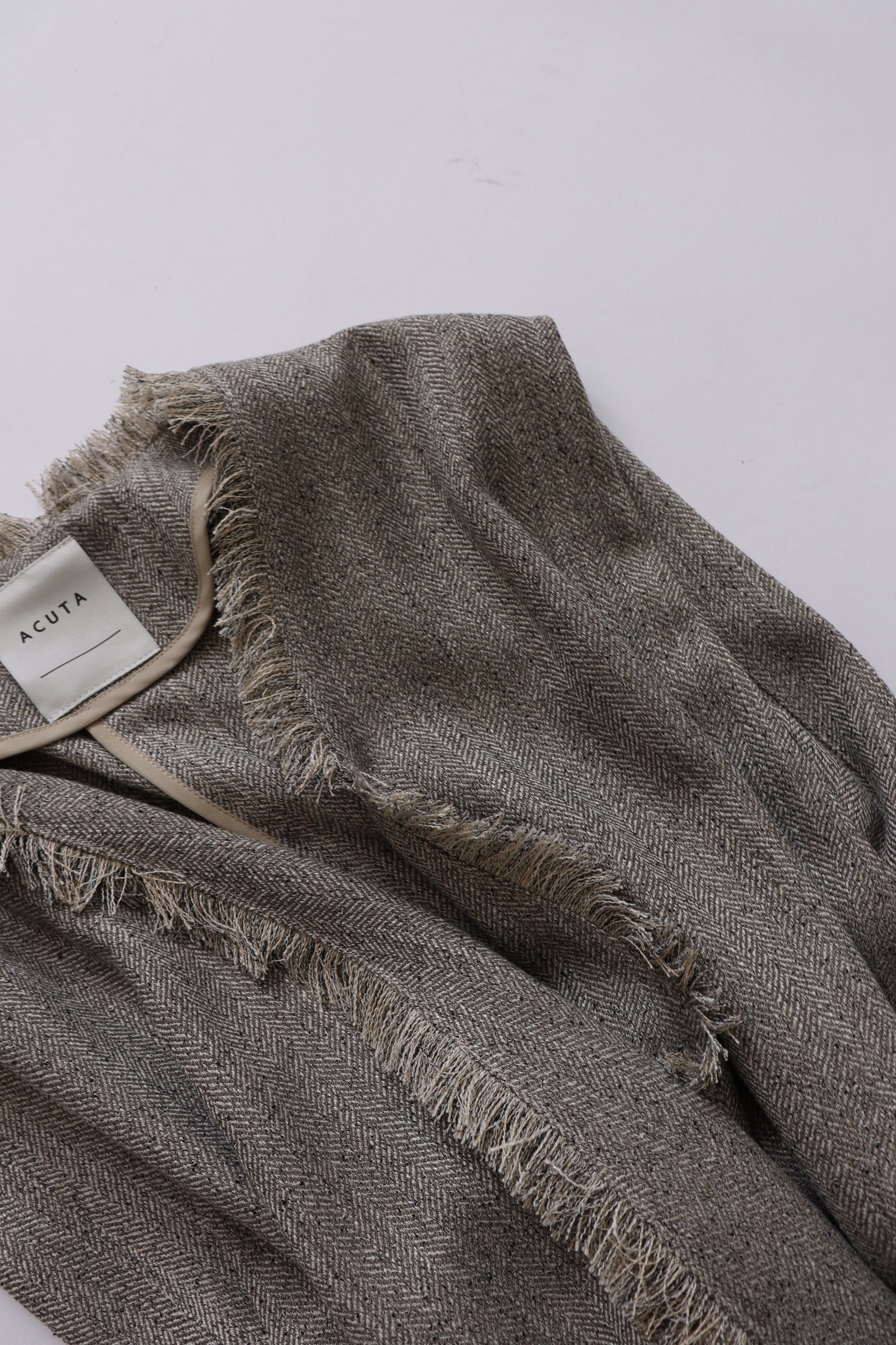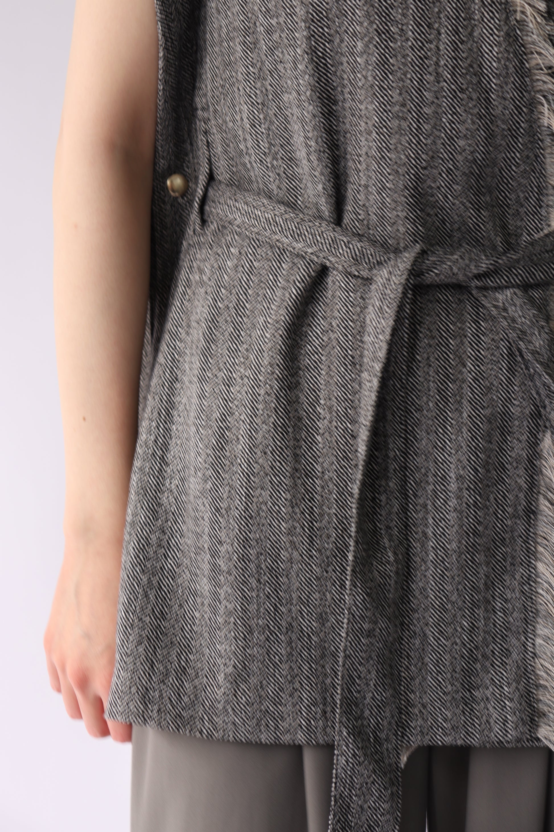 フロントはボタンなどは付けず前端のフリンジが際立つデザイン。