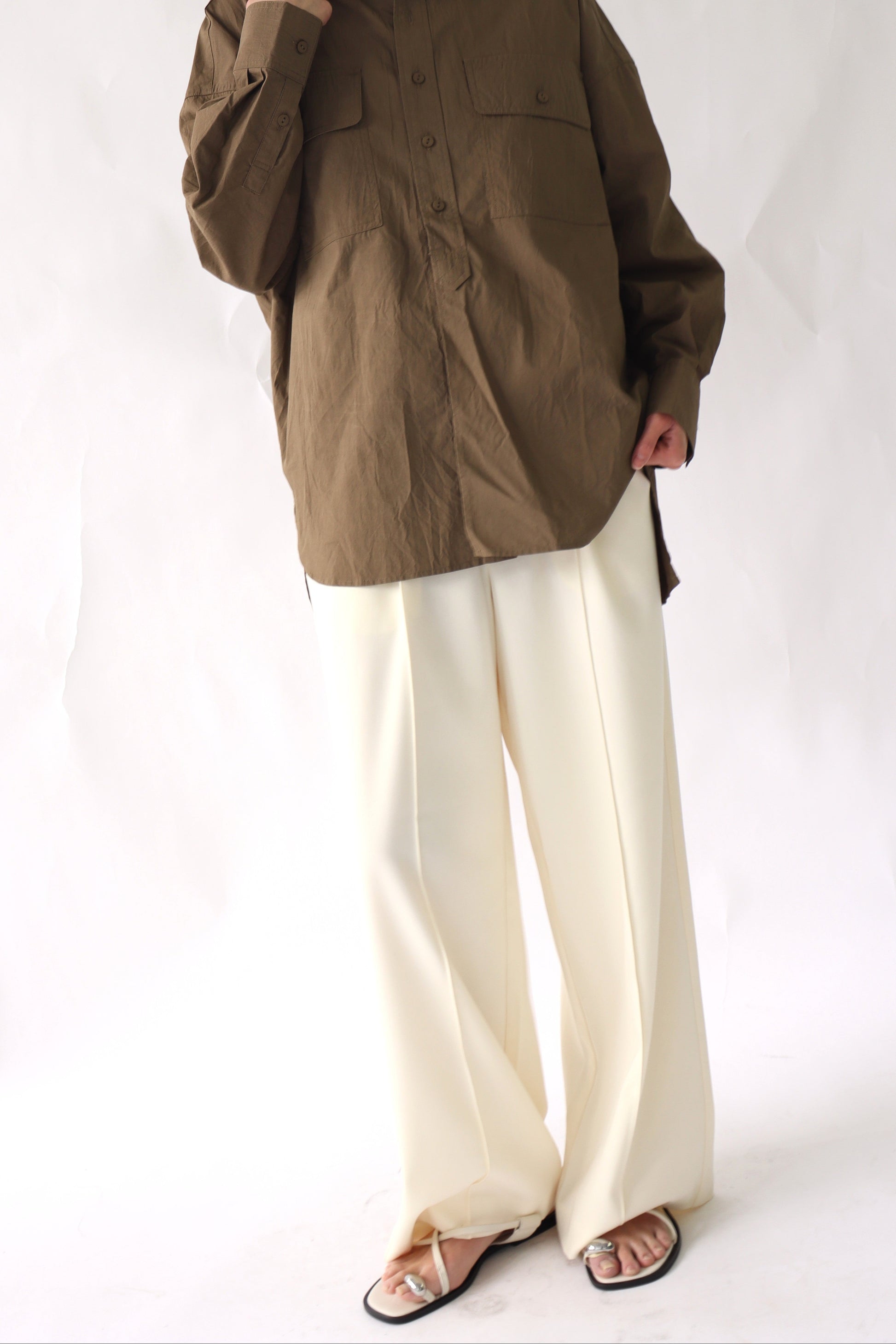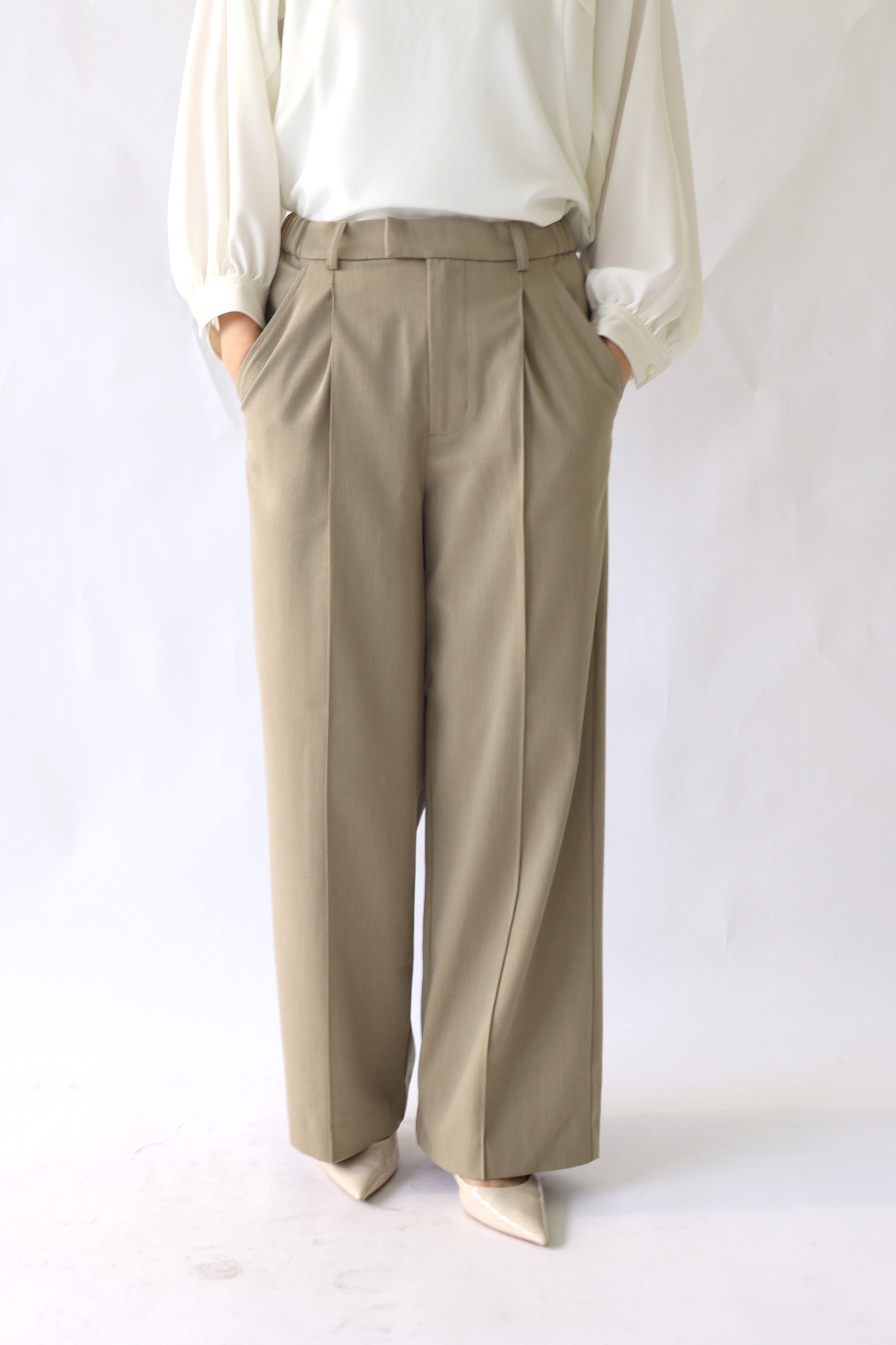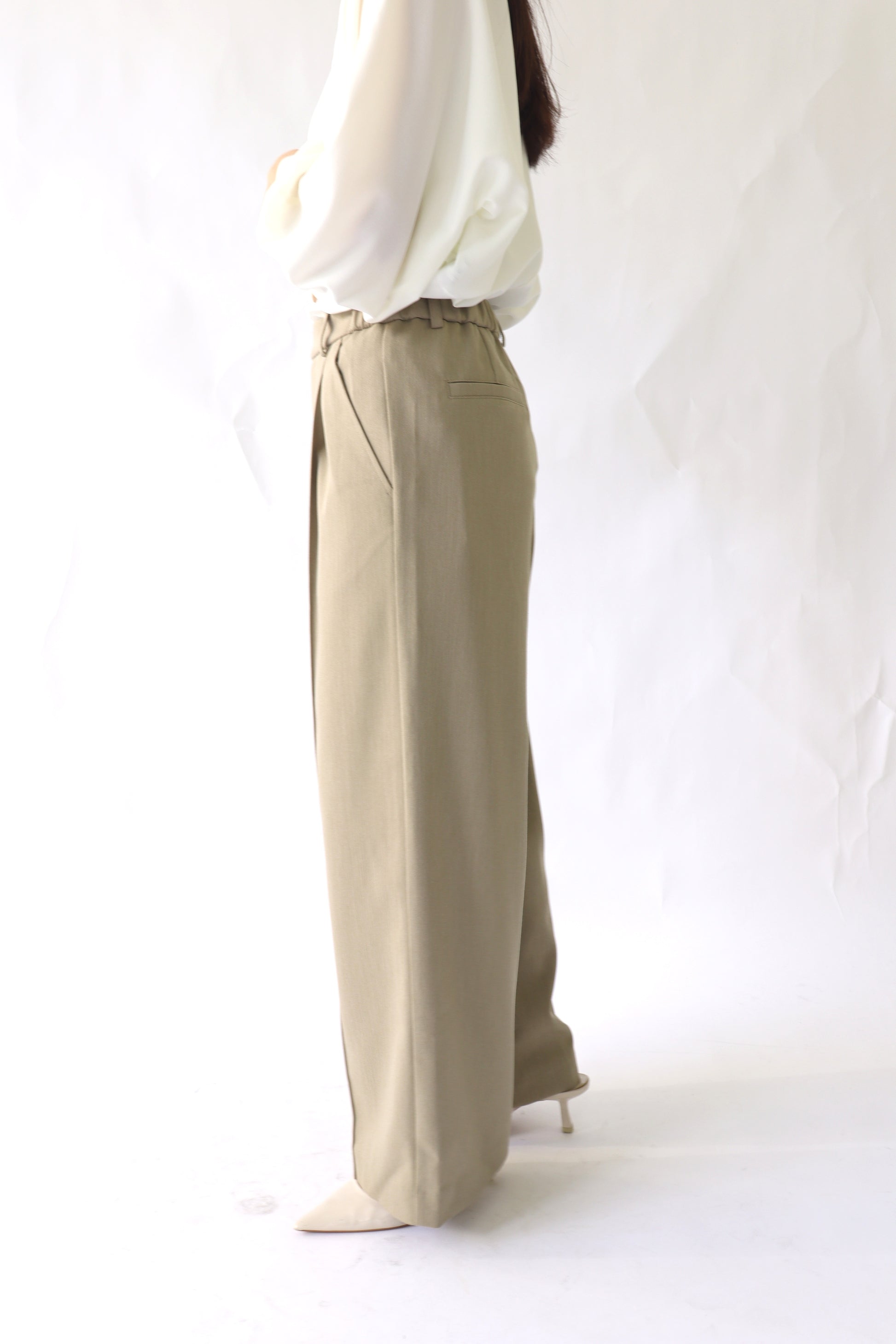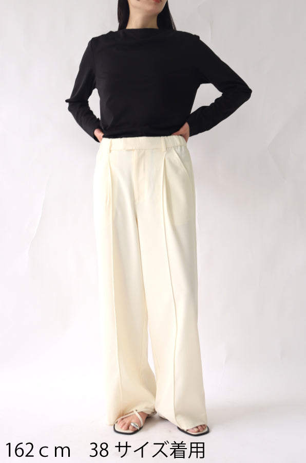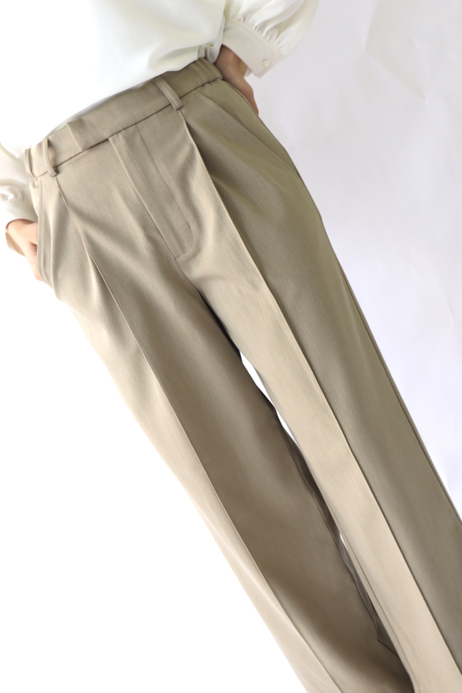 フロントにピンタックをあしらった、縦長のスタイルアップ効果が期待できるストレートパンツ。