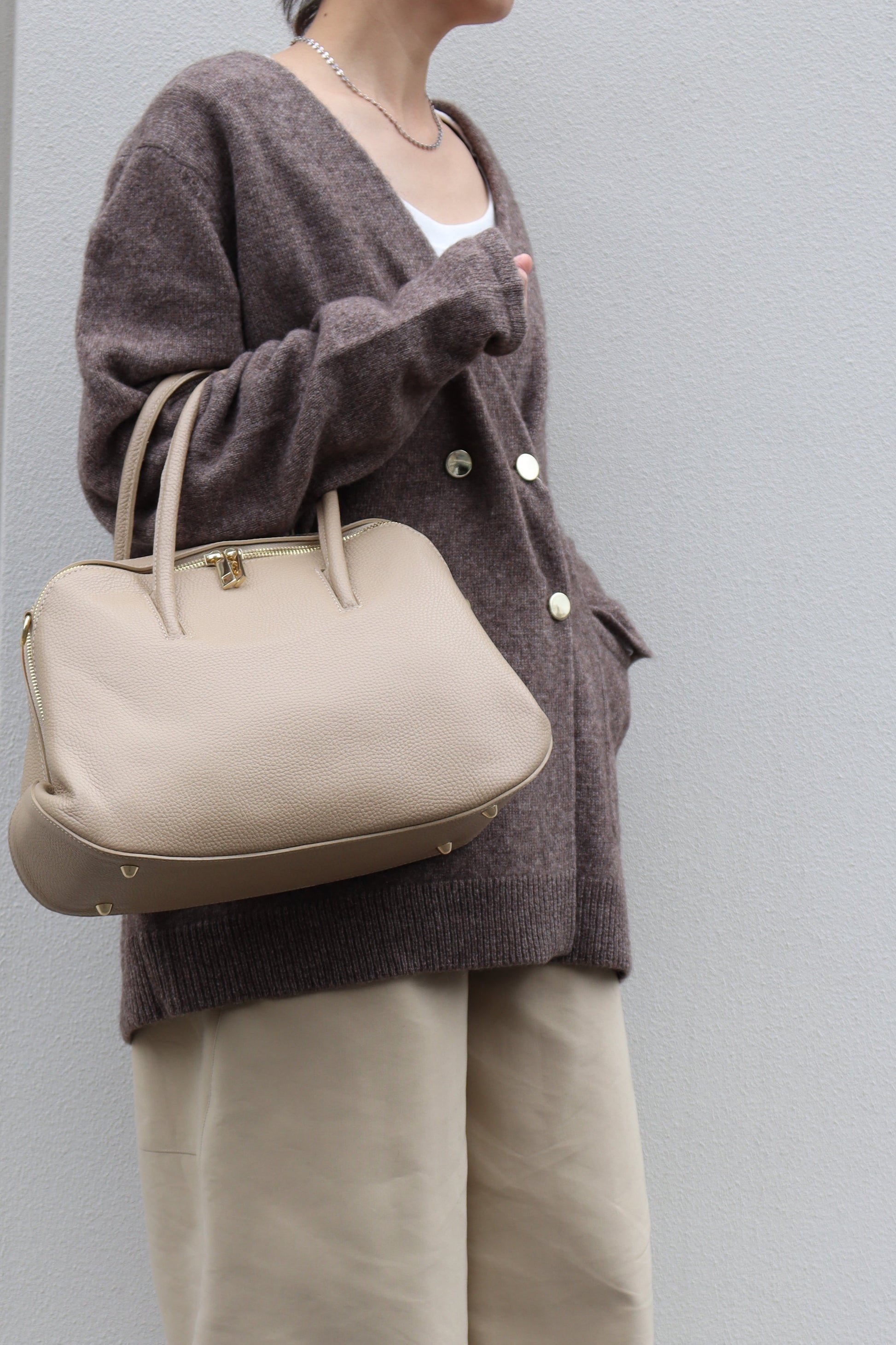 存在感のあるフォルムが際立つ、ボストンバッグ。クラシカルな秋冬のムードにもぴったりなアイテム。