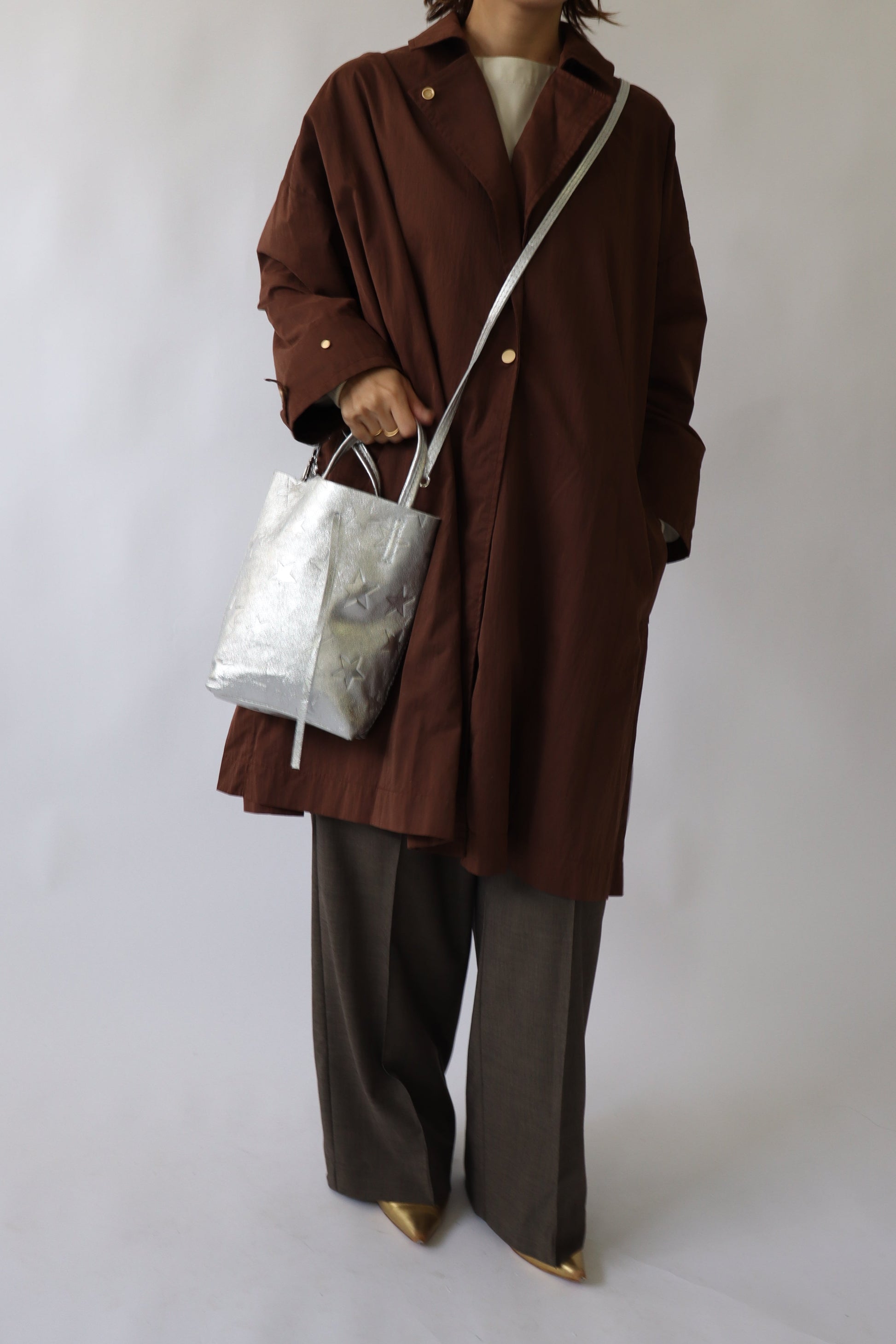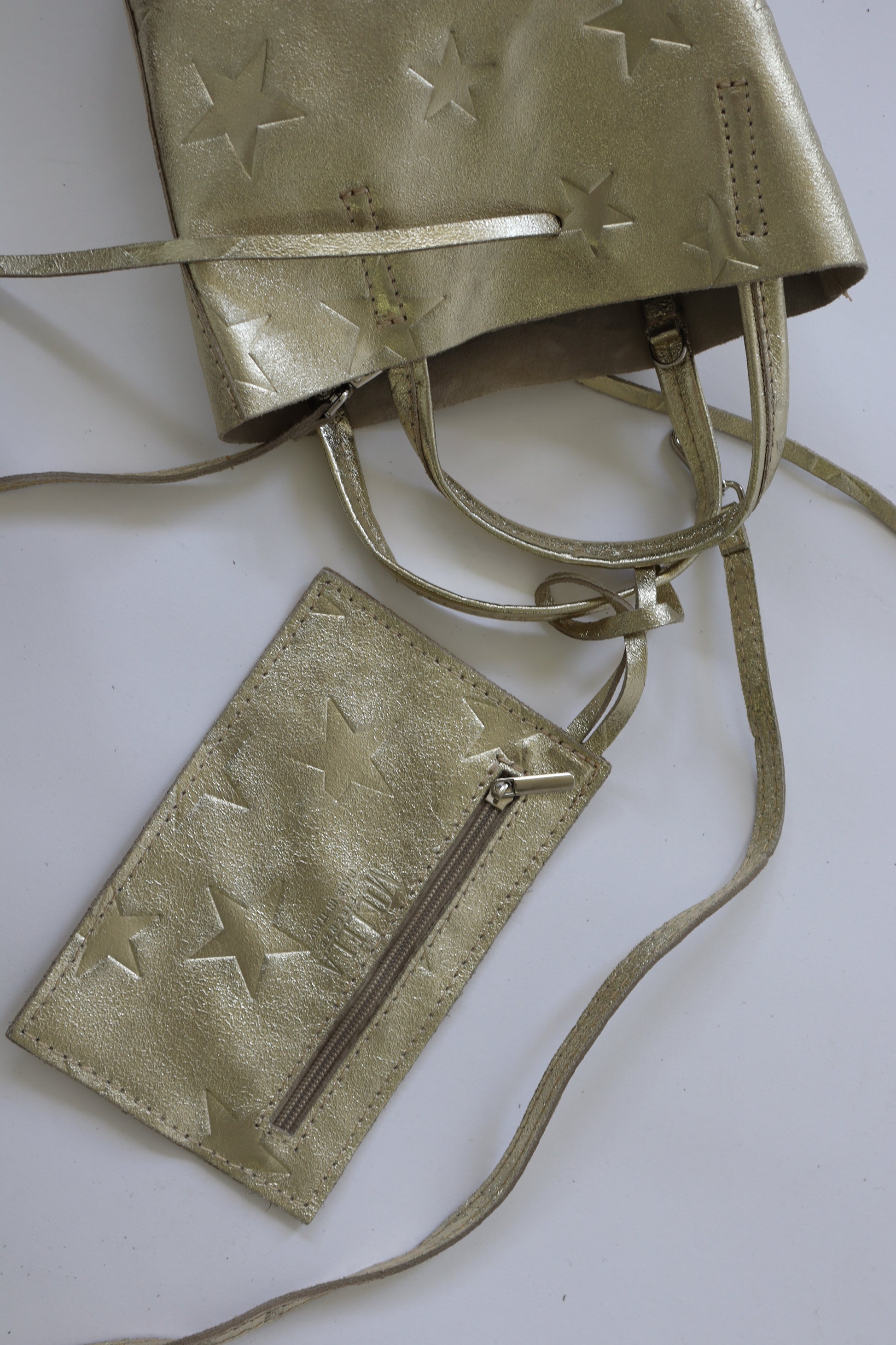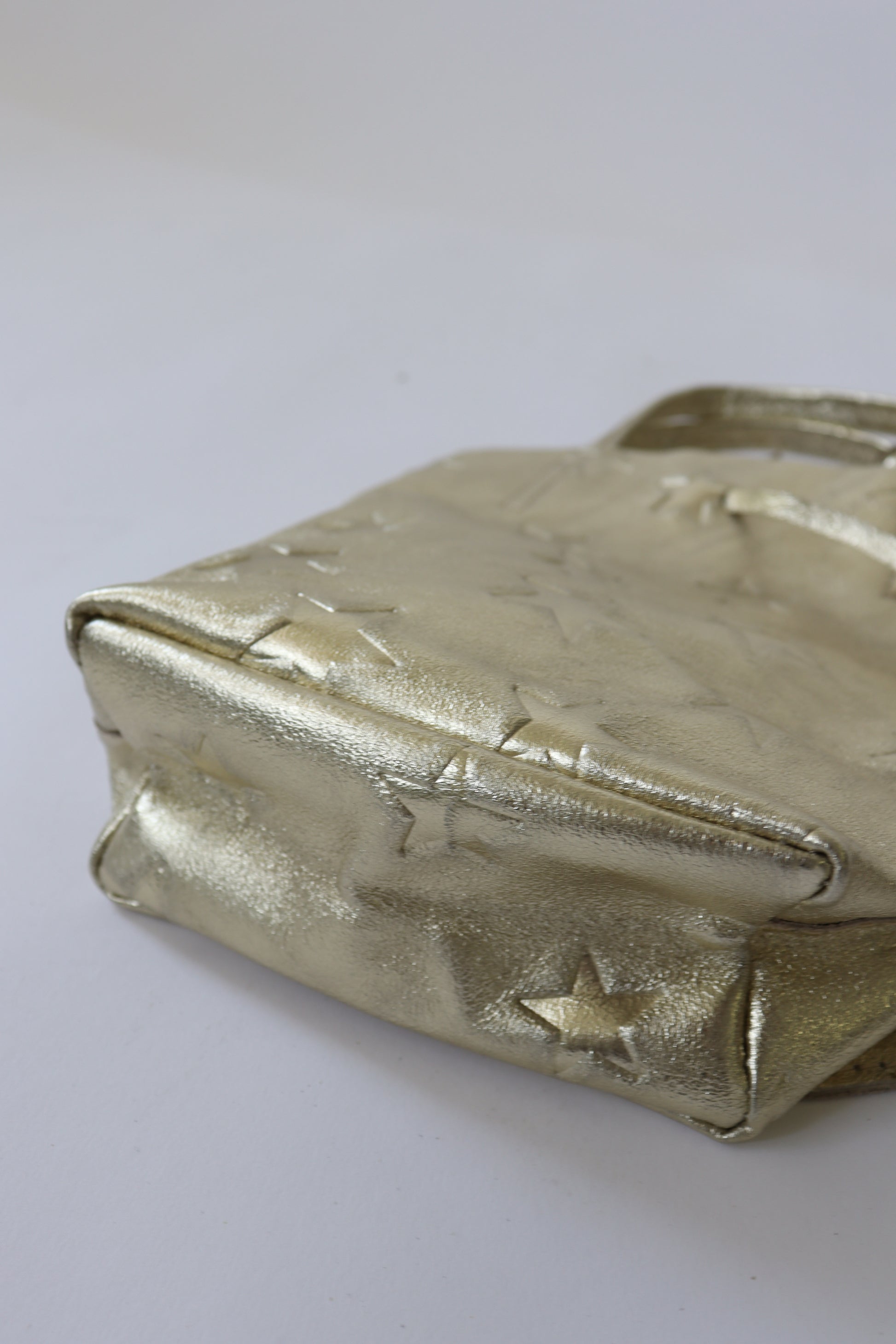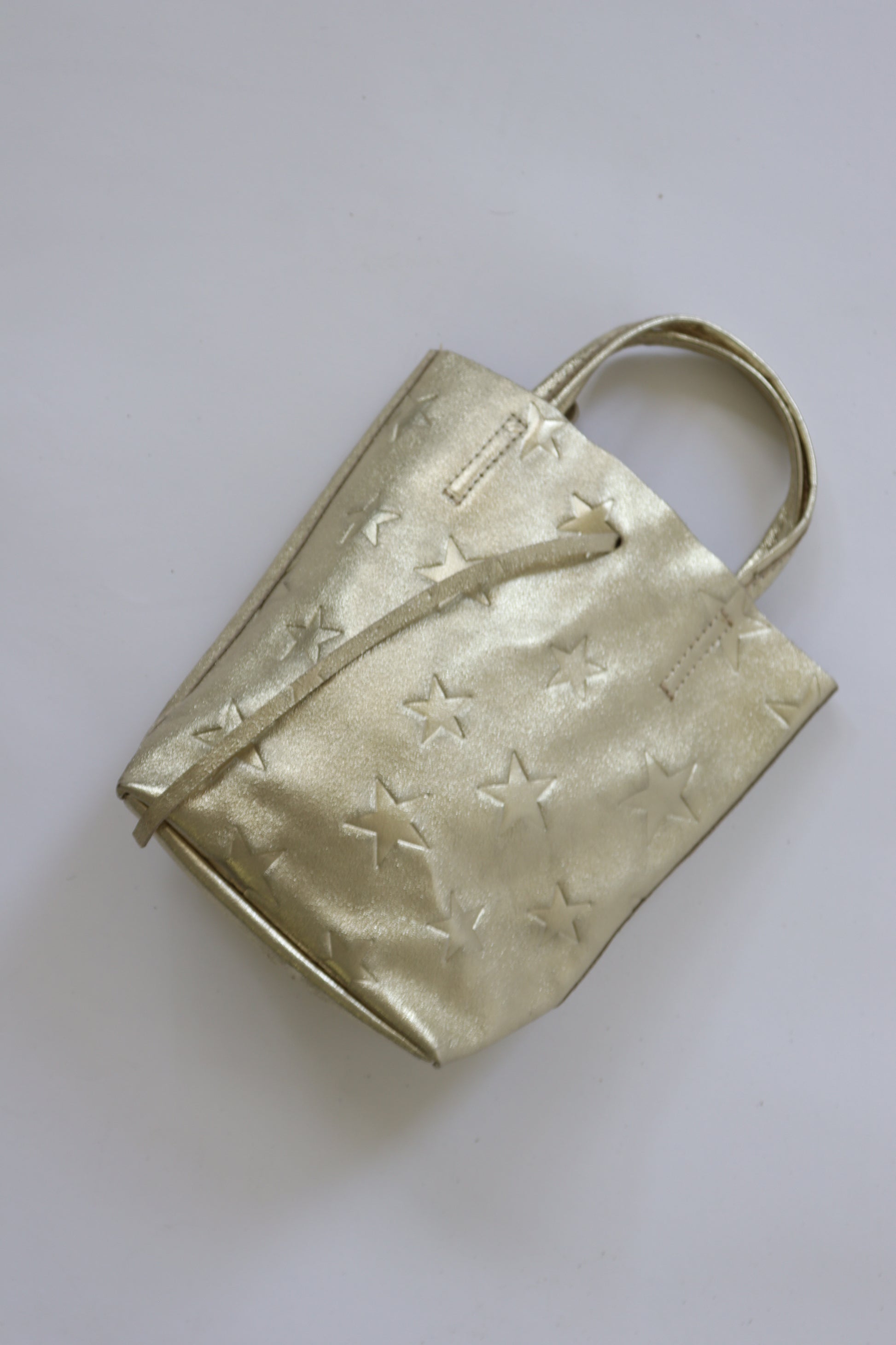 柔らかくリッチなメタリックレザーに、エンボス加工で星柄を表現したミニトートバッグ。