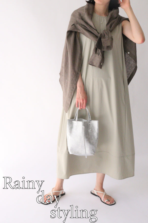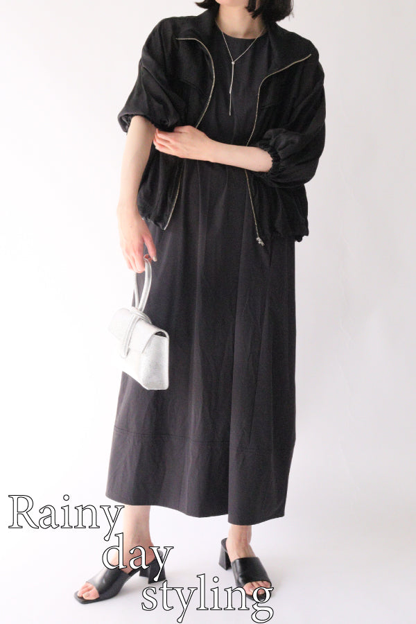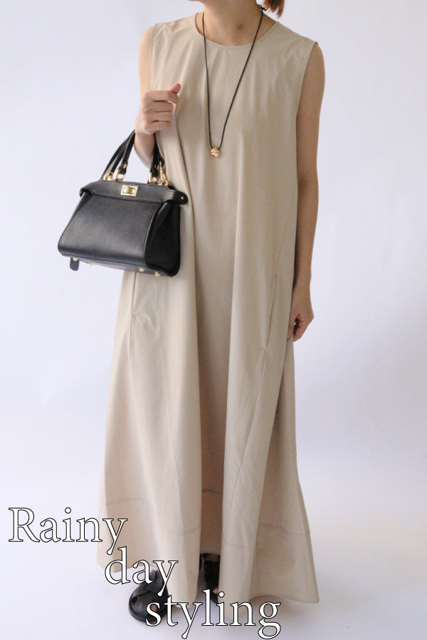 ストレッチ性と撥水に優れた、UVカット素材を使用したワンピース。さらりとした風合としっかりした肉感で秋までOKな素材です。