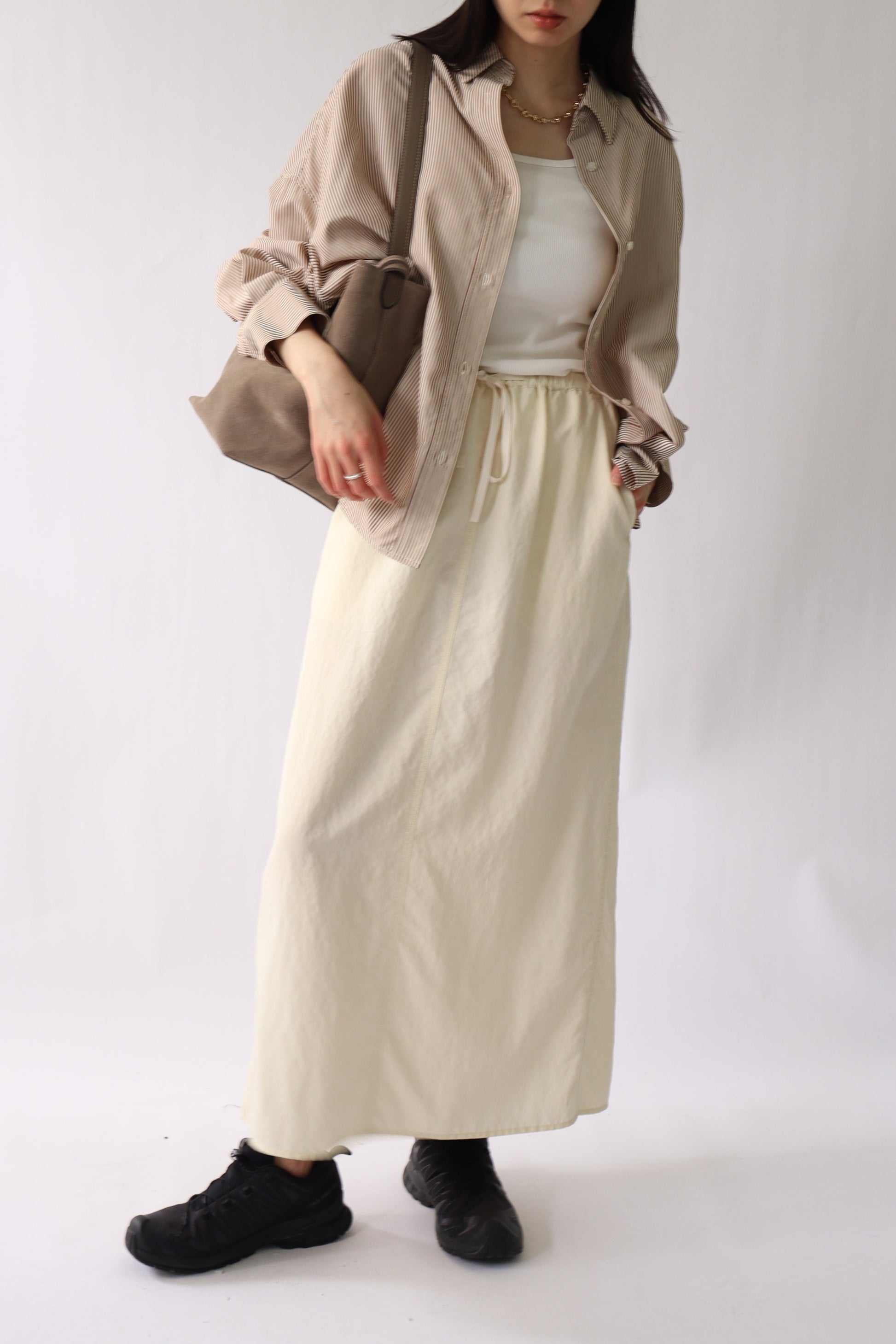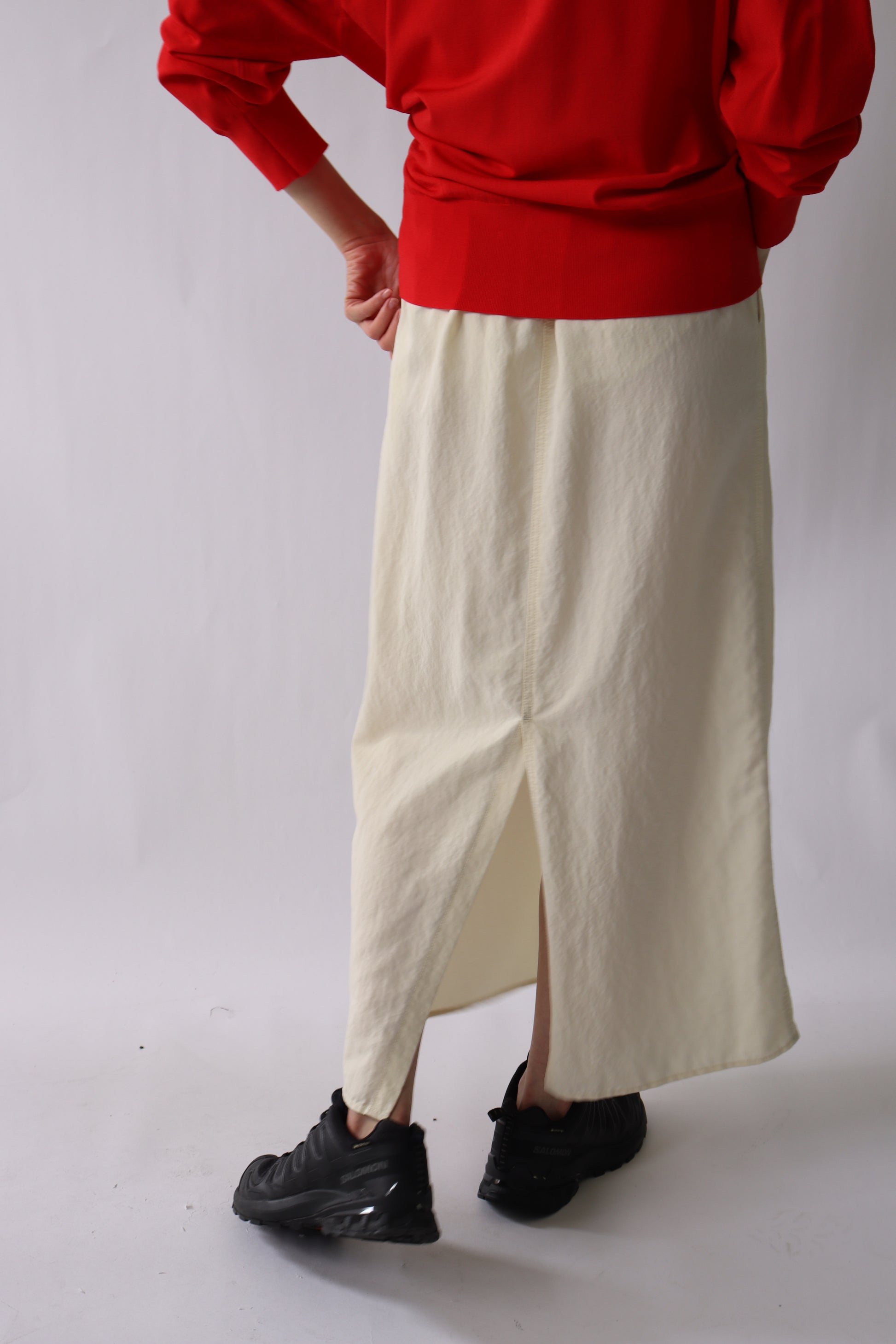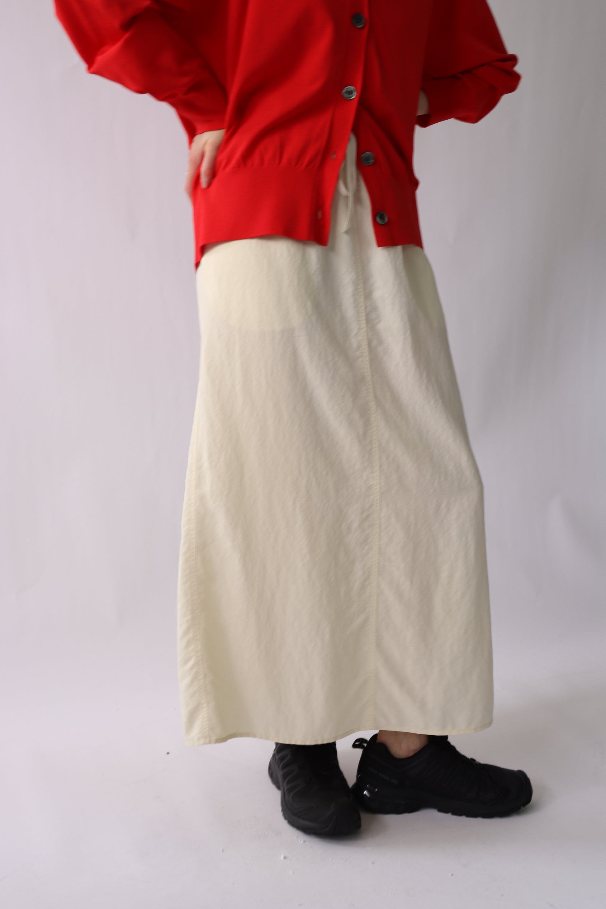 セルロース生地にバイオ加工を施した素材を使用した、ロングスカート。