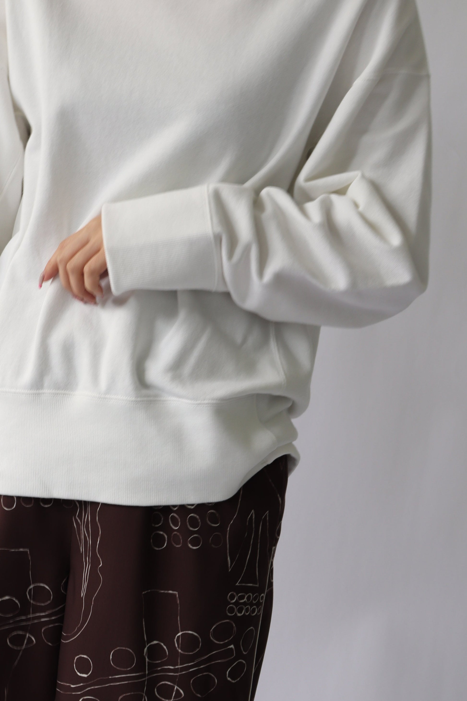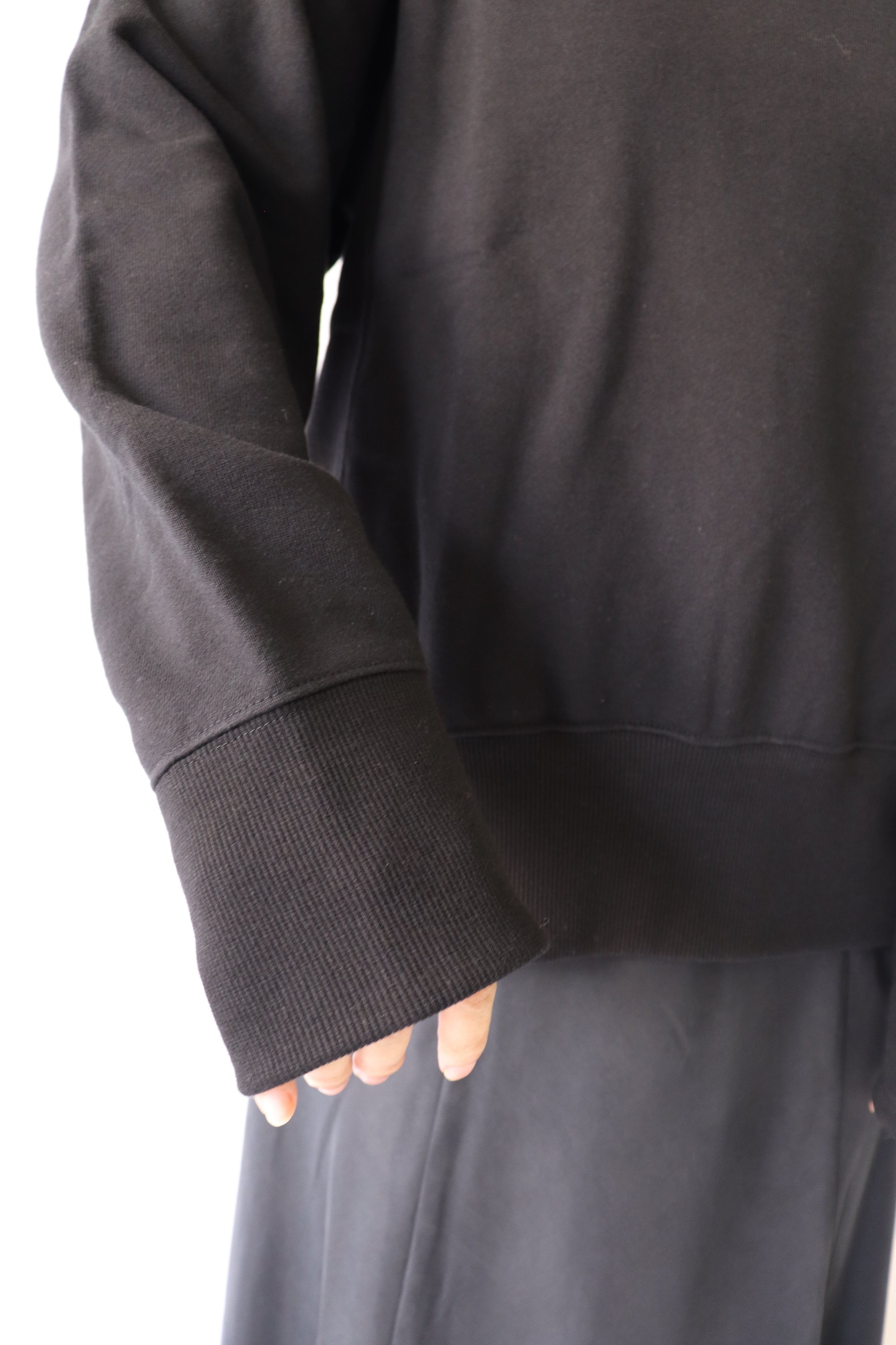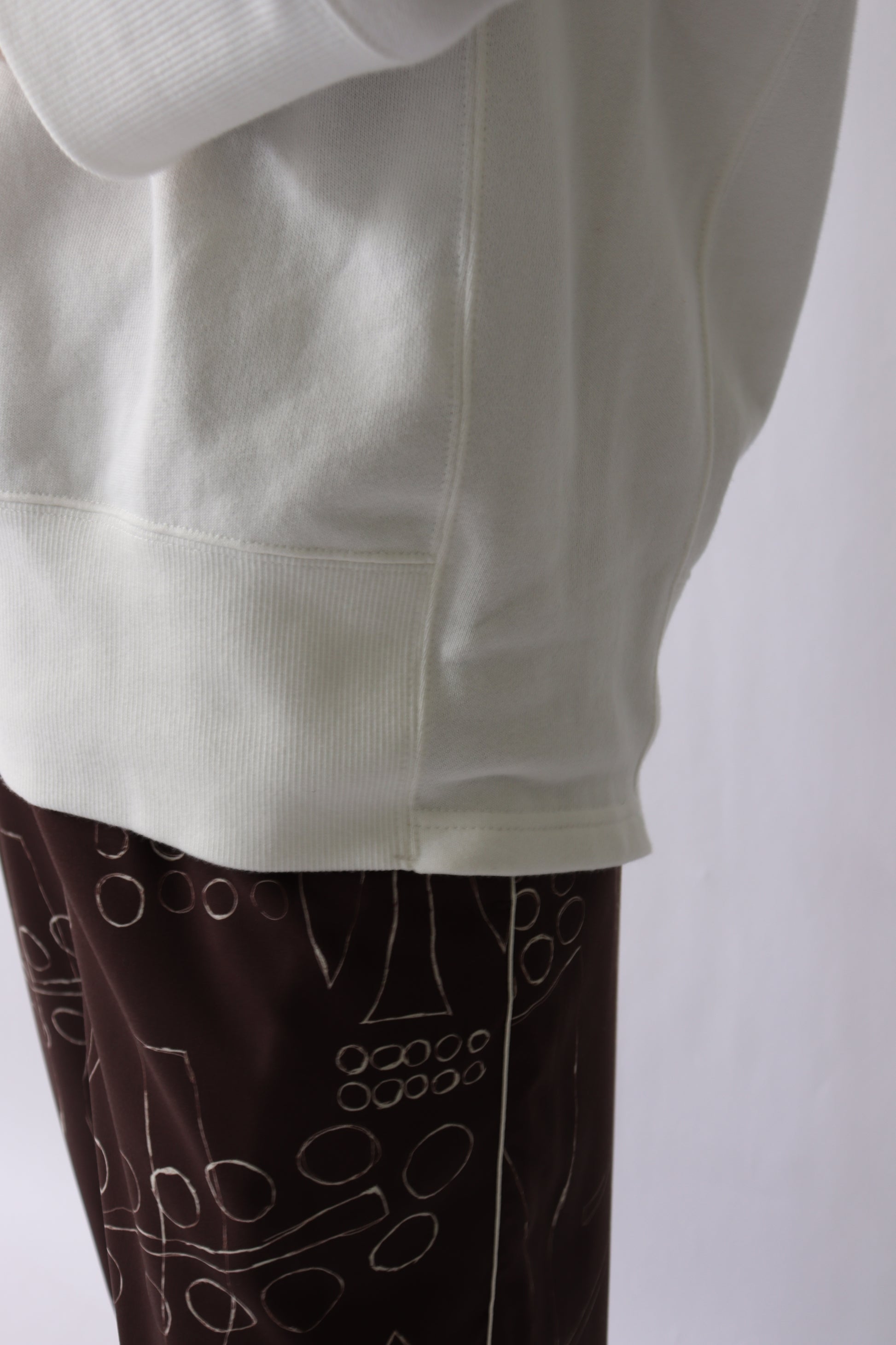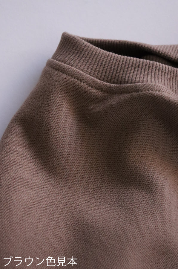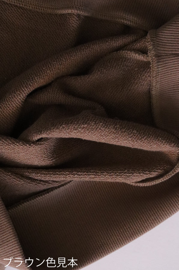 裏毛には、適度な保温性と高い吸水性があり、蒸れにくい効果があります。前裾や袖のリブは太幅で設定し、ポイントに。