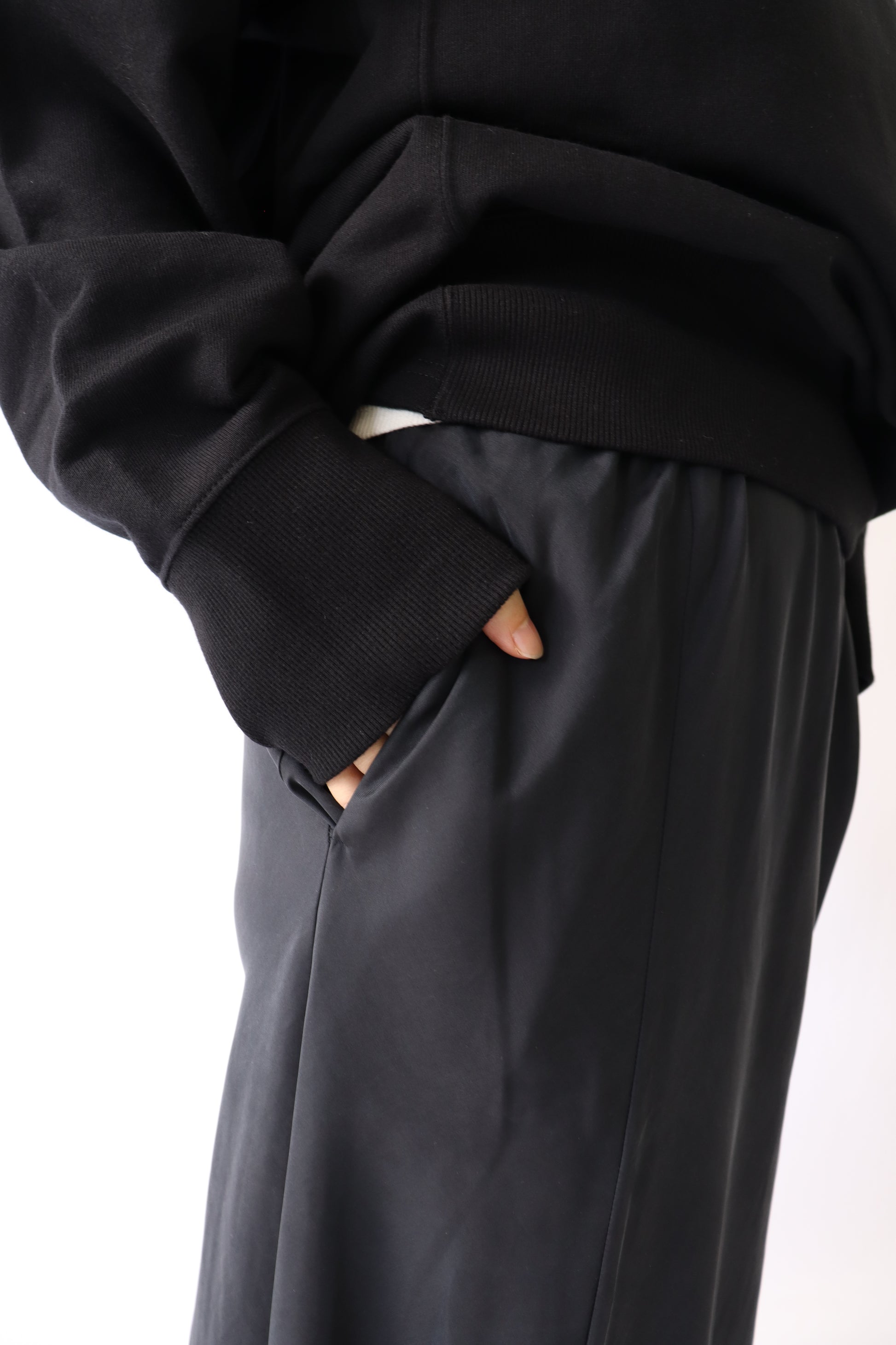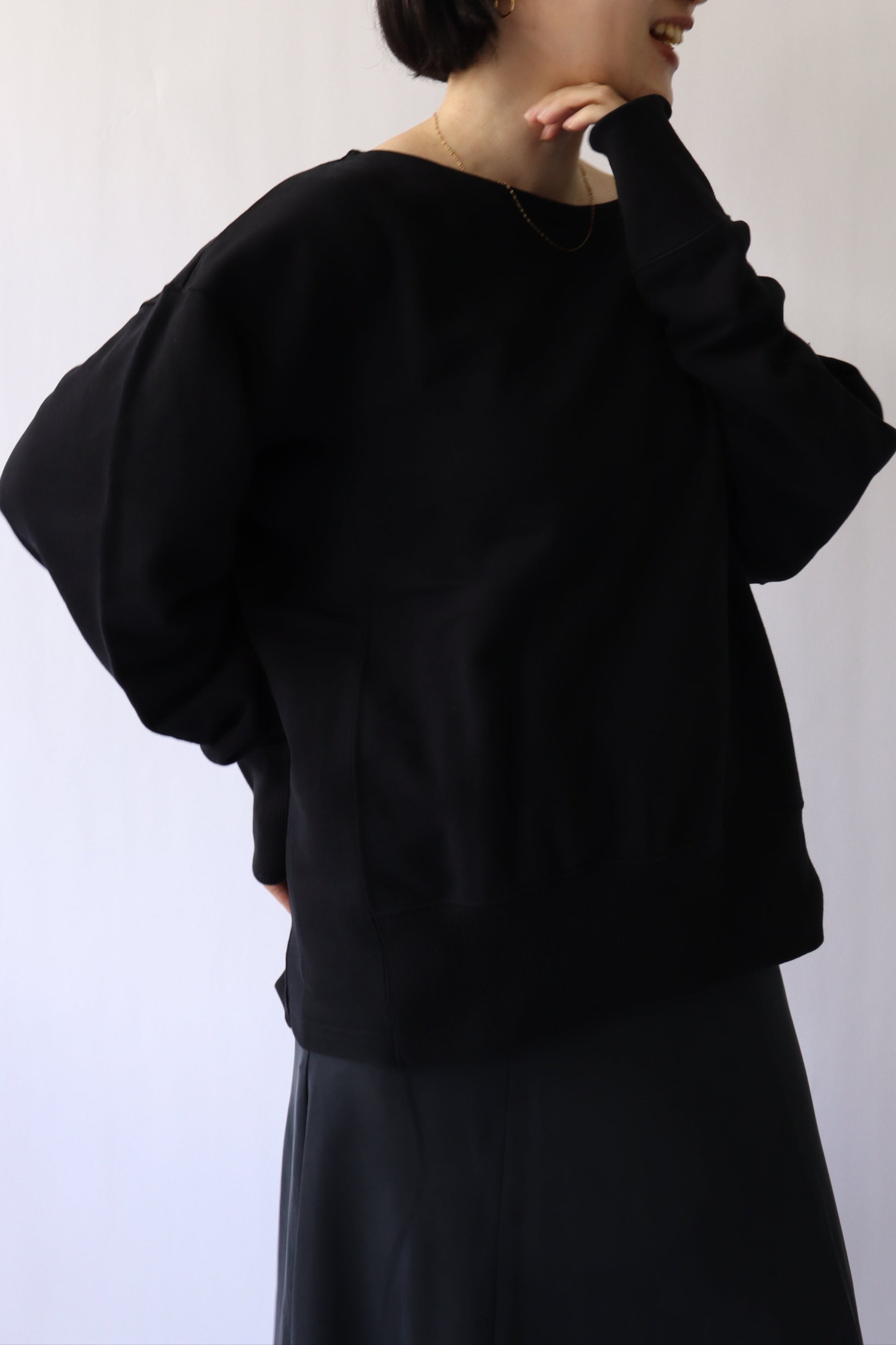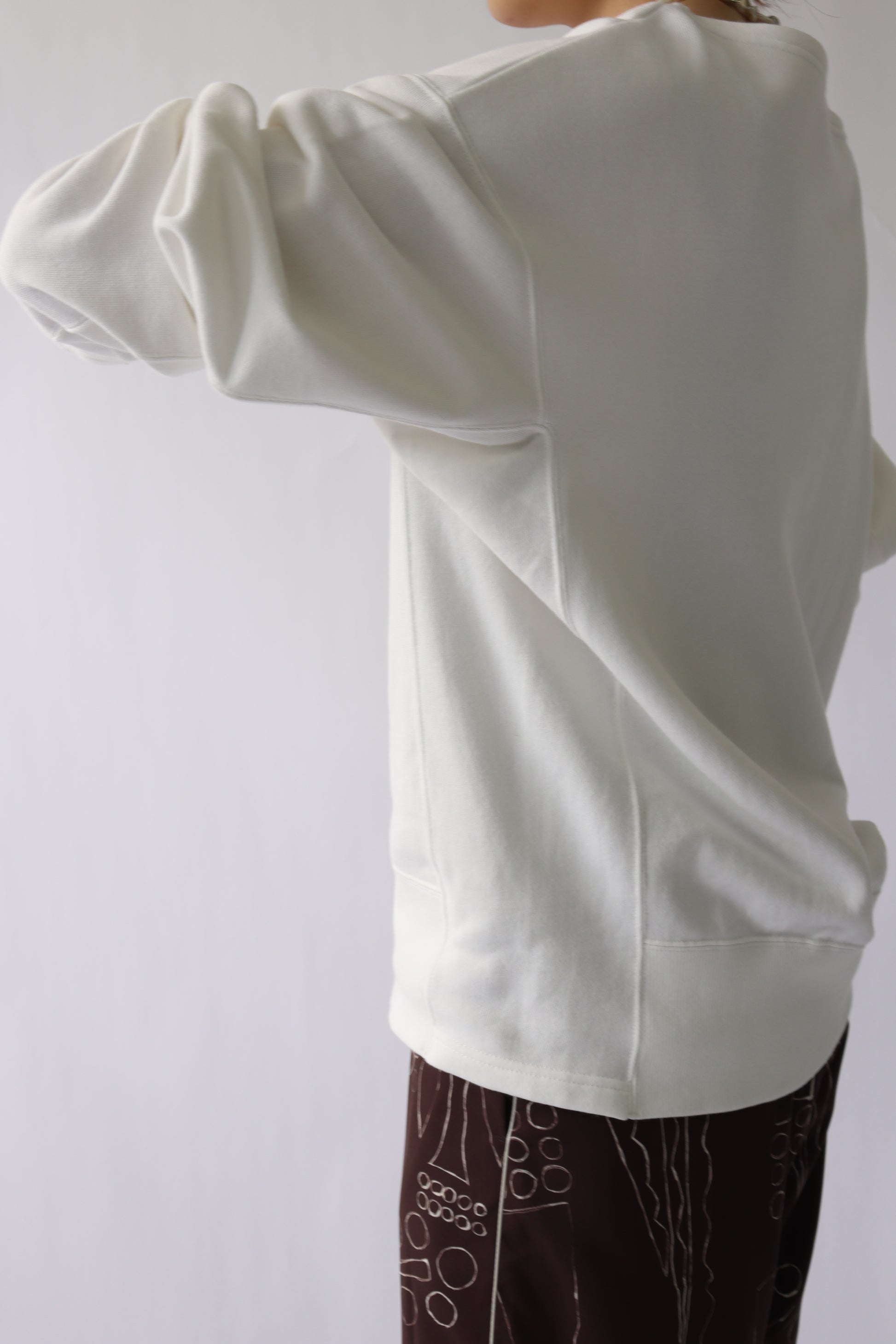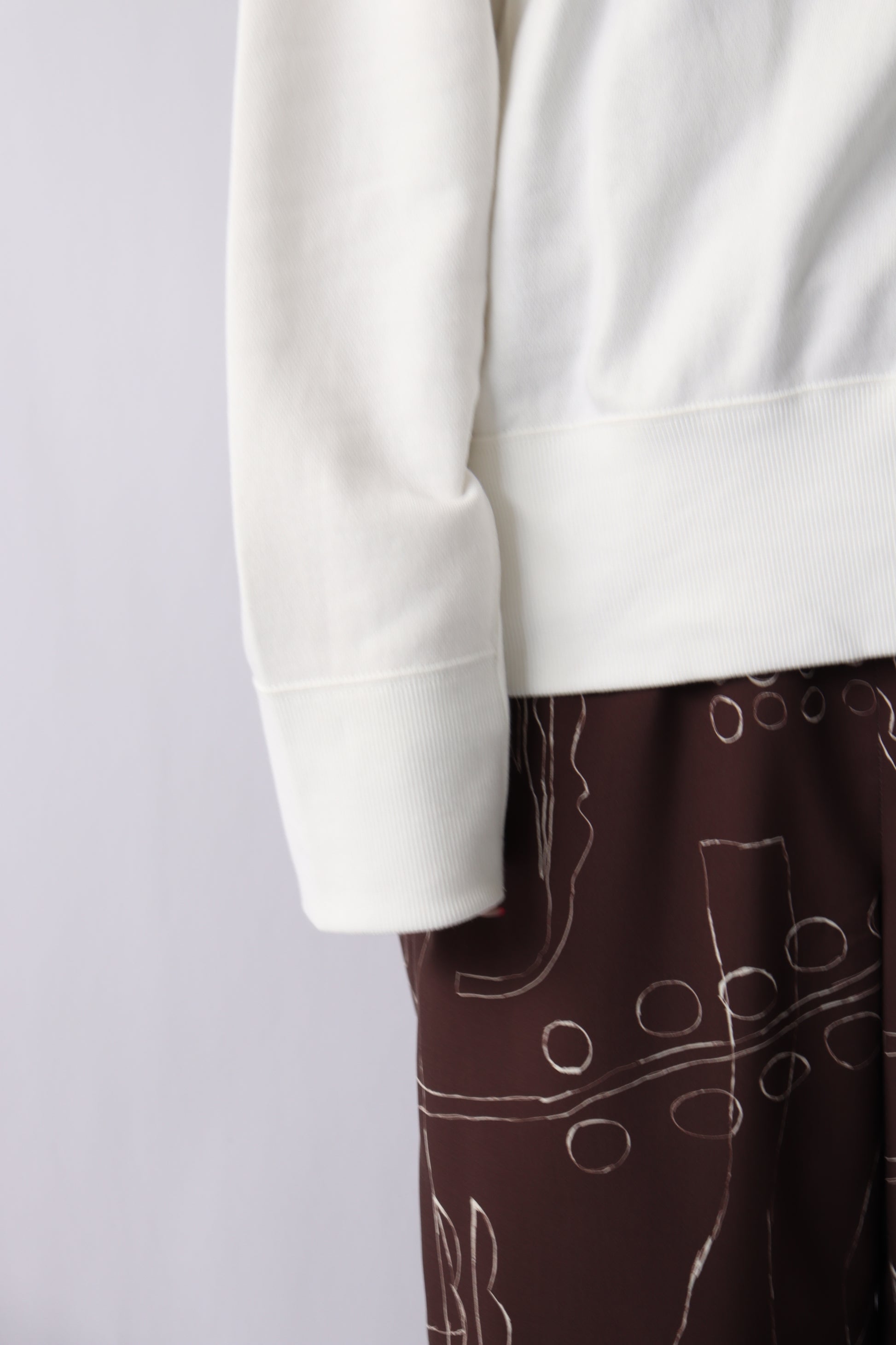 裏毛には、適度な保温性と高い吸水性があり、蒸れにくい効果があります。前裾や袖のリブは太幅で設定し、ポイントに。